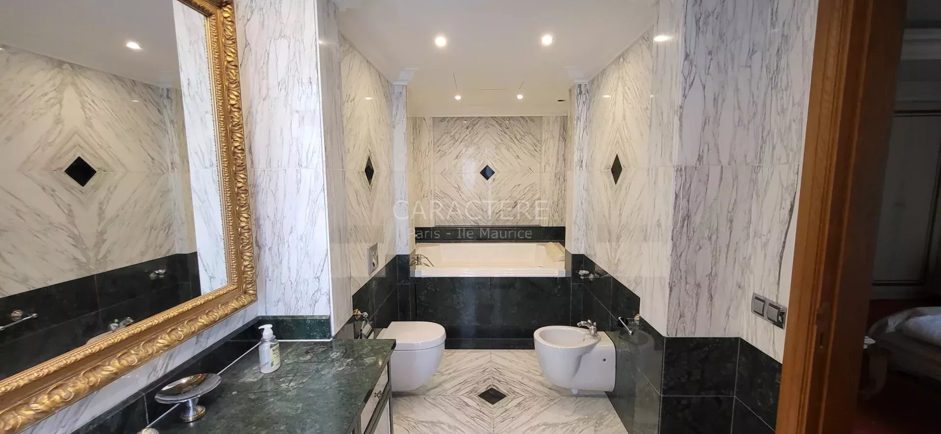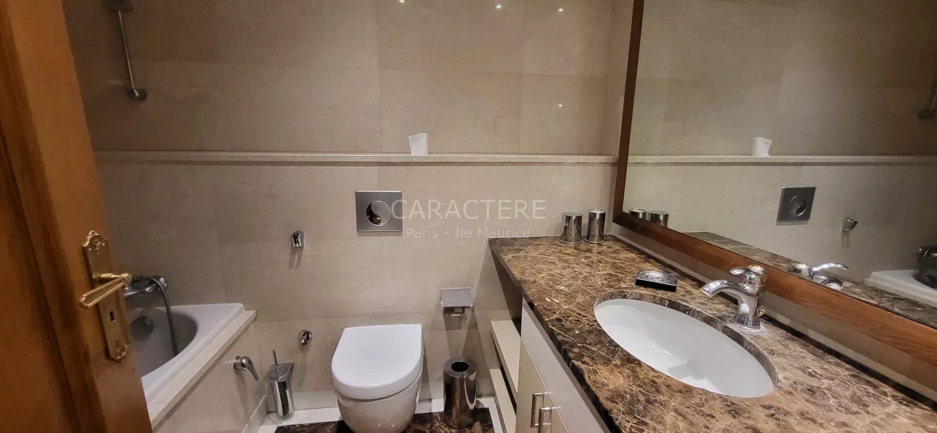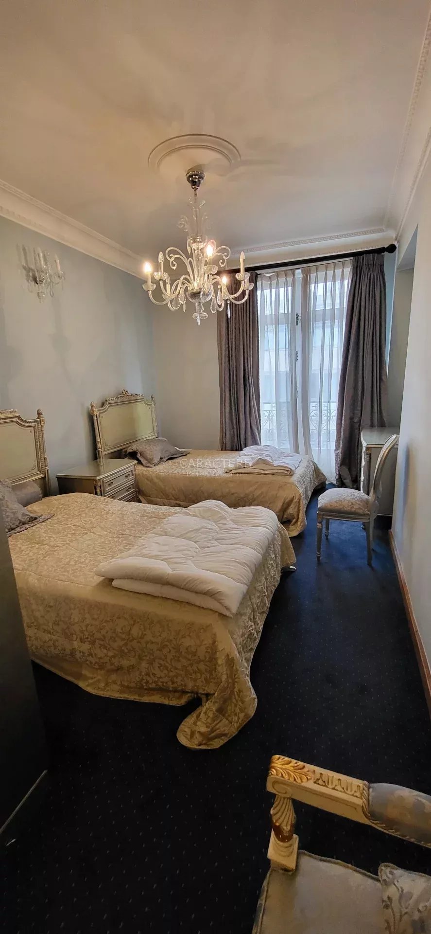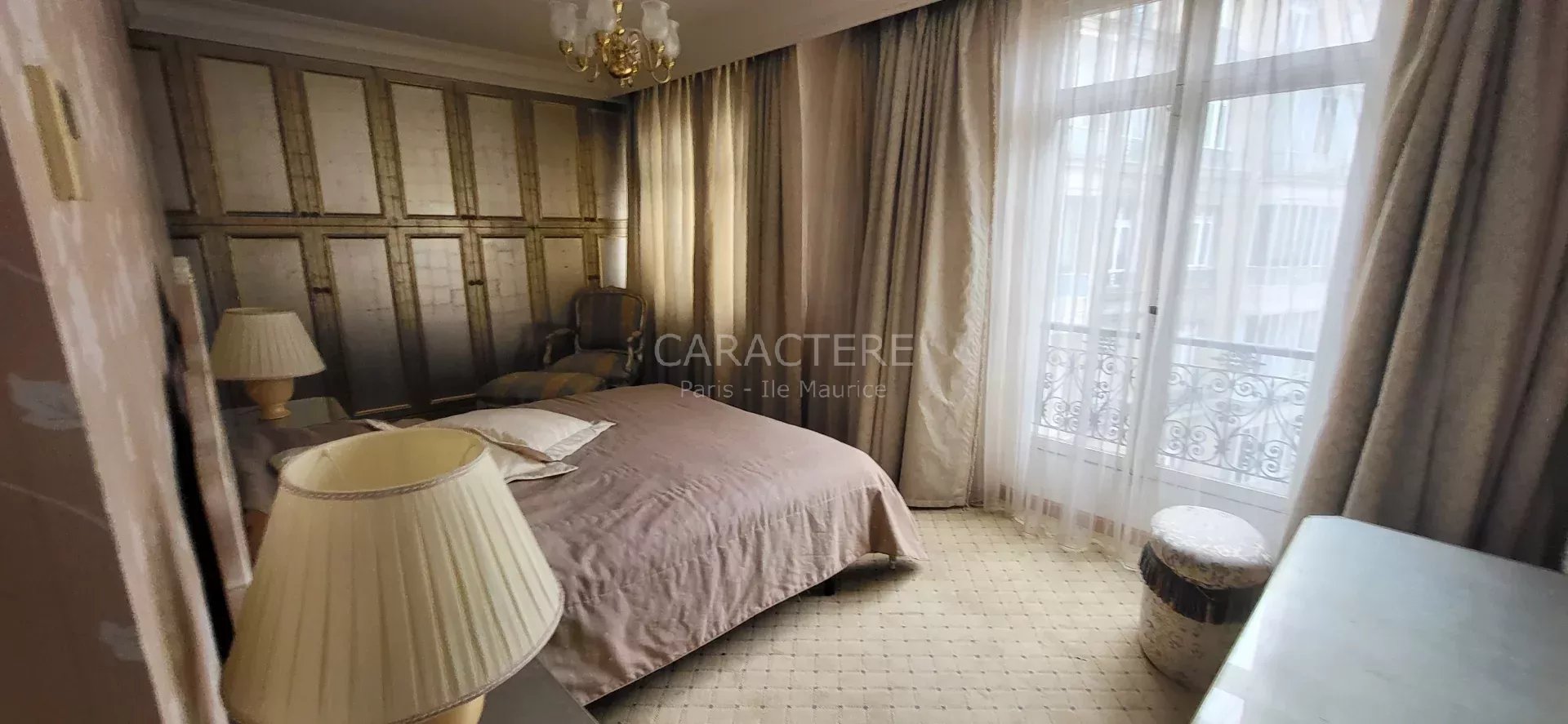 Dans immeuble en pierre de taille avec gardien, bel appartement semi meublé, idéalement situé rue Galilée dans le 8ème arrondissement à proximité des stations George V (ligne 1), Kléber (ligne 6) et Charles de Gaulle - Etoile (ligne 1, 2 et 6, RER A). D'une surface de 346.55 m², au 4ème étage avec ascenseur, il offre une belle entrée, un séjour et une salle à manger spacieux, une cuisine séparée entièrement équipée (réfrigérateur-congélateur, four, micro-ondes, plaques de cuisson), 8 chambres avec salle de bain et w-c, buanderie, w-c invité. Charme de l'ancien : parquet, moulures, cheminées et belle hauteur sous-plafond. Chauffage collectif, eau chaude individuelle et climatisation.