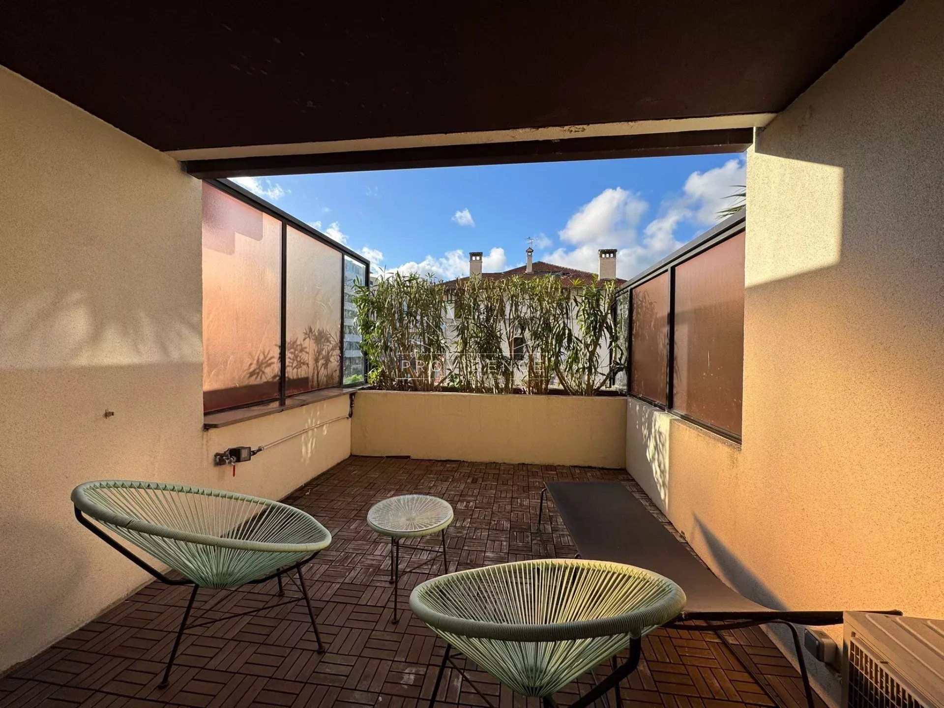 Magnifique studio entièrement refait et meublé exposé Sud Ouest avec terrasse de 13.5 m², au 1et étage.