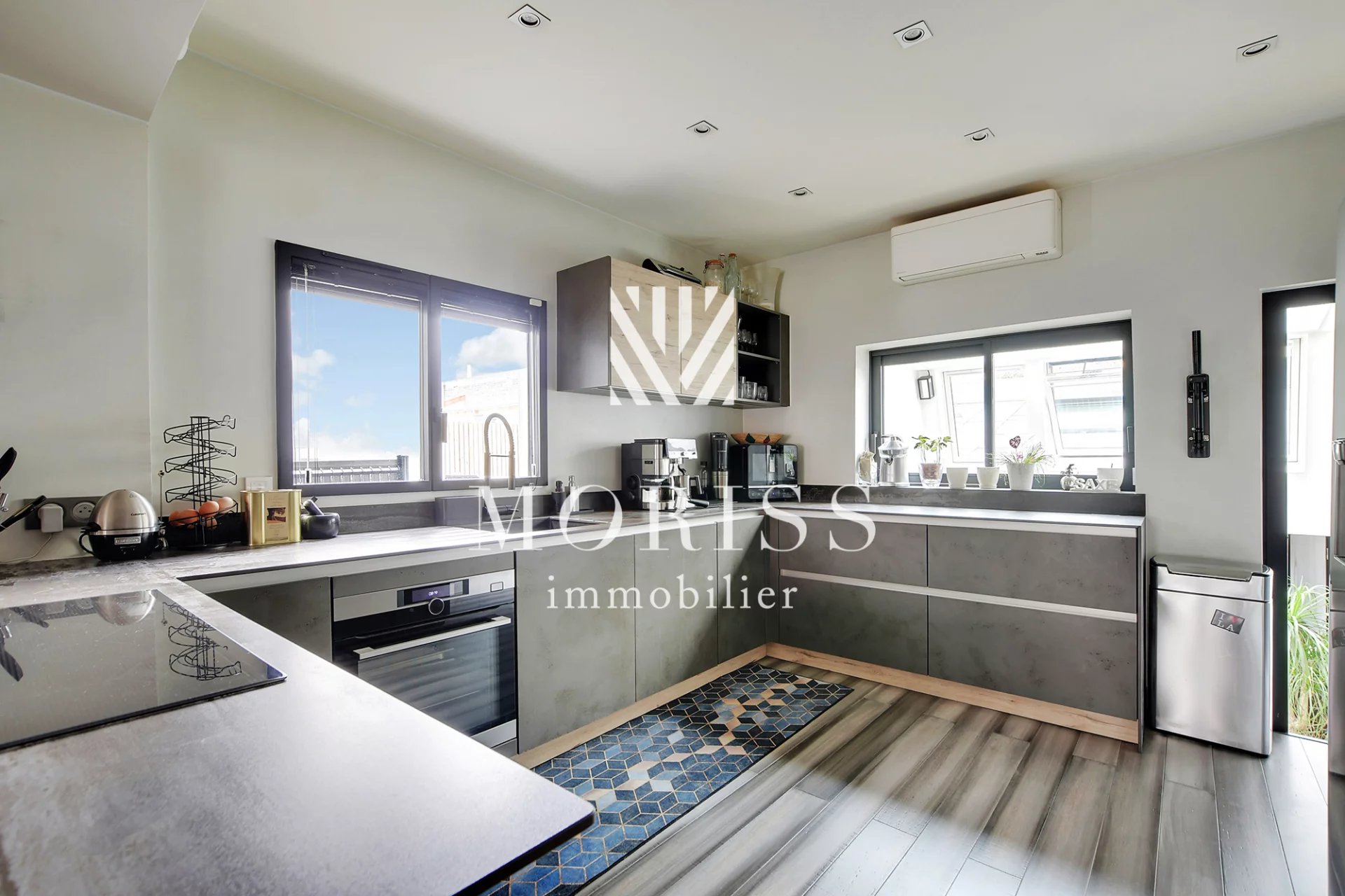 Maison de ville sécurisée (système de surveillance, volets roulants connectés, détecteurs d'empreintes, etc) d’une superficie de 136m², située à cinq minutes à pied du métro ligne 7. Rénovée en 2021, elle bénéficie d’équipements de domotique.