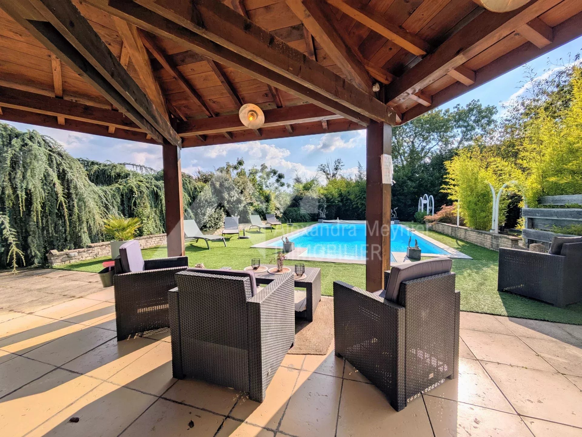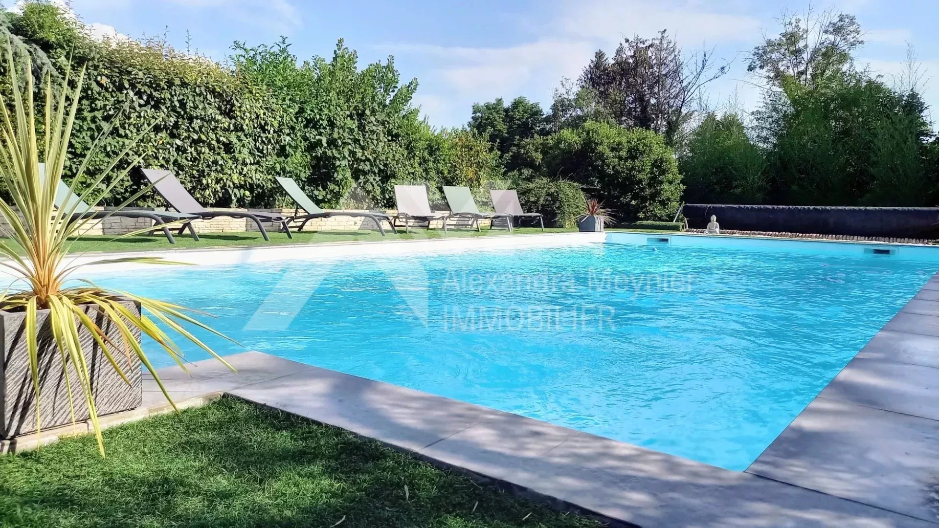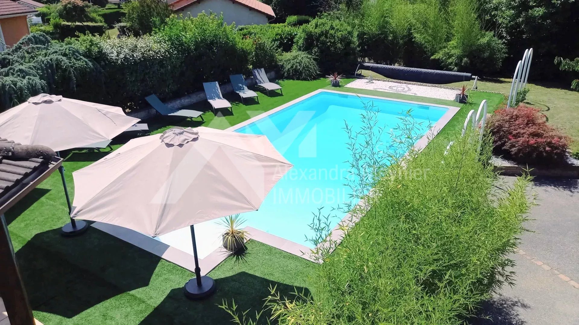 Un terrain clos et arboré de 2086m² avec deux entrées indépendantes. Un espace détente composé d'une terrasse abritée, une piscine 5x10, un terrain de pétanque.