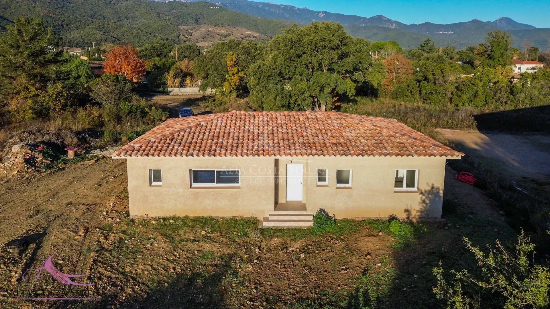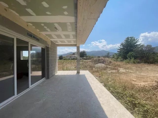 A l'extérieur vous pourrez profiter d'une terrasse couverte d'environ 15 m² avec vue sur la montagne ainsi que d'un terrain de 1018 m².
