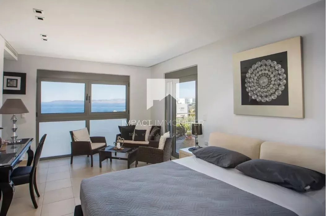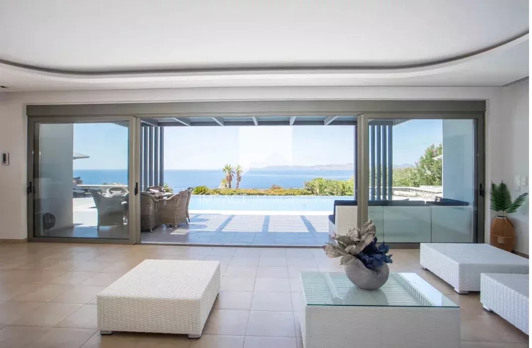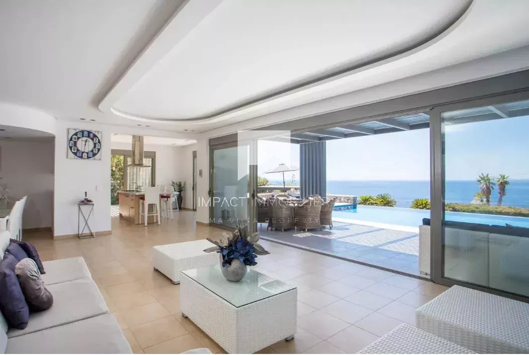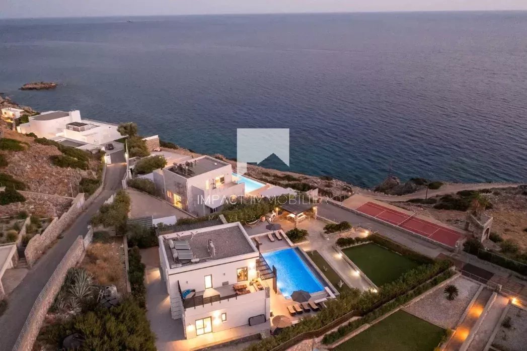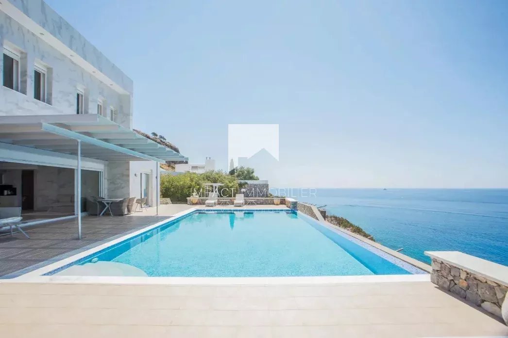 Développant 340 m², cette résidence construite en 2011 bénéficie d’une vue imprenable et dégagée sur la mer Égée. Chaque détail a été soigneusement pensé pour offrir un cadre de vie haut de gamme.