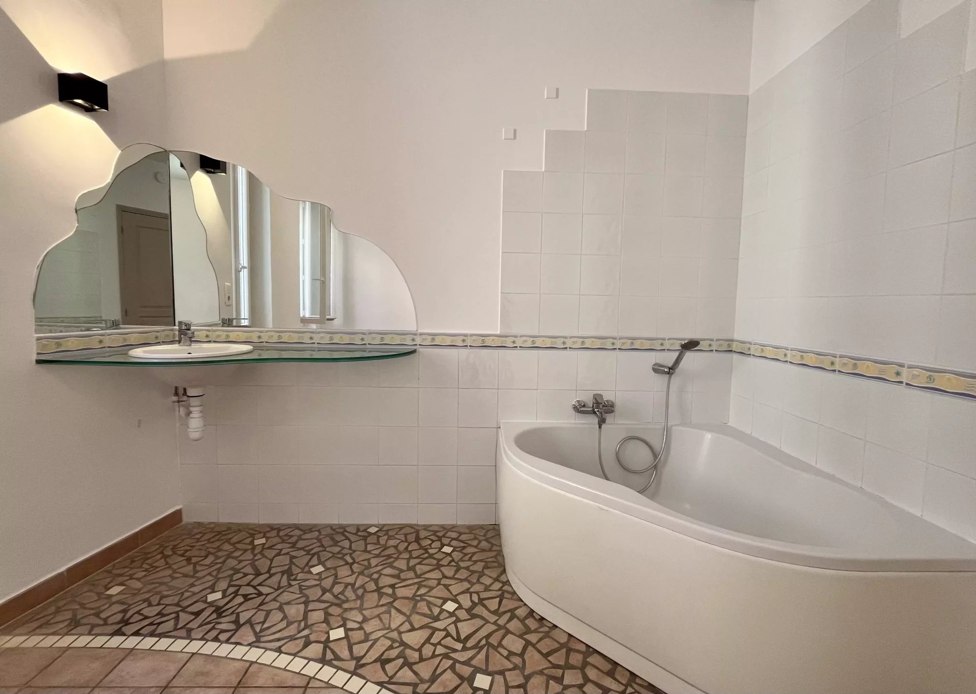 Si vous aimez l'atypique, vous découvrirez une spacieuse chambre, avec un vrai espace baignoire/vasque.