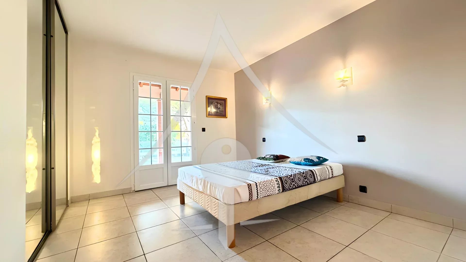 Les fenêtres en PVC à double vitrage et les volets roulants électriques garantissent isolation thermique et acoustiques.