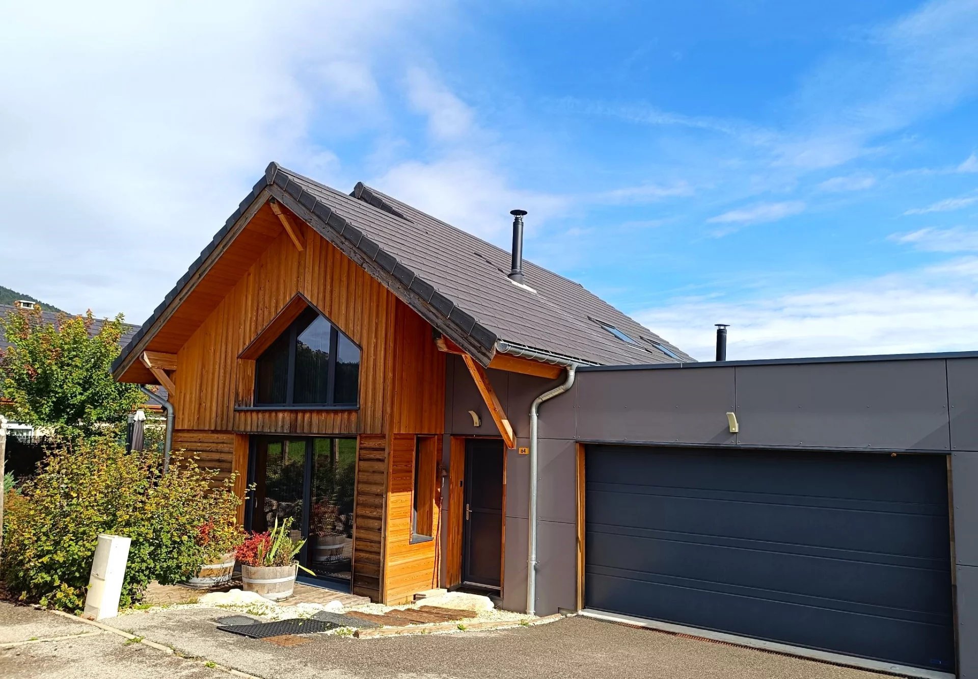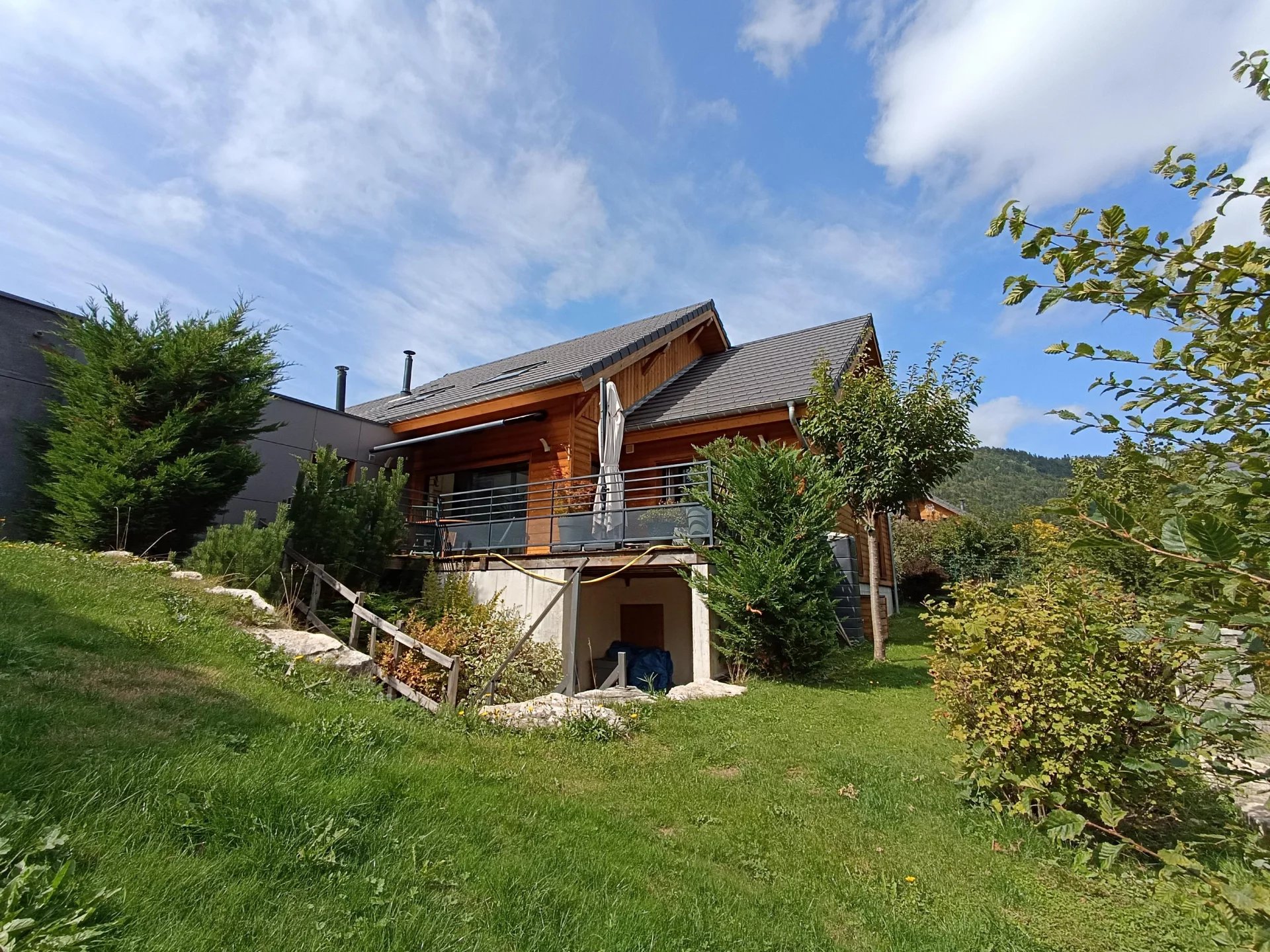 Implantée sur un terrain paysagé de 528 m2 ,cette dernière bénéficie d'une très belle vue dégagée sur les montagnes ,d'excellentes performances thermiques et de prestations soignées.