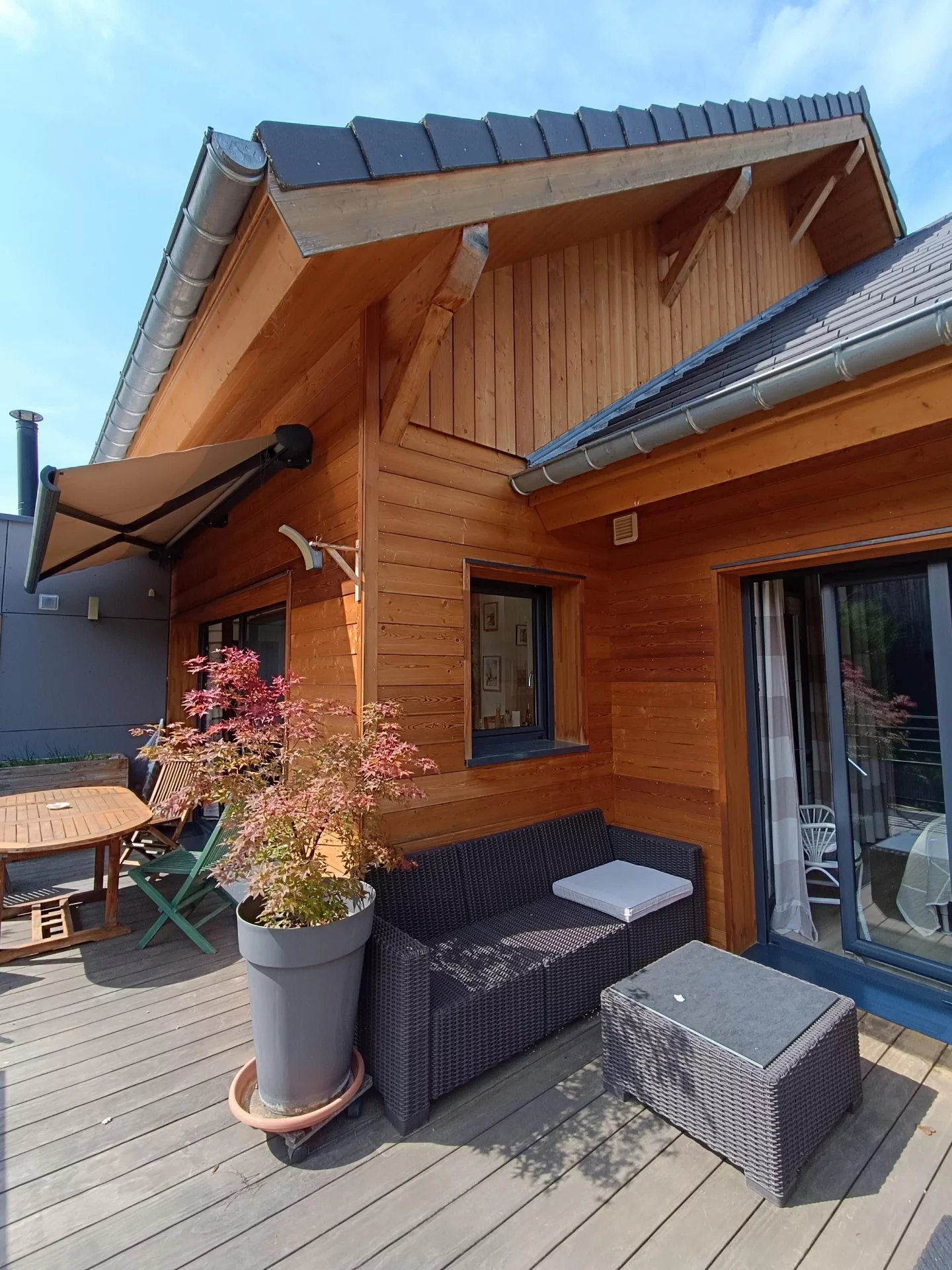 Construite en 2018 (Normes RT 2012 ) ,cette belle maison bardée de mélèze, dispose de 4 chambres avec dressing , dont une suite parentale avec accès terrasse .