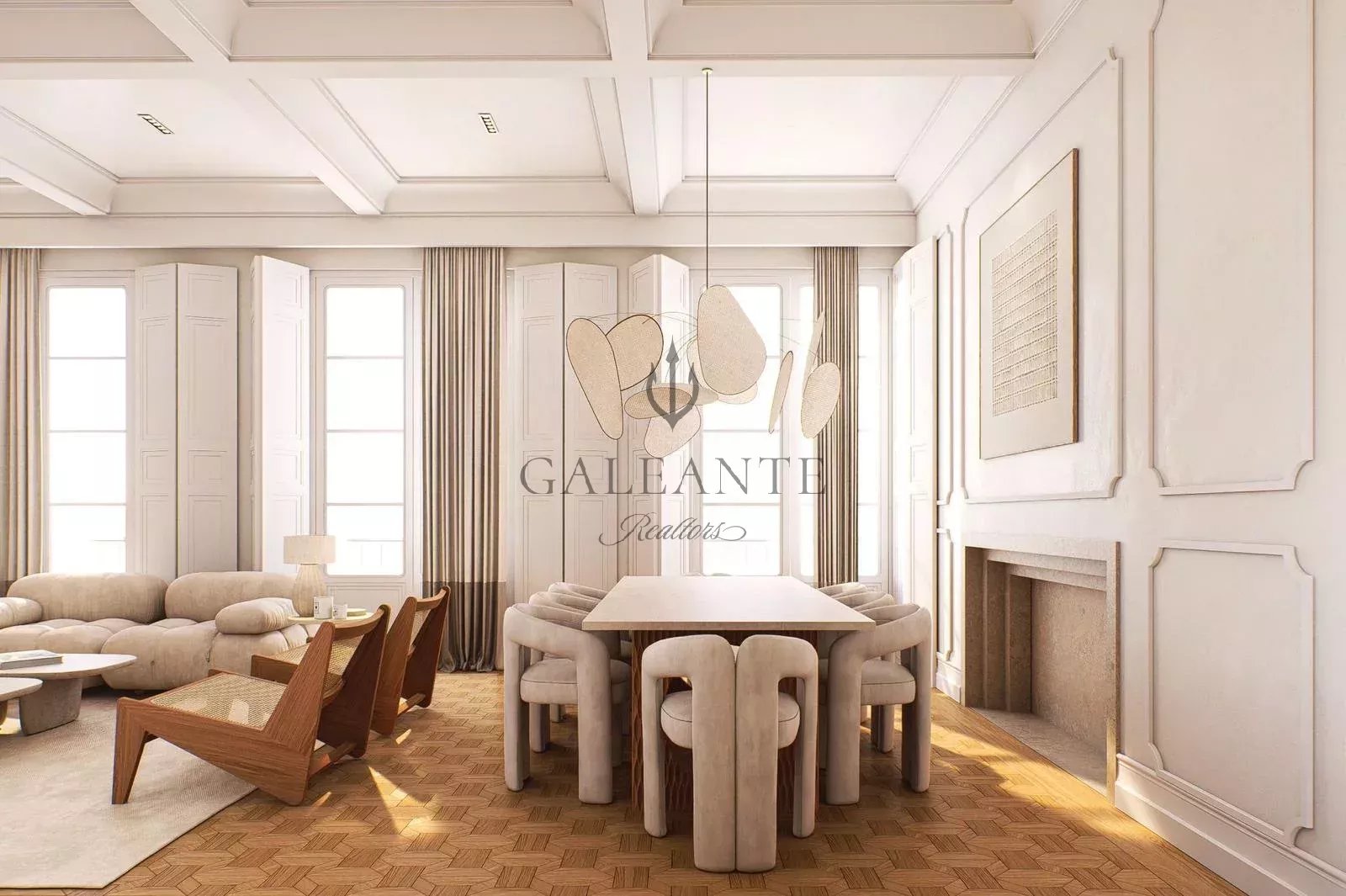 In the heart of Justicia, Madrid’s most en-vogue barrio, rises a reimagined classic: a 175 m² residence on Pelayo, steps from Fernando VI, redesigned with exquisite precision by acclaimed architect Juan Bengoa. Housed in a classical building with soaring 4-metre ceilings and three elegant balconies overlooking the street, the property embodies a rare blend of heritage architecture and contemporary sophistication. Inside, Bengoa’s vision unfolds with quiet grandeur: coffered ceilings, enveloping natural light, bespoke carpentry, and a serene palette that elevates every room. The expansive living and dining space—featured prominently in the visual renderings—captures a modern softness while honouring the apartment’s original bones. The kitchen, refined and architectural, pairs classical moulding with clean-lined minimalism, creating a luminous culinary atelier. Bedrooms follow the same sculptural calm: layered textures, custom wardrobes, and warm natural materials craft a sanctuary-like intimacy. In a neighbourhood defined by gallery culture, slow luxury, and impeccable taste, this residence becomes its own curated statement—a testament to Justicia’s effortless glamour and Bengoa’s mastery of quiet, enduring elegance. A home not merely renovated, but styled into existence. For more curated luxury properties, visit www.galeante.com For unpublished off-market listings, bespoke advisory, or to arrange private viewings, contact us directly at: +34 699 251 294 / +33 6 16 64 60 13.