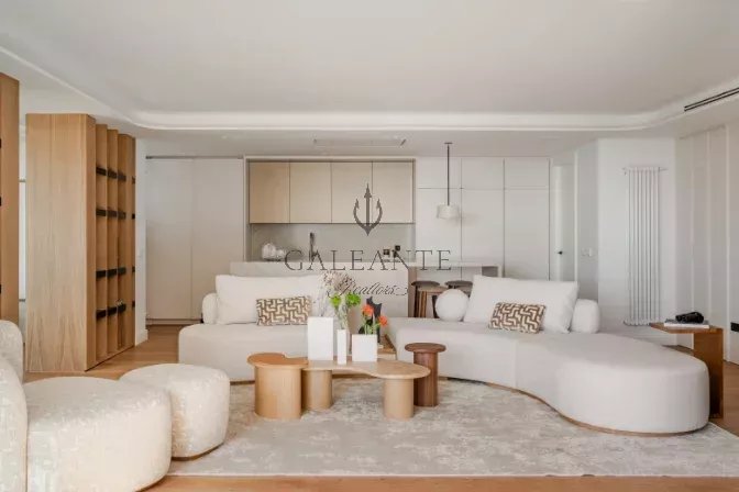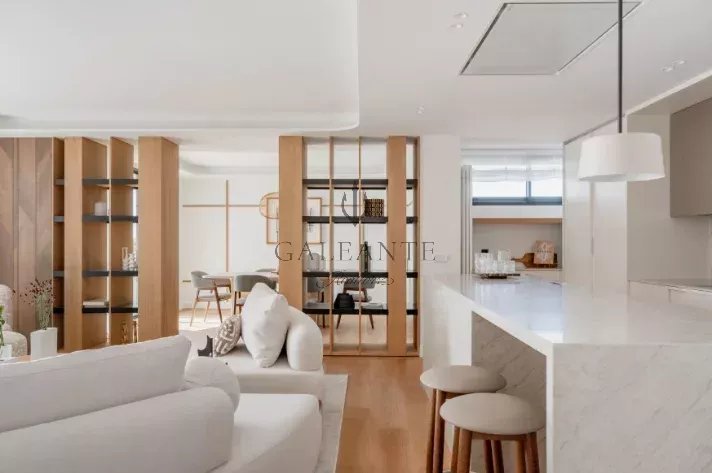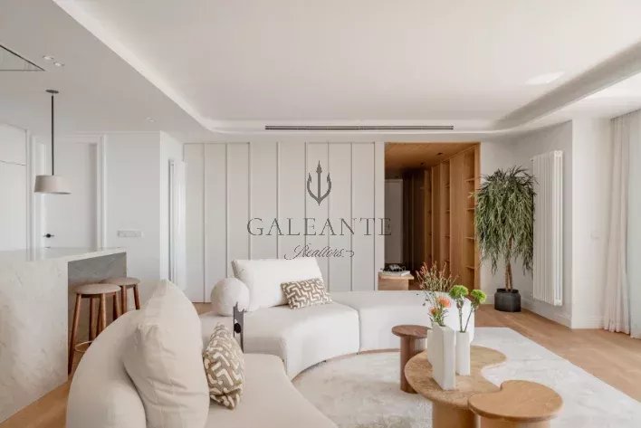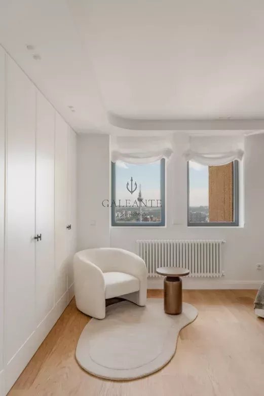 Galeante unveils truly rare gem: a 283 m² penthouse on the 27th floor of iconic Torre de Valencia, the highest residence currently offered in Madrid. With sweeping, cinematic views of El Retiro and a full renovation by Mónica Diago Studio, this home blends contemporary elegance with the iconic 1970s character of the tower. The newly restored terrace becomes an elevated social stage—landscaped, luminous, and furnished with custom outdoor pieces. Inside, the day area flows effortlessly as an open-plan living, dining, and designer island kitchen, equipped with top-tier appliances (Gaggenau, Siemens, Pando) and supported by an independent laundry room. Natural wood floors, CorVision slim-frame windows, architectural lighting, and curated materials define a sleek, modern sophistication. The private wing offers three en-suite bedrooms plus a guest powder room. The primary suite features a sculptural bathroom with freestanding tub, bespoke stone basins, and a generous dressing area. Much of the furniture—sofas, dining pieces, terrace seating—has been designed exclusively for this home. A private storage room, garage space, and 24-hour concierge complete the experience. A singular penthouse perched above the city—height, light, and absolute exclusivity. For more curated luxury properties, visit www.galeante.com For unpublished off-market listings, bespoke advisory, or to arrange private viewings, contact us directly at: +34 699 251 294 / +33 6 16 64 60 13.