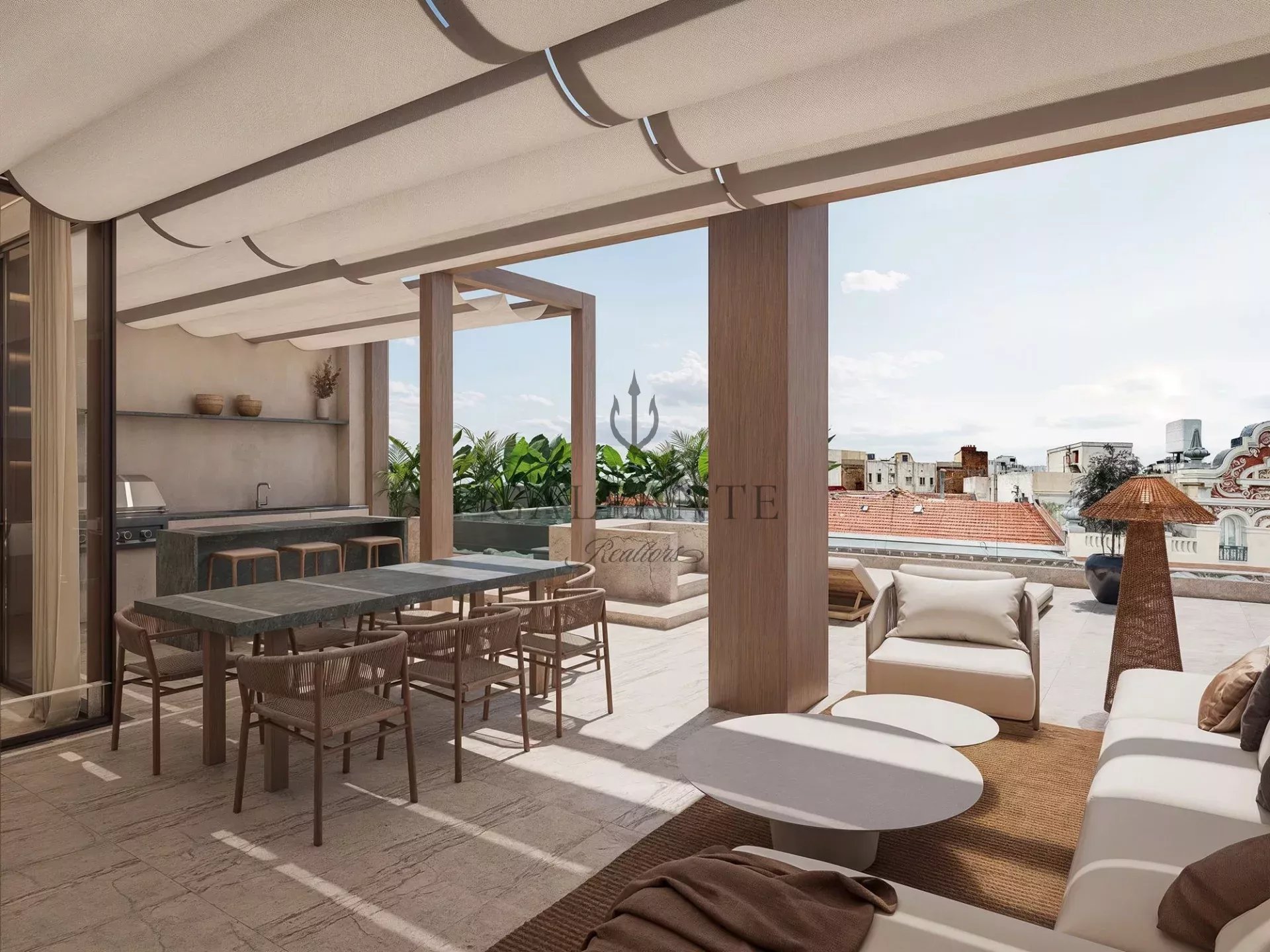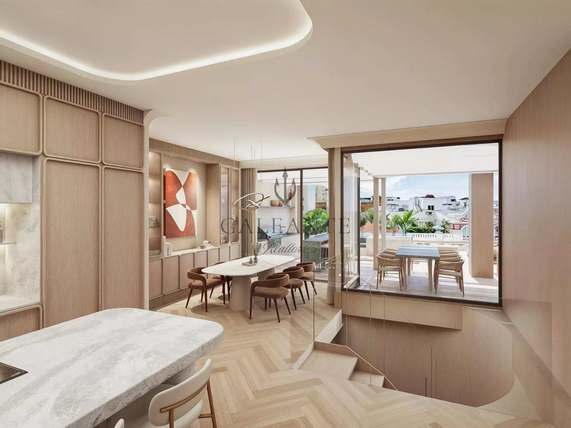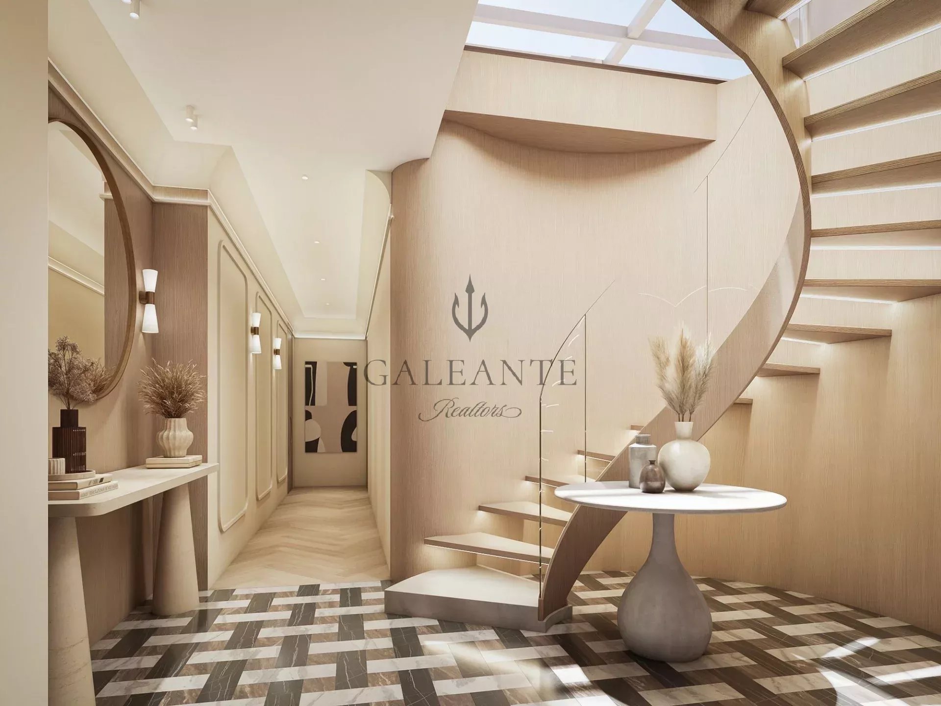 High above Los Jerónimos, overlooking the treetops of El Retiro, rises one of Madrid’s most extraordinary penthouses: a 342 m² dúplex crowned by 107 m² of private terraces—a rare architectural perch suspended between sky and serenity. The main terrace reveals a world of pure indulgence: outdoor dining, sun-lounging, sculptural landscaping, and even the possibility of a private pool. Inside, the proposed renovation imagines a universe of quiet couture living: warm creams, organic textures, soft sculpted forms, and an atmosphere that feels more like a private retreat than a residence in the city. Living spaces dissolve seamlessly into the terrace, creating an elevated indoor–outdoor sanctuary. The bedroom suites are conceived as calm, luminous havens with refined detailing and serene rooftop views. The main living and dining areas blend modern elegance with enveloping natural light, while a sweeping curved staircase becomes a sculptural centrepiece connecting the two levels. A rarity in Madrid, the penthouse includes three parking spaces, concierge service, and lift access—amenities seldom paired with such sky-level exclusivity. The property may be acquired as it is or fully renovated, turnkey, with pricing as follows: • €4.6M to renovate • €5.6M fully renovated, turnkey - bespoke at your own taste or as in renders exposed here. A trophy home in the city’s most coveted enclave— a penthouse where Retiro meets the sky, and luxury lives in every ray of light.