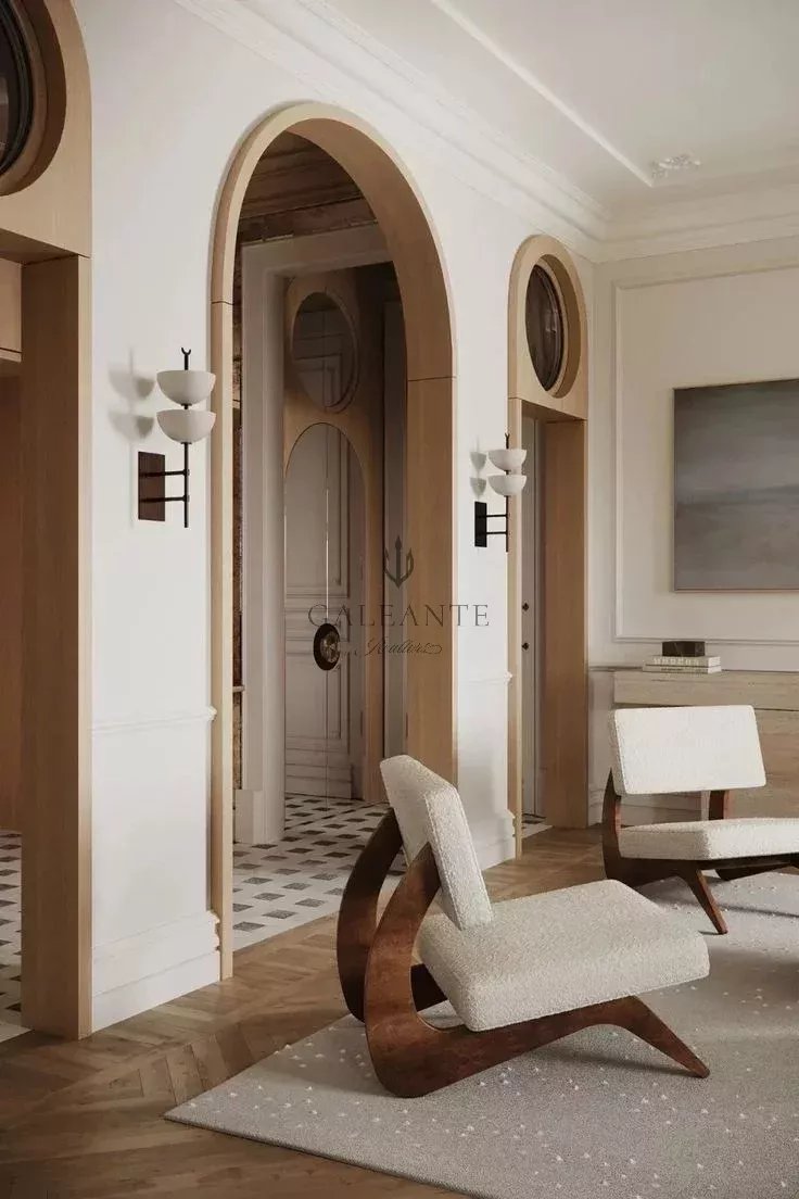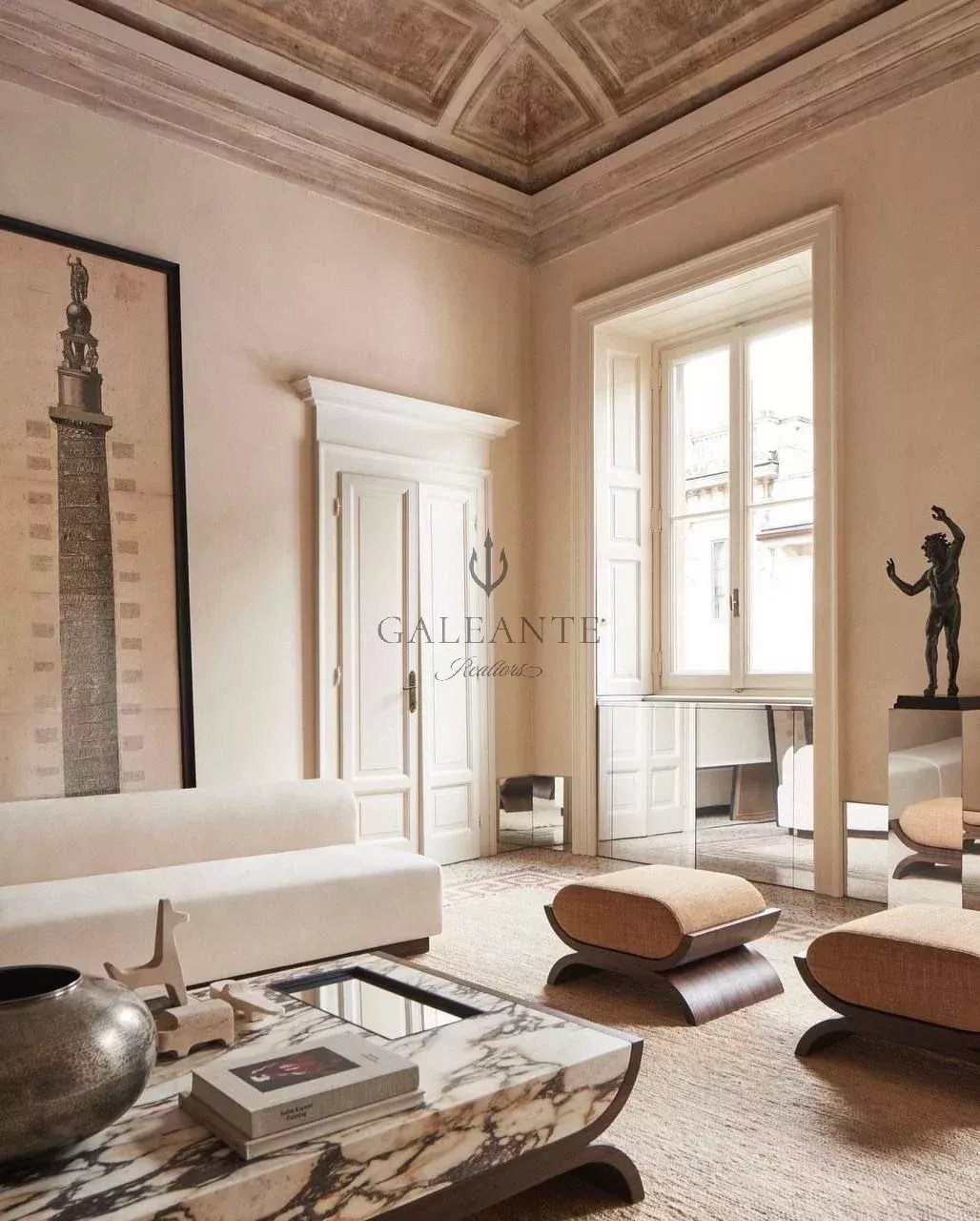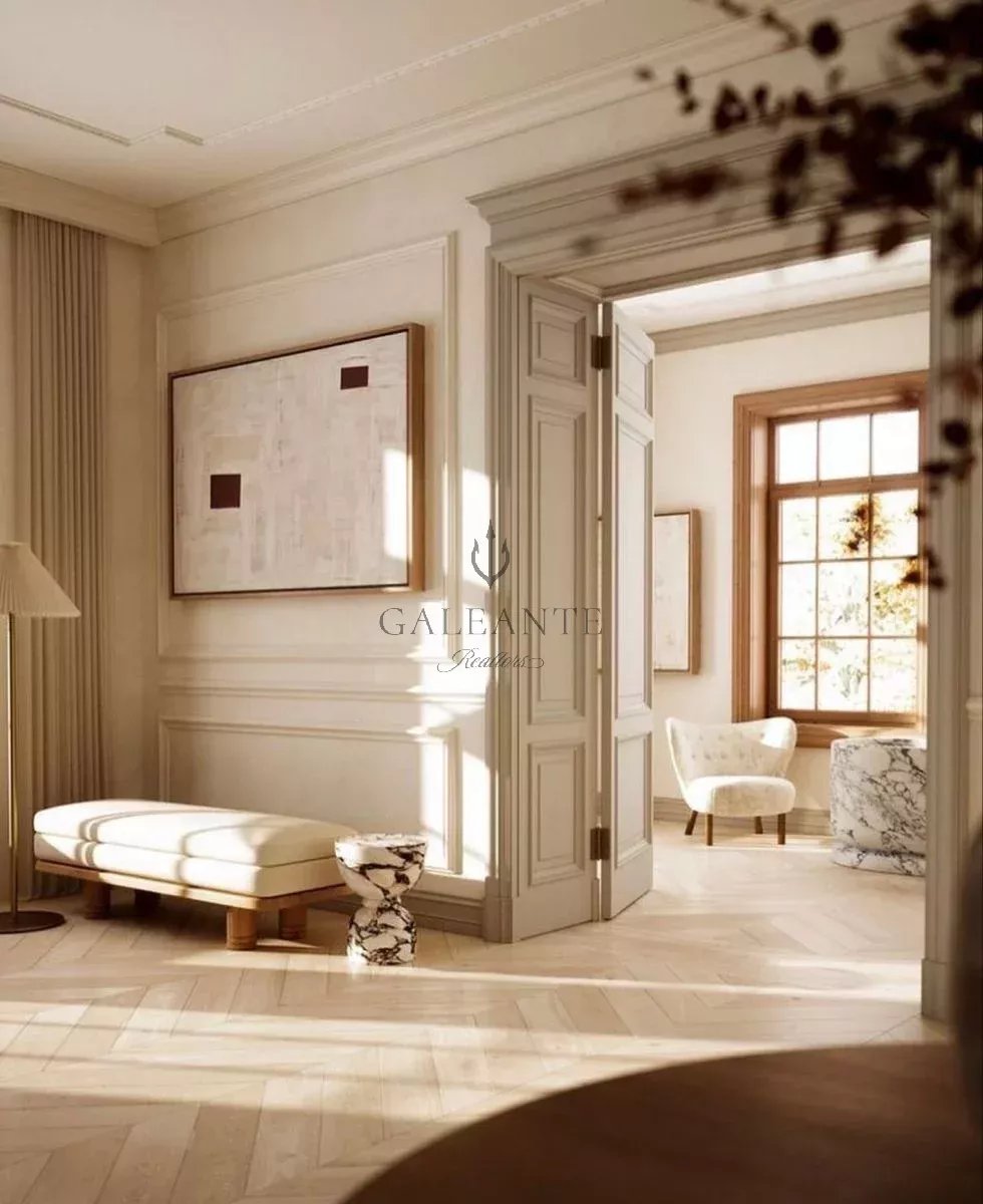 In the aristocratic calm of Almagro, where embassies and grand edifices line tree-shaded streets, rises one of Madrid’s most alluring penthouses: a 342 m² residence suspended between two breathtaking terraces, each offering serene, open views over the city’s rooftops and historic silhouettes. Set within a representative 1929 building with concierge and lift, the property combines old-world stature with contemporary sensorial living. Indoors, the atmosphere softens into warm, curated luxury: expansive salons, sculptural lighting, and a refined palette illuminated by generous openings. A rare urban retreat, the penthouse offers four bedrooms and five baths, complemented by an entire private wellness universe in-building —sauna, jacuzzi, and gym. From morning rituals to sunset aperitifs on the terrace, the home is designed for a life lived in elevated stillness. The building’s elegant façade and the penthouse’s intimate connection to the skyline, are where architecture, sky, and light meet in quiet harmony. A sanctuary above Almagro - where terraces float, luxury whispers, and the city unfolds like a living canvas. The penthouse is currently in obras, offering the rare possibility to acquire it as it is or fully renovated, turnkey, by June 2026. The visuals in this presentation are renders look & feel, illustrating the proposed design direction: understated luxury, sculptural lines, and a palette that breathes. For more listings, visit www.galeante.com. For private investment advisory or exclusive off-market opportunities, contact us at +34 699 251 294.
