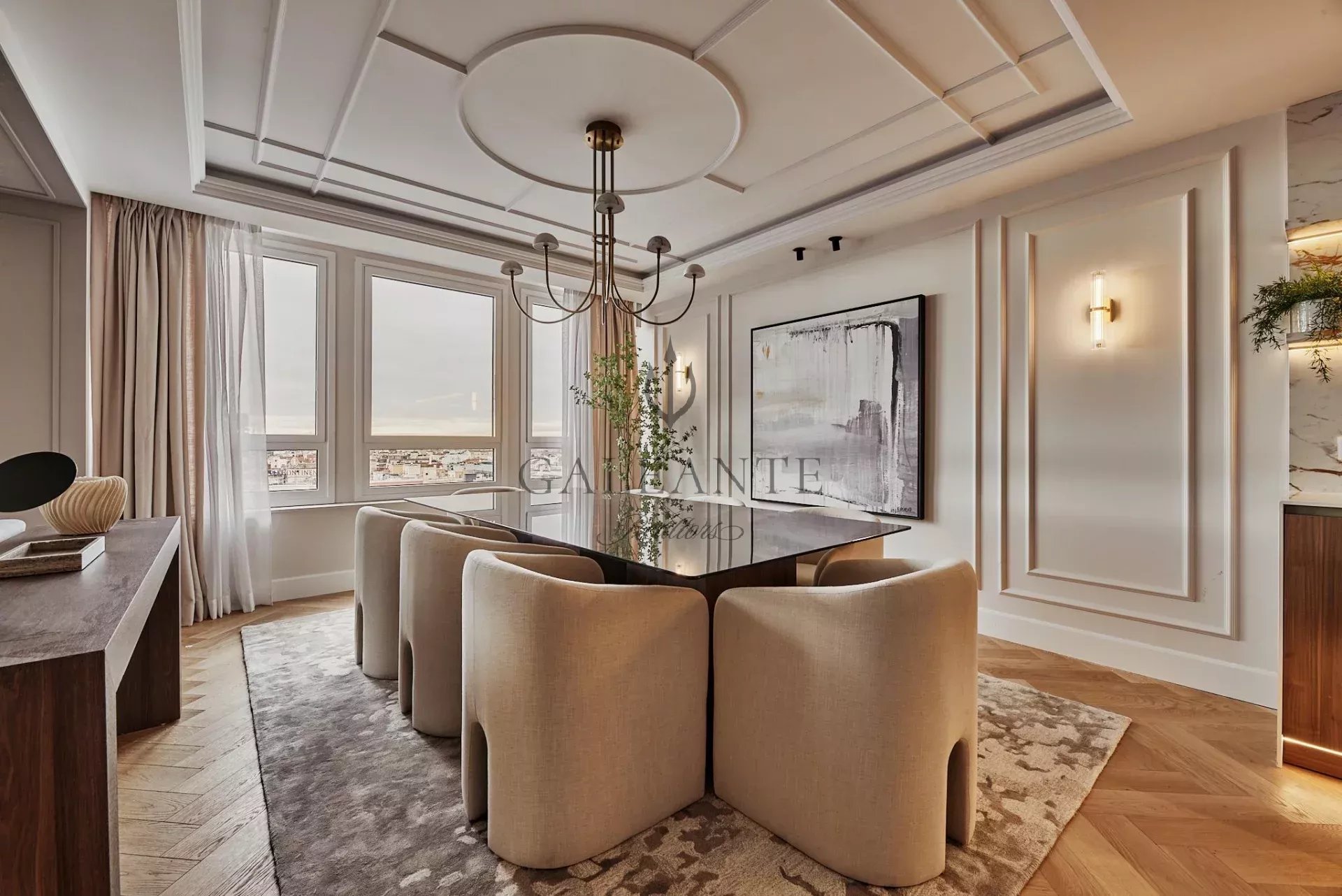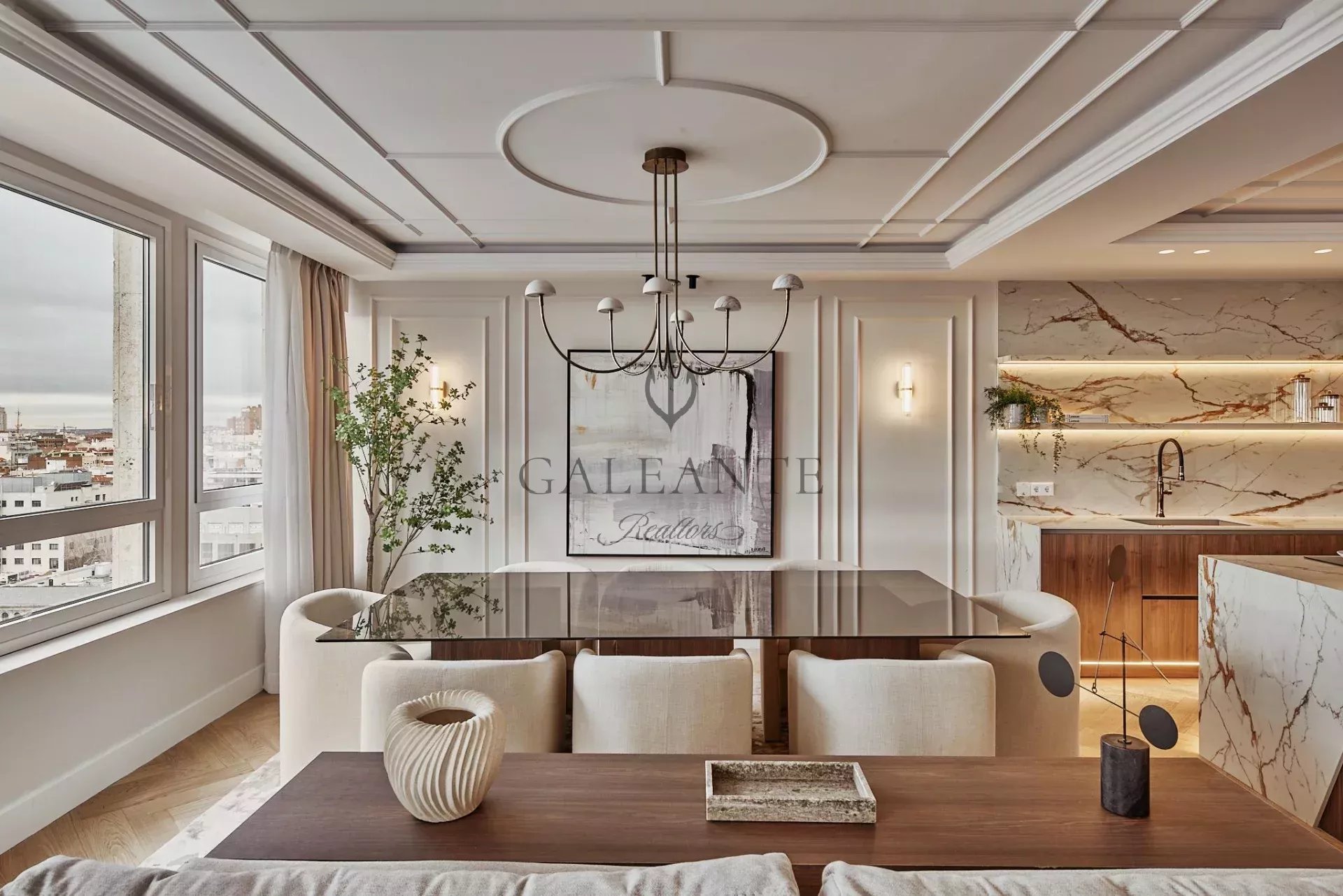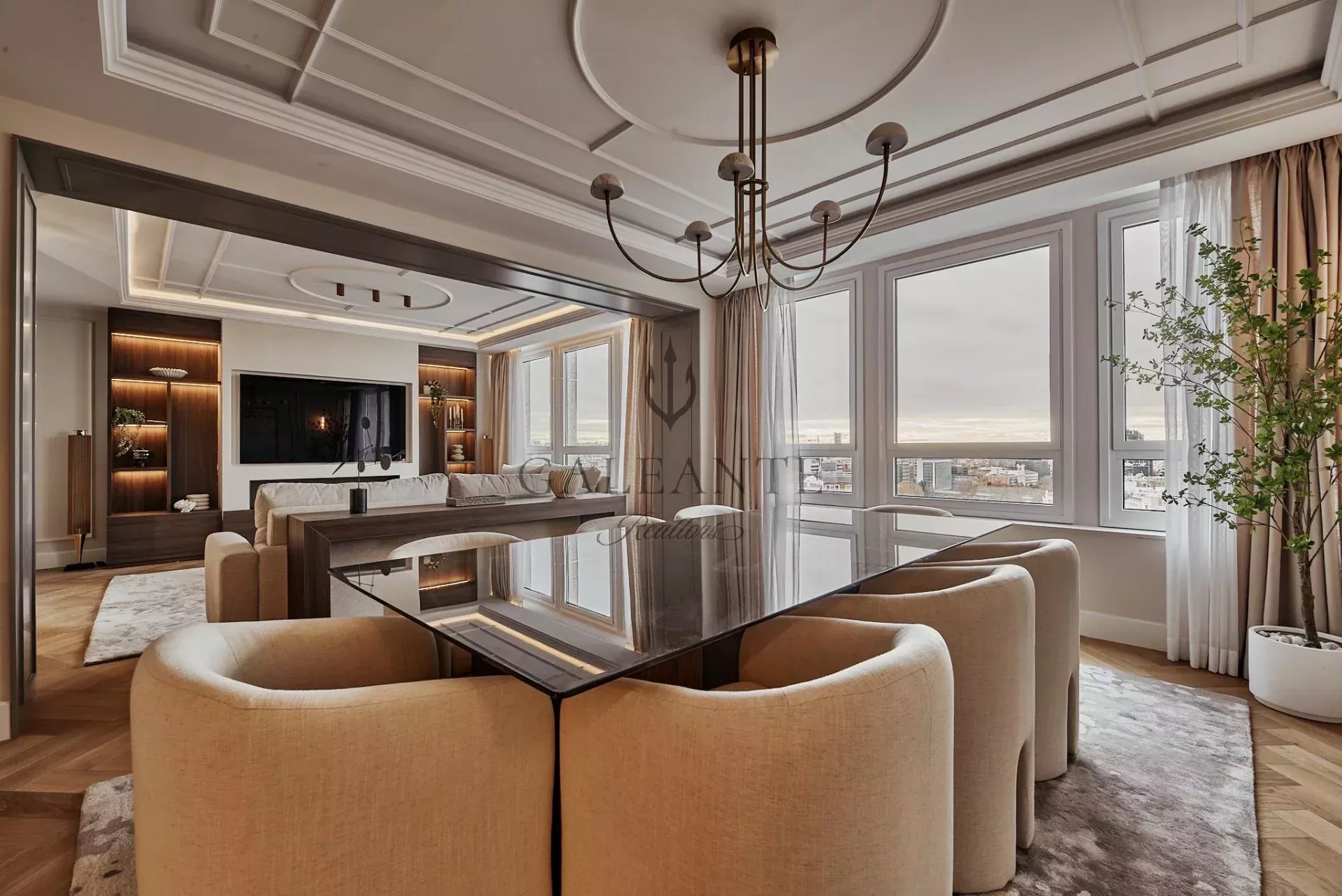 Set on the 13th floor of María de Molina, this 339 m² residence delivers panoramic city views and impeccably curated interior design. Five bedroom suites, six designer bathrooms, and grand living spaces are wrapped in floor-to-ceiling windows, custom millwork, and refined finishes throughout. A gourmet chef’s kitchen pairs with a separate service kitchen, while state-of-the-art home automation and aerothermal climate control ensure effortless comfort. Direct elevator access opens into a private vestibule, setting an exclusive tone that continues across the entire property. Fully furnished with bespoke pieces and complemented by a dedicated service area, laundry room, and 3 private parking spaces, this is luxury reimagined in one of Madrid’s most prestigious addresses - Castellana, surrounded by embassies, international schools, and the city’s top gastronomy. About the area : Calle María de Molina stands at the crossroads of Madrid’s most sophisticated lifestyle - where El Viso meets the Golden Mile, offering the discretion of a residential enclave with instant access to the city’s cultural, diplomatic, and gastronomic scene. Steps from international schools, embassies, private clinics, and flagship dining, the address combines prestige with practicality. Its strategic position connects effortlessly to Serrano, Paseo de la Castellana, and the airport, making it one of the most coveted and cosmopolitan locations to live in Madrid. More similar listings visit www.galeante.com or contact us directly to access our off-market portfolio.