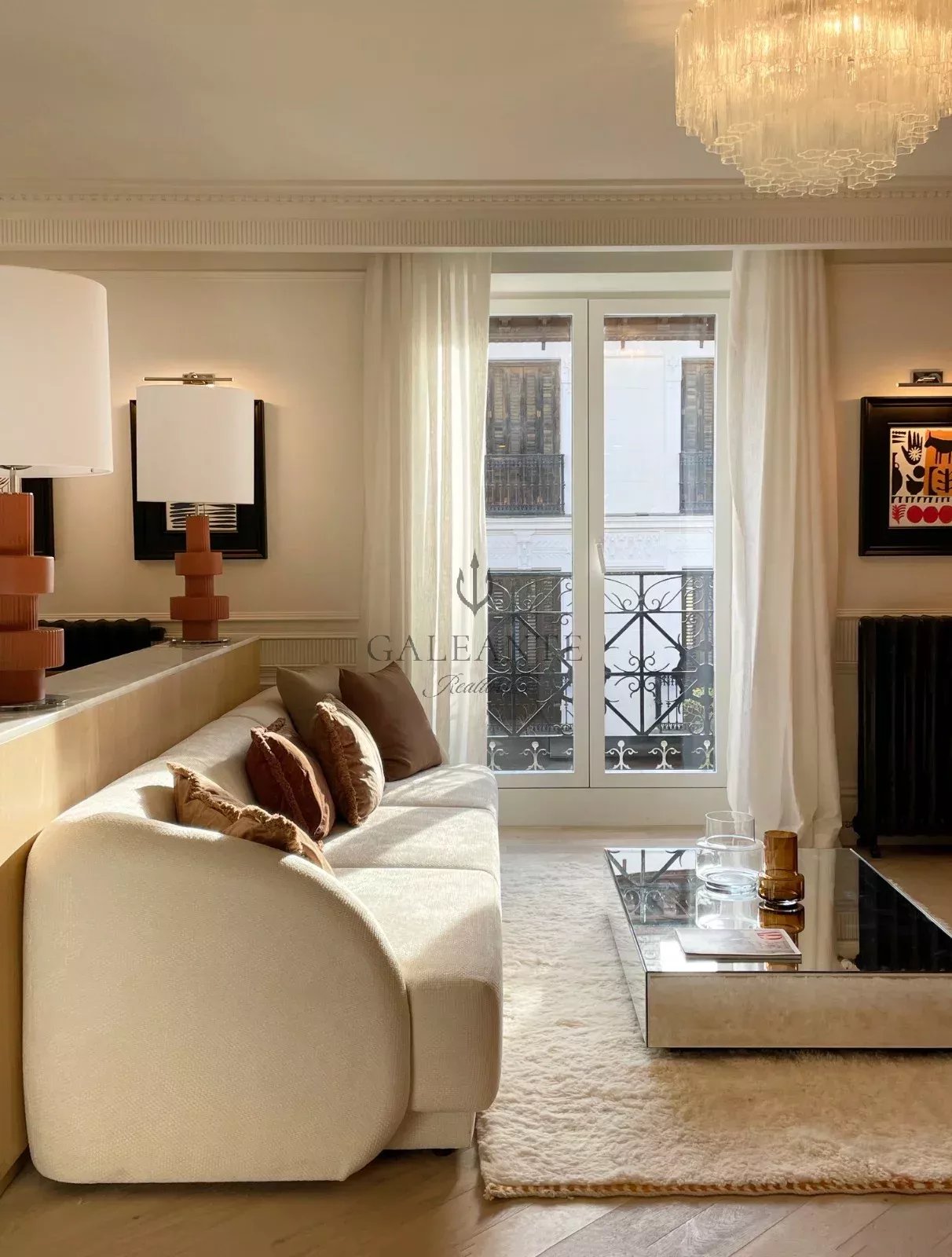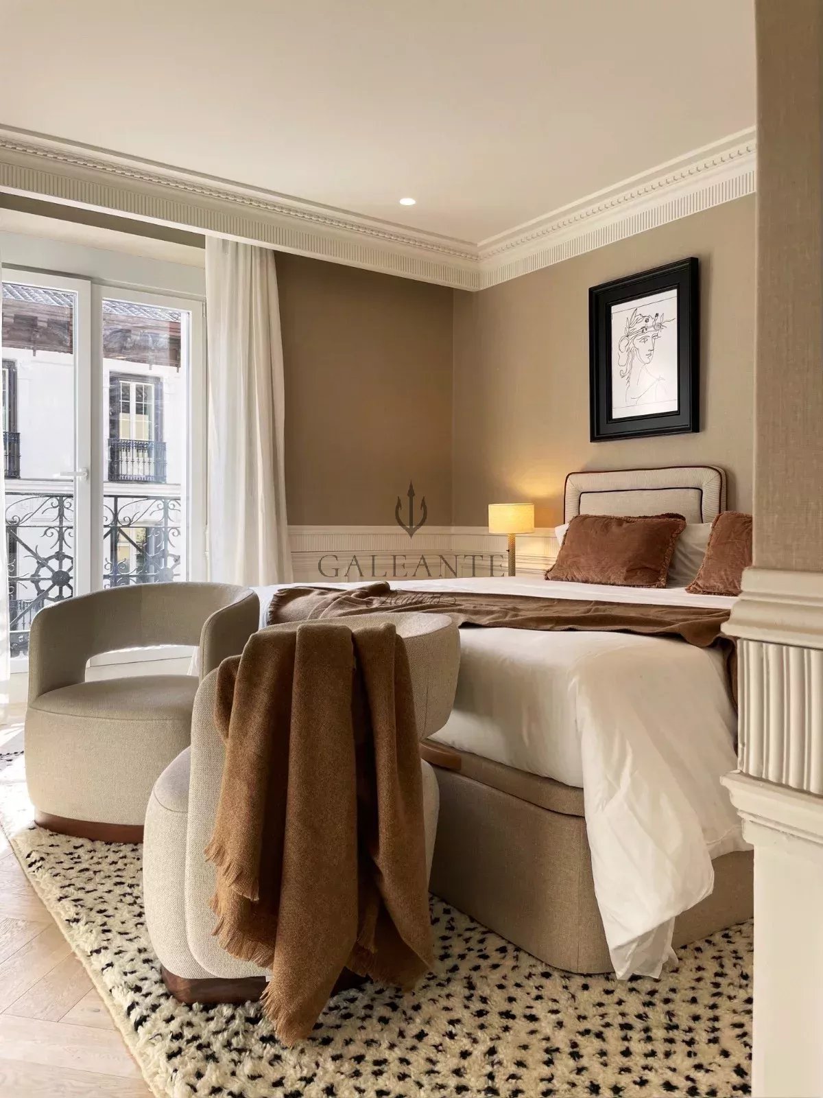 A newly reborn classic in the heart of Recoletos. Conde Aranda rises on the 4th floor of a stately heritage building, unveiling 231 m² of impeccably curated design, bathed in soft, phenomenal light from every angle. 3 suites, each crafted with couture-level detailing, unfold behind sculpted moldings, glowing cabinetry, and a palette that whispers quiet luxury. The living spaces flow with effortless sophistication: herringbone floors, artisanal joinery, luminous display niches, and a salon anchored by an elegant stone fireplace—every detail measured, refined, elevated. The dining room and kitchen continue the story with backlit glass cabinetry, marble textures, and an atmosphere that feels part Paris, part Madrid, entirely timeless. With 2.70 m ceilings, full renovation, elevator, doorman, and a rare 12 m² storage room, this residence embodies the discreet glamour of a classic Recoletos finca. Recoletos is living at the pinnacle of Madrid’s luxury. It is the city’s most coveted enclave—where grand boulevards meet stately architecture, where Serrano’s boutiques, Michelin-starred dining, and the cultural jewels of the Retiro unfold at your doorstep. Here, elegance is effortless: tree-lined streets whisper old-world sophistication, while discreet doormen, heritage façades, and curated calm define a lifestyle reserved for the very few. Recoletos is not just an address—it’s a signature of status, refinement, and Madrid’s most polished cosmopolitan glamour. Conde Aranda: where heritage meets high style, and every room feels editorial.