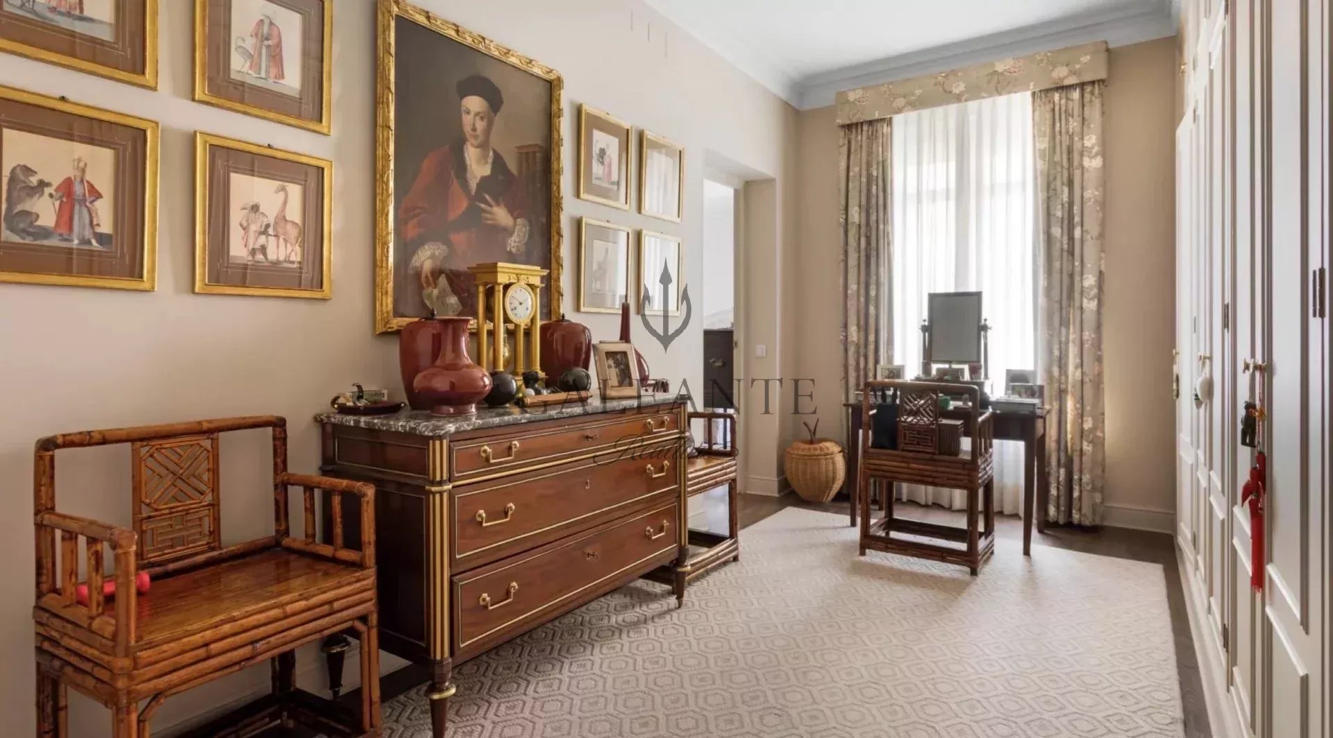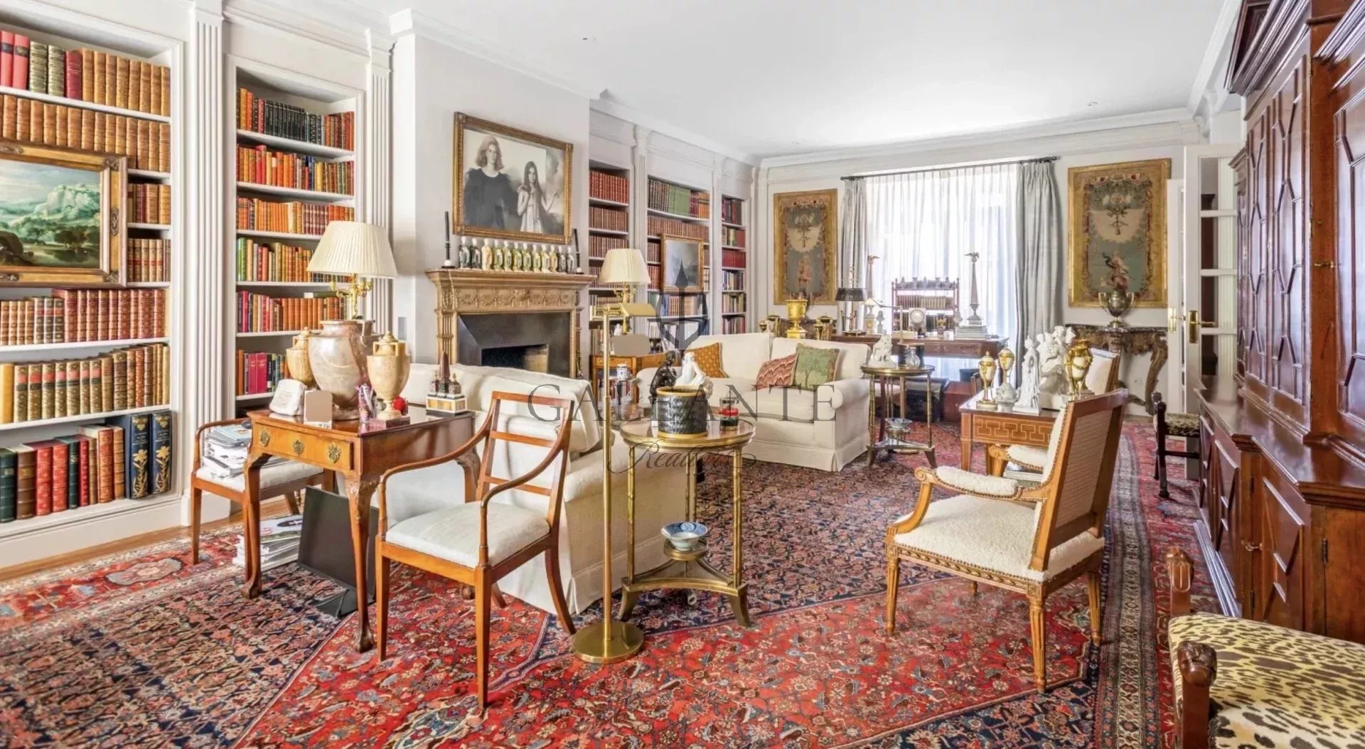 (Confidential Off-Market Listing) In the heart of Recoletos, on one of its most elegant and tree-lined stretches, rises this exceptional property: a 494 m², 4th floor grand residence that embodies the enduring glamour of Madrid’s most coveted architecture. Set within an extraordinary classical building, with soaring ceilings, ornate moldings, and one of the most beautiful communal entrances in the district, this home is a rare masterpiece where scale, light, and heritage converge with quiet sophistication. The interior unfolds through a sequence of refined salons and library-like living rooms, framed by floor-to-ceiling bookcases, antique fireplaces, French balconies, and the warm glow of curated art pieces. Every room carries an aesthetic that blends European tradition with collector-level taste - from the richly layered textiles and oriental panels to the chevron floors and period cabinetry visible throughout the residence. With exterior balconies and a private terrace, the apartment captures the golden orientation of the fourth floor, filtering natural light across generous entertaining areas and serene bedroom suites. This is a home built for grand gatherings yet perfectly attuned to intimate daily living, with discreet service circulation and the convenience of parking just steps away. In sum, the highest expression of Recoletos living - timeless, cultured, and architecturally significant. A residence of this scale and character seldom appears on the open market, which is why this opportunity is offered strictly off-market and shared with the utmost discretion. For further details or a confidential viewing, please contact us directly +34 699 251 294