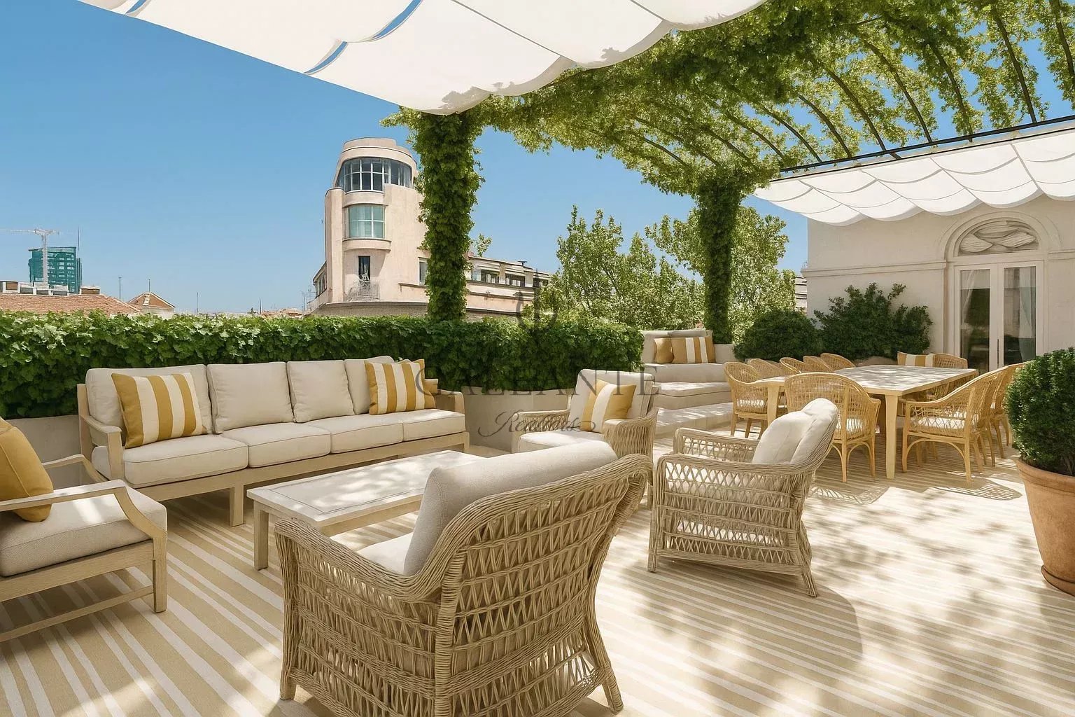 Galeante Realtors presents an architectural masterpiece in the prestigious Jerónimos neighborhood, Retiro district. This exceptional 692 m² penthouse is more than a residence; it is a vessel suspended in the sky, designed with the engineering precision and timeless elegance of a superyacht gracefully anchored in the heart of the city. Occupying the entire top floor of a classical building, the home spans a single level where architecture, premium materials, and natural light converge to create a unique sense of balance and freedom. The layout is conceived to seamlessly separate public and private spheres, mirroring the decks of a luxury yacht. The western wing is dedicated to social life, featuring symmetrical living rooms, an intimate cocktail bar, and a formal dining room that all flow onto a lush, light-filled terrace—perfect for private entertaining. At the center lies an elegantly designed kitchen that serves as a functional hub without disrupting the aesthetic flow. The private quarters comprise five en-suite bedrooms, including a soundproofed master suite with a designer walk-in closet and spa-style bathroom. Featuring bespoke carpentry, integrated ambient lighting, and flawless execution, this exclusive property by Galeante Realtors offers a living experience akin to a private voyage above Madrid.