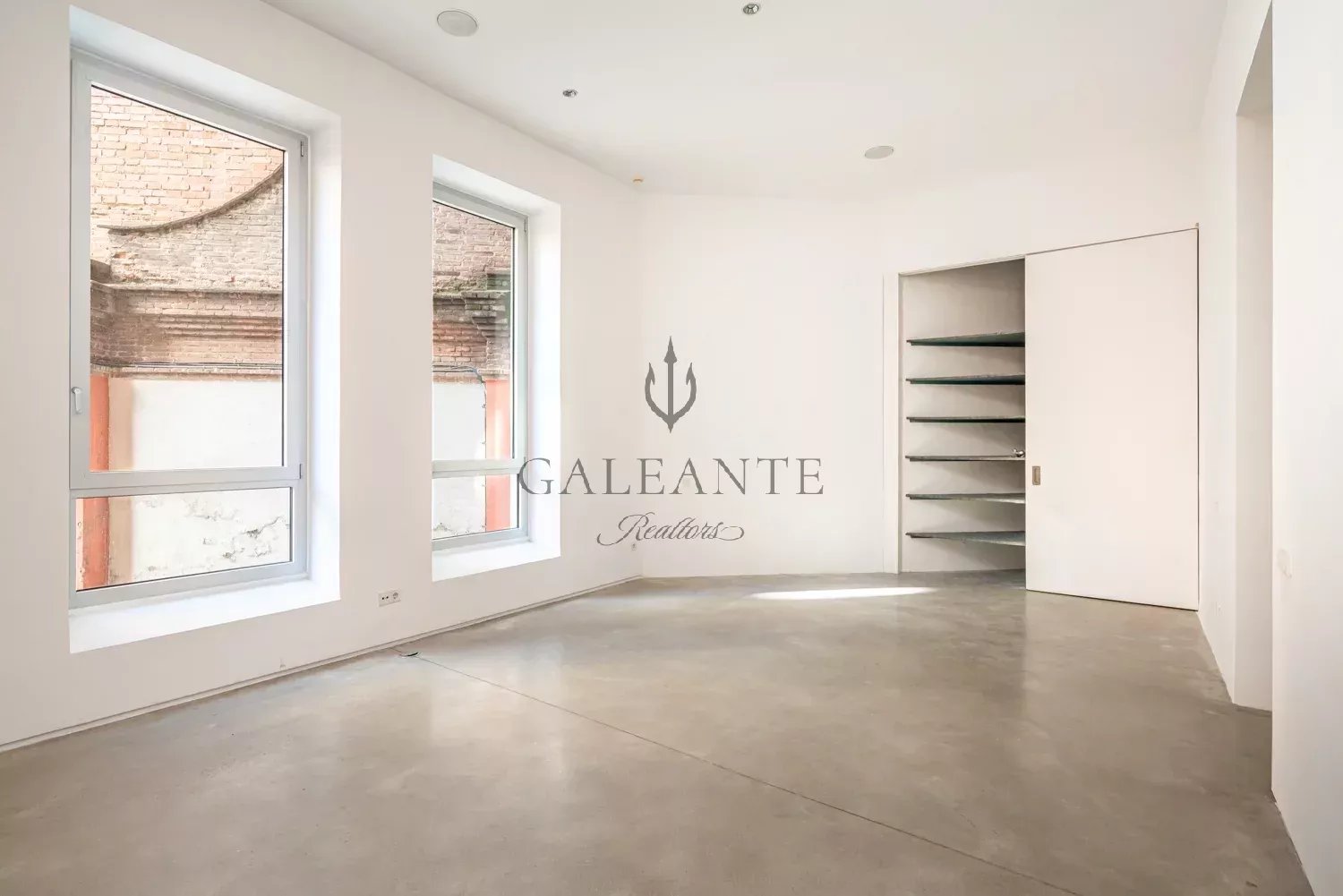 Galeante Realtors presents a singular opportunity in one of Almagro’s most architecturally refined enclaves. Originally designed as an art gallery and situated within a stately 1930 building, this extraordinary 334 m² residence offers a sense of scale, silence, and luminosity rarely encountered in Madrid. Defined as an "invisible ground floor," the property defies its street-level location by offering absolute acoustic and visual privacy, creating a sanctuary that feels more like a suspended loft than a traditional apartment. The space is distinguished by soaring four-meter ceilings and full-height floor-to-ceiling windows and doors in every room, creating a continuous vertical rhythm that preserves the sculptural essence of its former life as a gallery. The current layout is configured as a vast, open-plan home with flexible potential for three to four bedrooms. A monumental living and dining space forms the heart of the residence, flowing into a library or atelier framed by a striking angular bay window. Crucially, the property has undergone significant recent technical refurbishments, including new plumbing, wiring, and a state-of-the-art aerothermal system for year-round climate comfort. With the structural work complete, this residence is perfectly primed for a final cosmetic transformation into a luxurious garden-style flat with minimal effort. Located just steps from Justicia and the Castellana axis, this is a space where architecture becomes art and scale becomes intimacy.