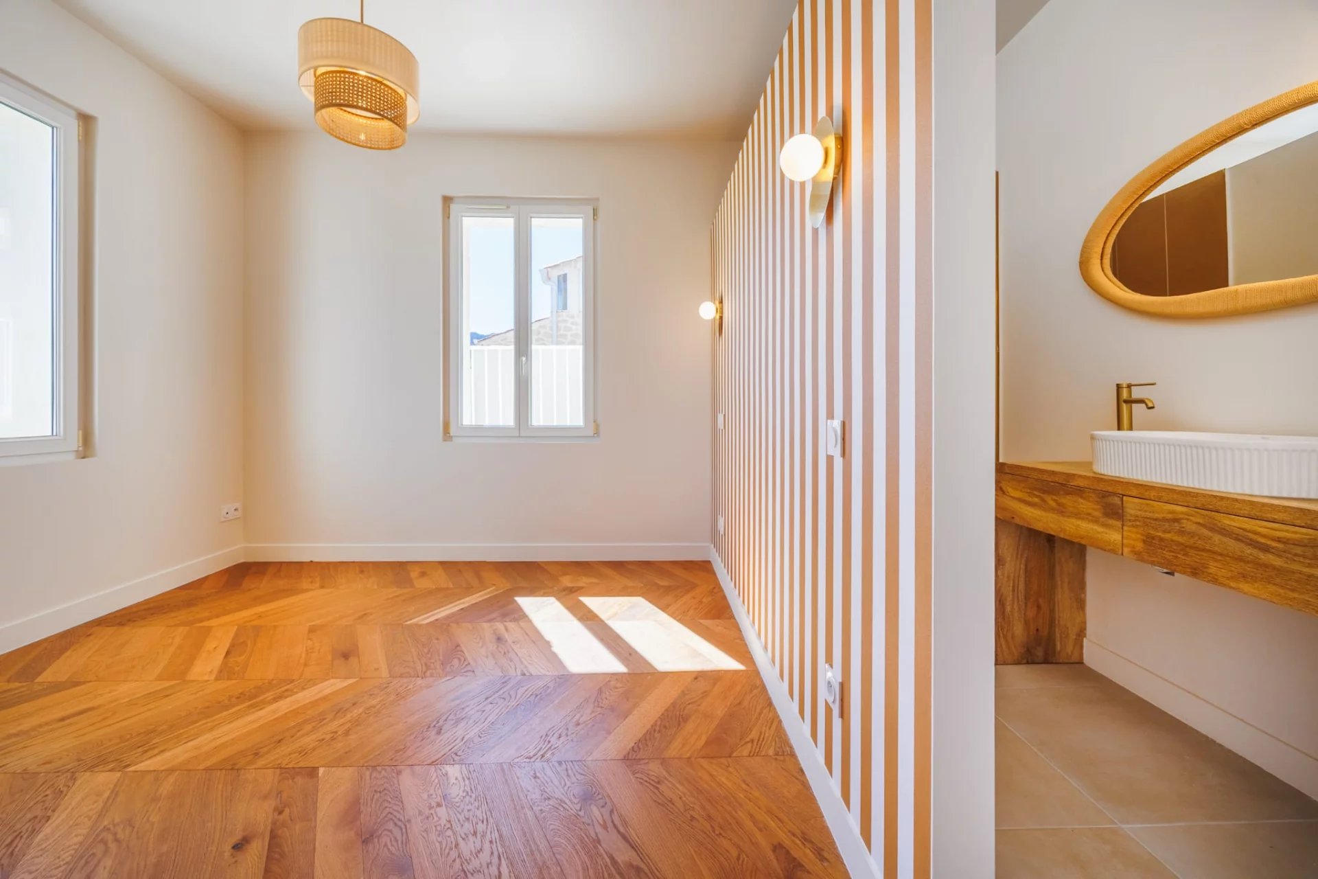 A seulement quelques minutes à pied du port, villa contemporaine de 170 m2 offrant 4 chambres, entièrement rénovée dans un esprit moderne proposant des volumes généreux type loft et des prestations soignées.