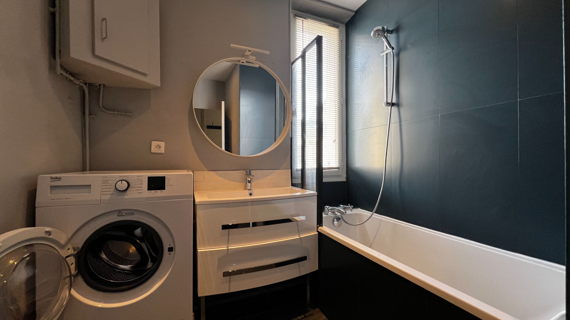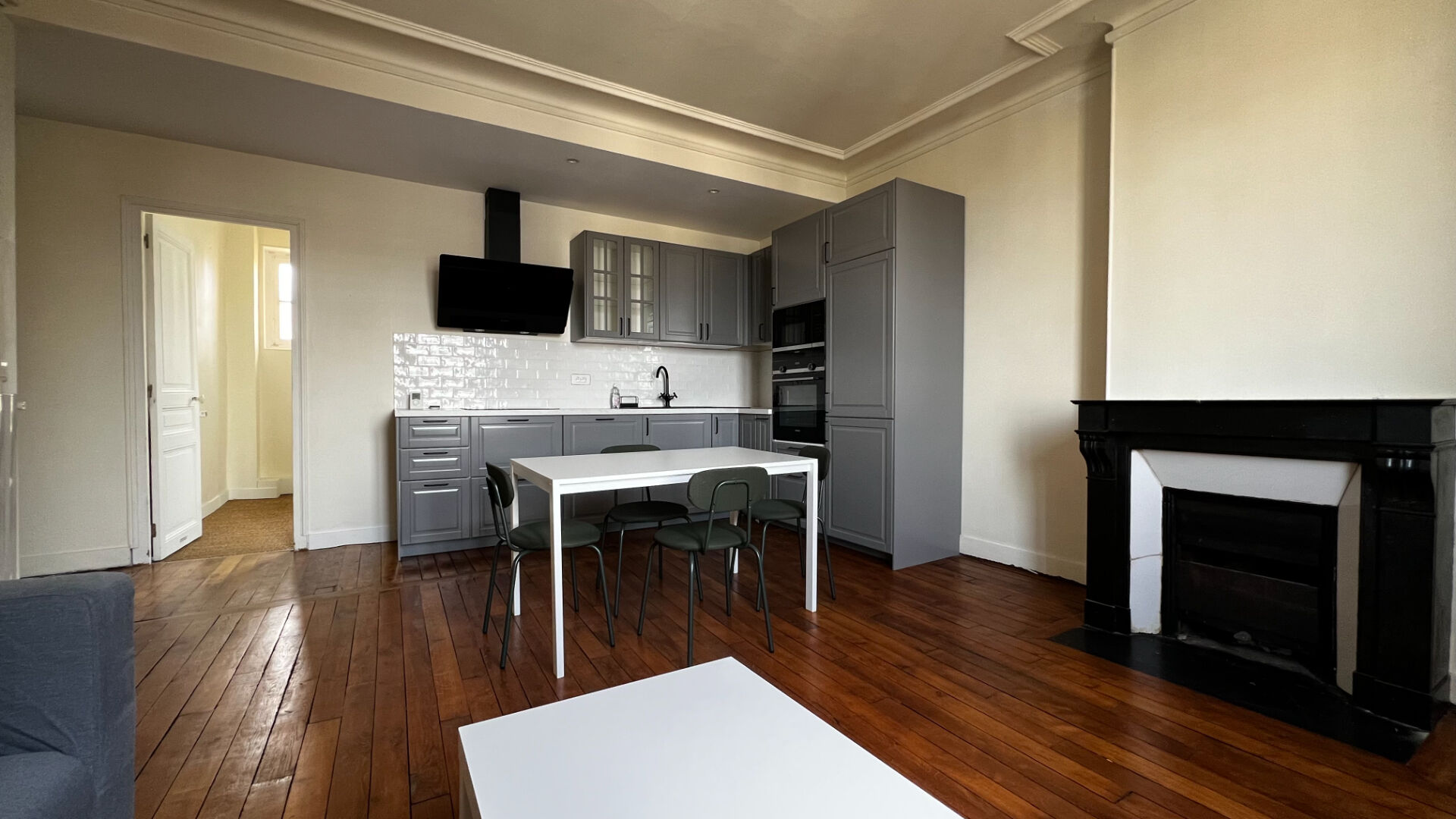 MAIRIE DE MONTROUGE - Bel appartement situé au quatrième et dernier étage d'un immeuble ancien, à quelques pas de la Mairie, du métro et de nombreux commerces. Appartement calme et lumineux, traversant (double exposition EST - OUEST), belle hauteur sous plafond. Location meublée. Disposition en étoile: Entrée donnant accès à la salle de bains avec WC et machine à laver, une première pièce de 7 m2 (pouvant faire office de petite chambre ou bureau), une chambre aménagée de 12 m2 et un bel espace, cuisine aménagée donnant sur le séjour, de 29 m2. Appartement disponible avec une cave en sous-sol. Honoraires de location - 803.25 euros TTC Dépôt de garantie - 1900.00 euros