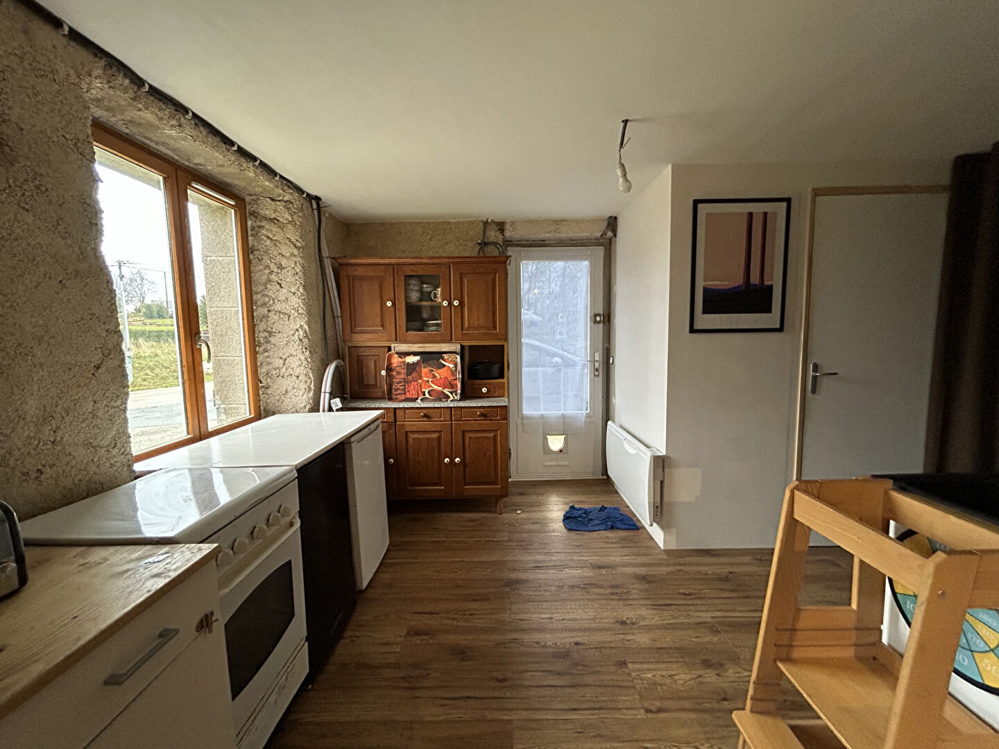 A VENDRE - EN EXCLUSIVITÉ : située entre le bourg de PLOURIN-LES-MORLAIX et le bourg de PLOUGONVEN, maison mitoyenne comprenant au rez-de-chaussée : un coin cuisine, un salon - séjour avec poêle à bois, un WC. L'étage se compose d'une chambre, d'un bureau et d'une salle d'eau. Combles au-dessus. Un jardin, un abri bois et une ruine. Idéal primo-accédants ou investisseurs . (8.50 % honoraires TTC à la charge de l'acquéreur.)