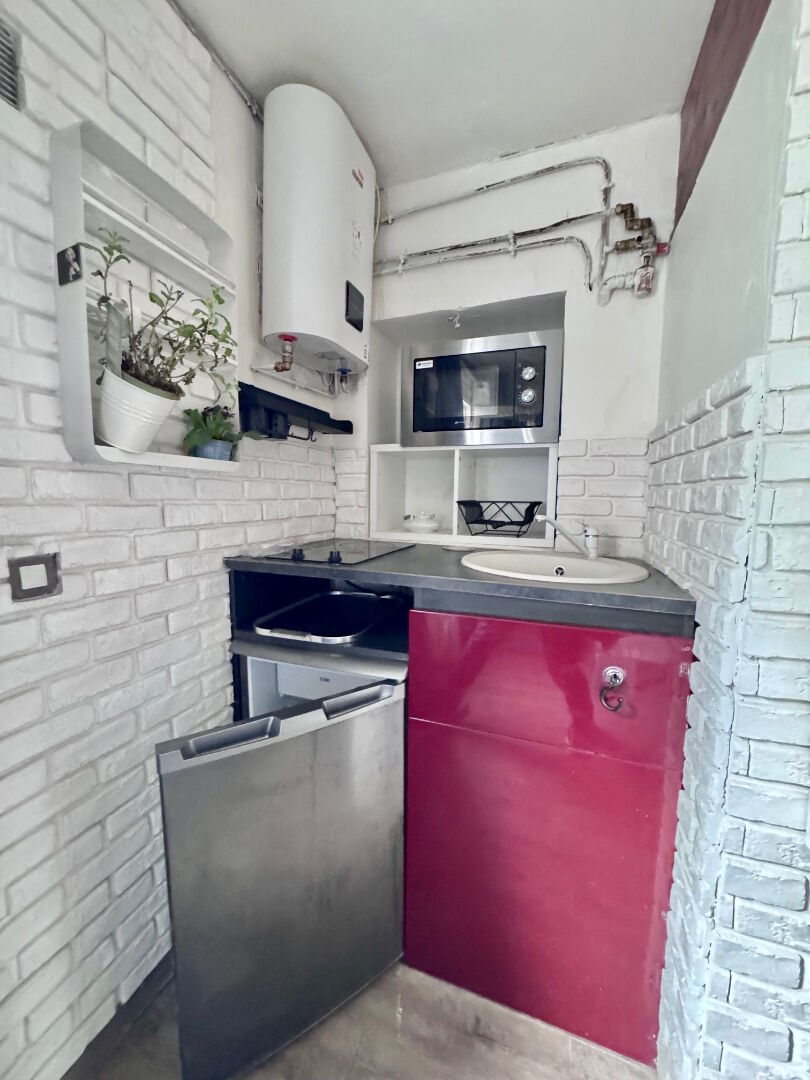 Dans une magnifique cour pavée et arborée, un des trésors cachés du 11e arrondissement, face à la Cité du Figuier, Beau studio de 14,77m2 Carrez au 2e étage d'un pavillon de 3 étages, Fenêtre double vitrage exposée "sud ouest", vendu avec lit mural rabattable, Coin cuisine, salle d'eau avec douche, lavabo, vrai wc. Calme, Luminosité, et vue sur les arbres et les oiseaux, au sein d'un quartier recherché et animé Charges : 52 euros/mois (chauffage et eau chaude : individuel électrique) Métros 2 et 3 : Parmentier, Saint-Maur, Ménilmontant Informations et visites : Yann Hamet 0763711811 Yann HAMET (EI) Agent Commercial - Numéro RSAC : 839035078 - PARIS.