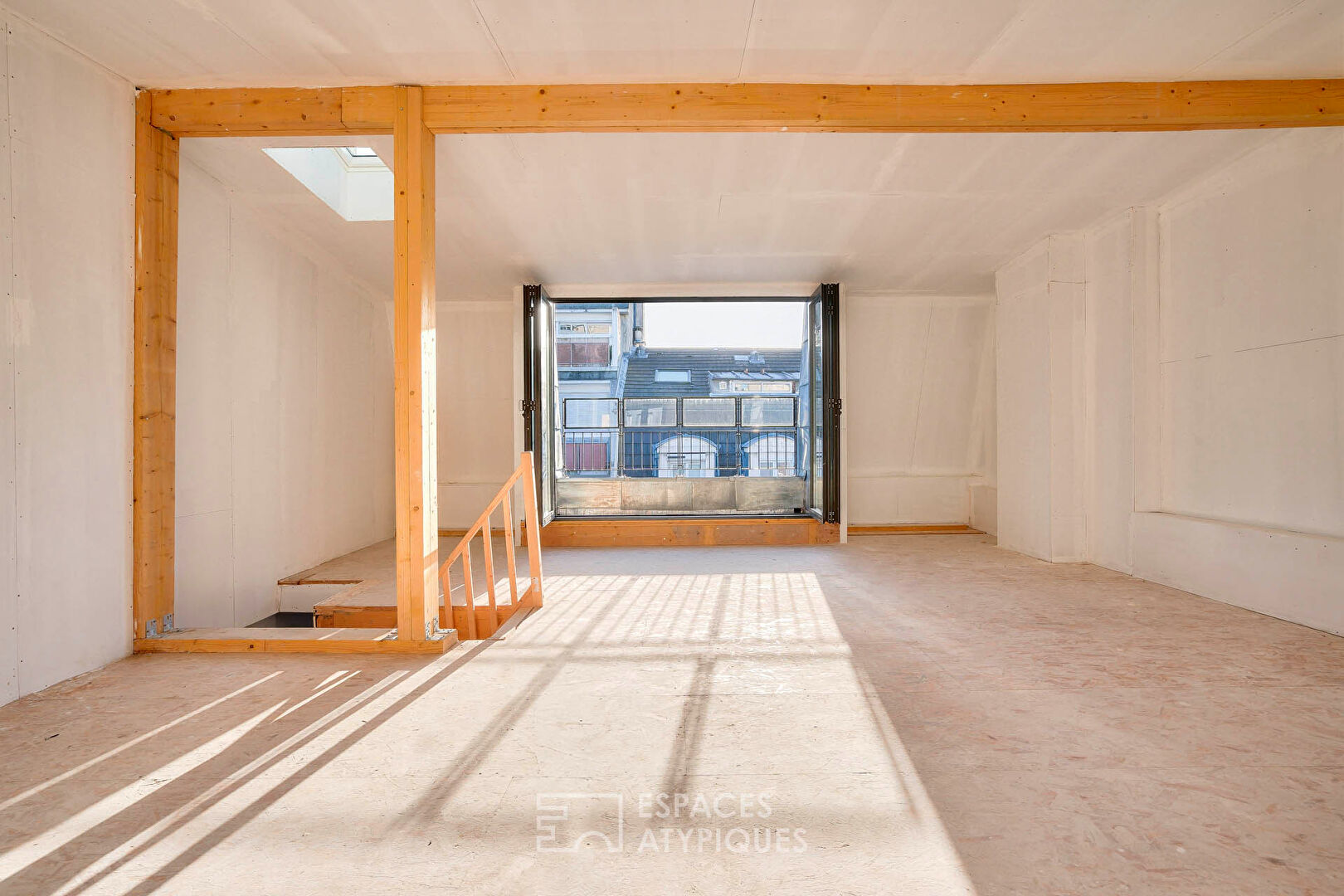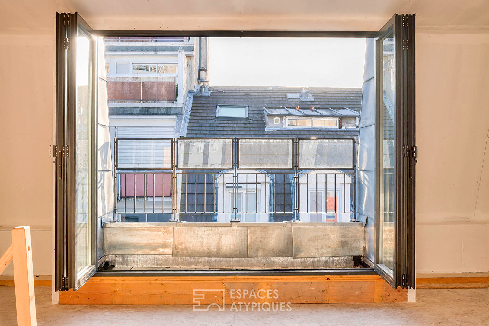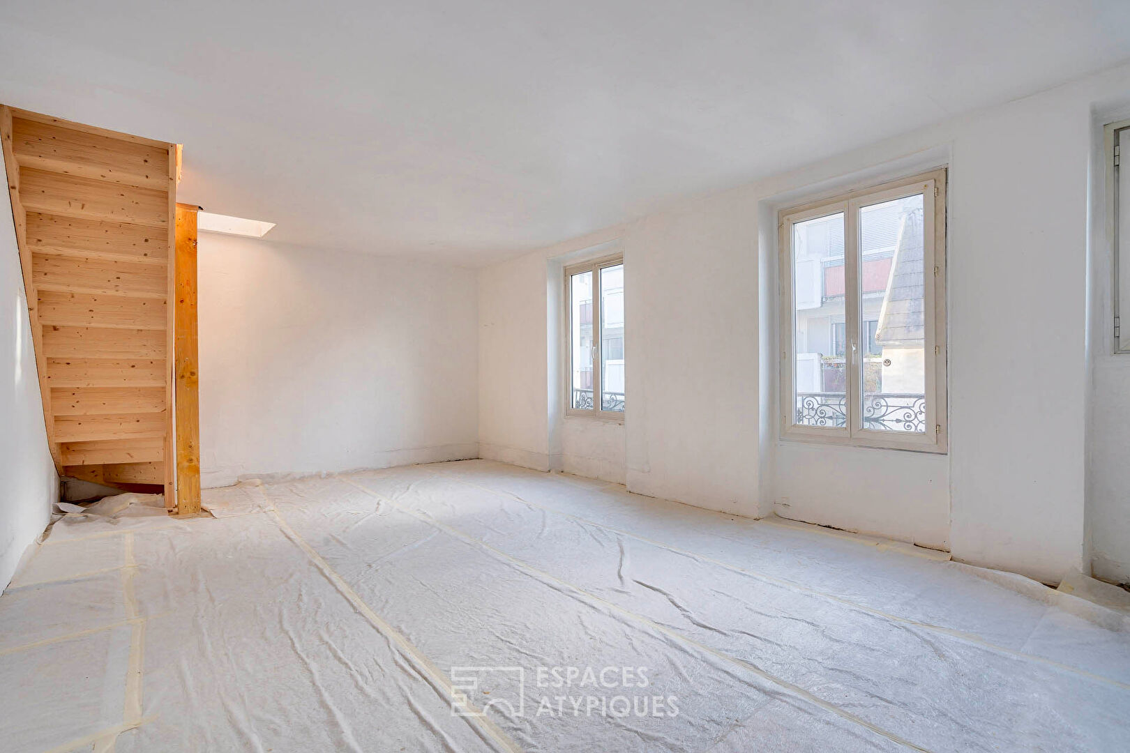 Idéalement situé à la jonction de la rue Daguerre, du quartier Pernety et du quartier Montparnasse, au troisième et dernier étage (accessible par escalier) d'un bel immeuble ancien, cet appartement en duplex avec balcon offre une surface de 85 m² (82 m² Carrez) à aménager selon vos envies. Il bénéficie d'un véritable esprit loft avec une spacieuse pièce de vie traversante et lumineuse. L'entrée ouvre sur un premier plateau exposé sud-ouest, aménageable en espace nuit avec deux chambres et une salle de bains. Le charme de l'ancien se marie parfaitement avec des éléments plus contemporains. Dans un esprit de maison sous les toits, l'étage révèle tout le caractère authentique du lieu : une spacieuse pièce de vie nous accueille, baignée de lumière grâce à sa triple exposition est-sud-ouest. Aménageable à souhait, elle bénéficie d'une belle hauteur sous plafond, d'une configuration traversante et d'un balcon accessible par de superbes baies vitrées toute hauteur. Une grande cave complète ce bien soumis au statut de la copropriété. Non soumis au DPE. Les informations sur les risques auxquels ce bien est exposé sont disponibles sur le site Géorisques : https://www.georisques.gouv.fr Métro : Gaîté et Pernety Contact : Julien - EI - 07 60 34 15 93 - 809 373 509 RSAC PARIS Copropriété de 13 lots (Pas de procédure en cours). Charges annuelles : 2450 euros. Julien PERON (EI) Agent Commercial - Numéro RSAC : 809 373 509 - Paris.
