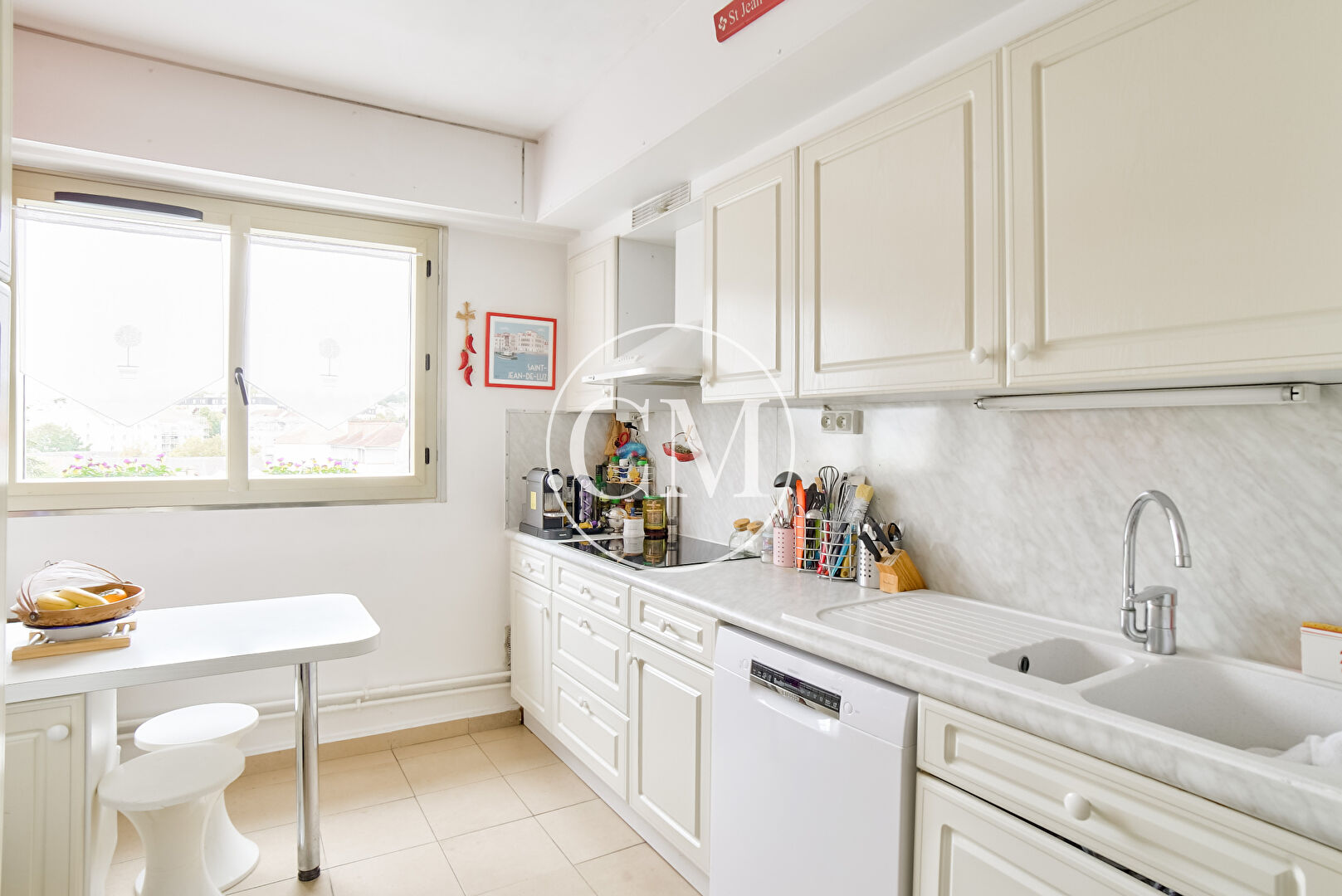VERSAILLES GRAND SIECLE DUPLEX TERRASSE En périphérie de la résidence, appartement duplex en dernier étage offrant des vues dégagées. Premier niveau : Entrée, cuisine, chambre, salle de bains, toilettes, salon séjour double avec cheminée et accès terrasse 30m2 (possibilité de diviser pour une 3e chambre) Deuxième niveau : Suite, salle de douche et toilettes, accès terrasse 60m2 Cave et garage fermé accès direct ascenseur. Gare 6 min, commerce à pied, sectorisation écoles Hoche. Copropriété de 3967 lots - dont 1221 lots habitation. (Pas de procédure en cours). Charges annuelles : 8170 euros.