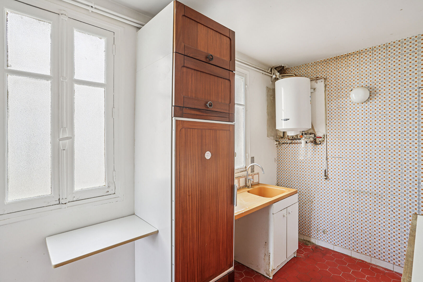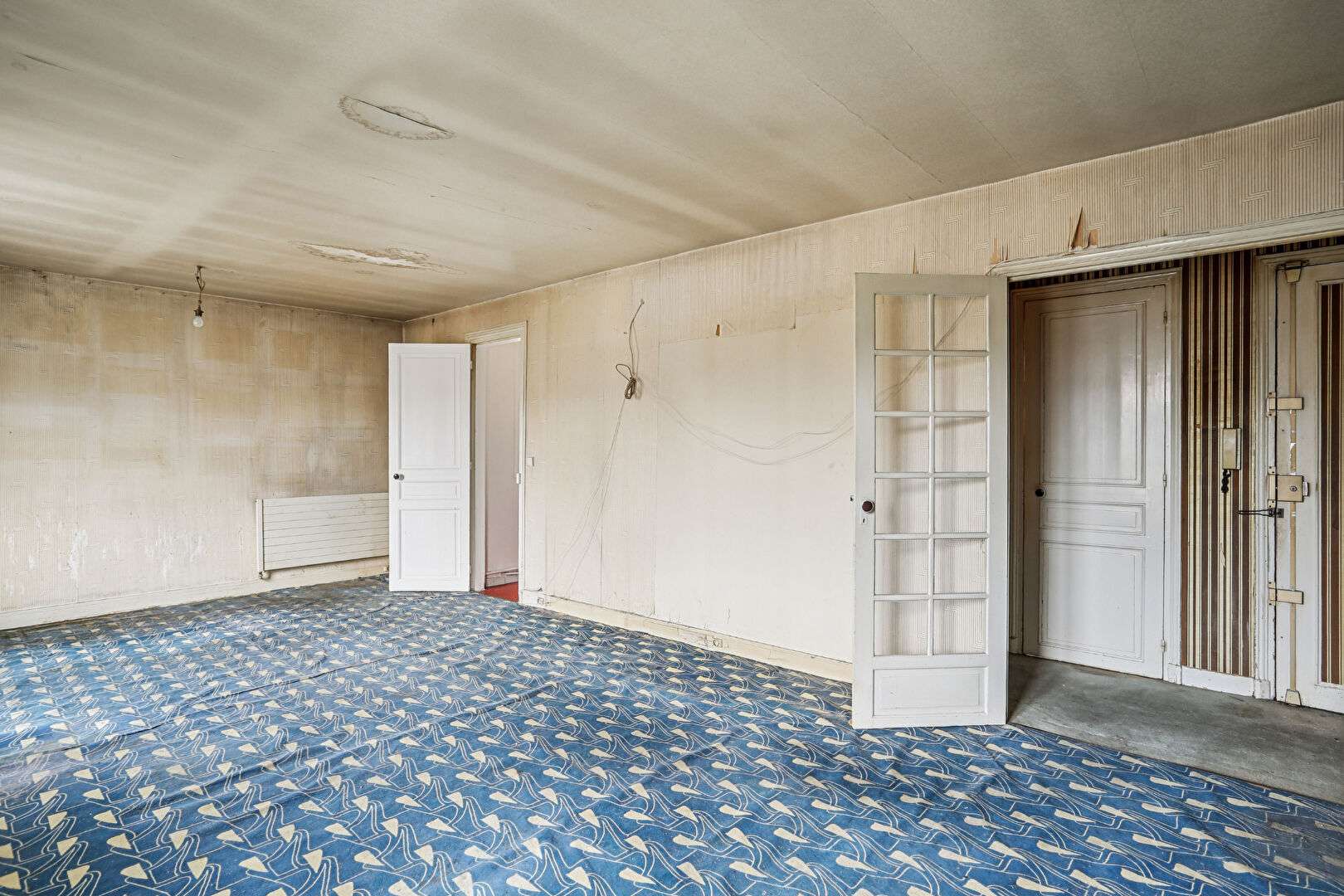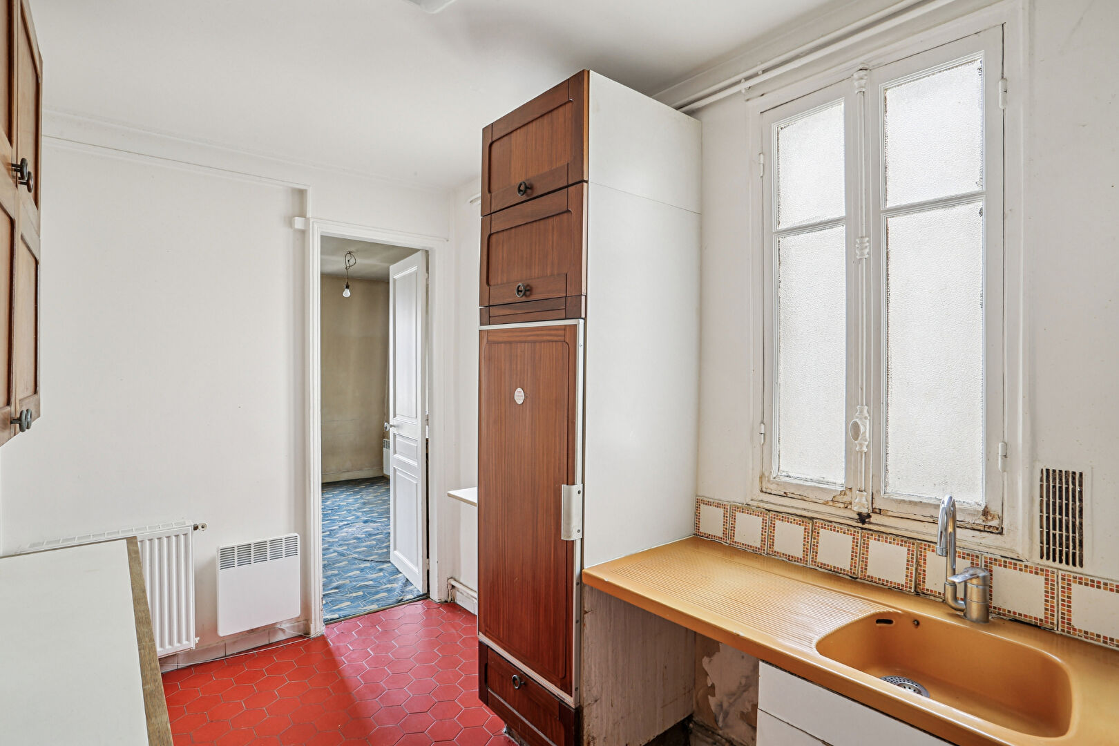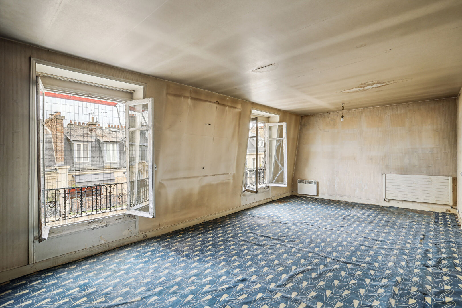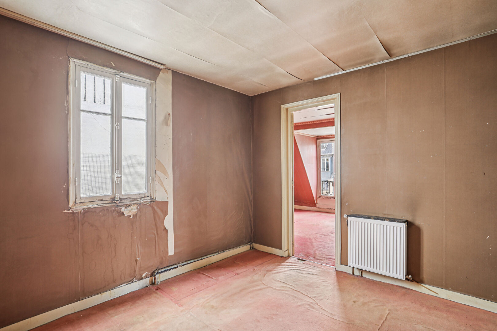 Au 7ème et dernier étage d'un bel immeuble de style haussmannien, accessible par ascenseur jusqu'au 6ème étage puis par un ultime palier à pied, découvrez cet appartement offrant un magnifique potentiel de rénovation. L'entrée distribue un vaste séjour baigné de lumière de 30m2, agrémenté de deux fenêtres exposées sud-ouest, une cuisine indépendante, trois chambres, une salle de bains avec WC, ainsi qu'un placard avec lavabo pouvant être aménagé en second WC. Un dressing agrémente l'entrée. Une cave vient compléter ce bien. Un bien rare à réinventer au coeur d'une adresse recherchée. (4.44 % honoraires TTC à la charge de l'acquéreur.)