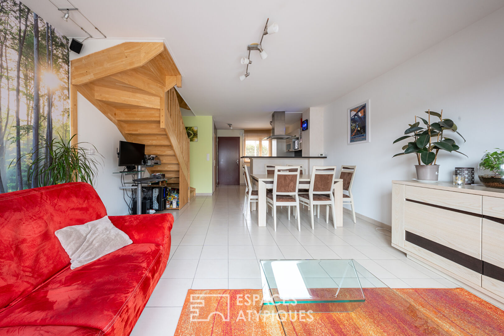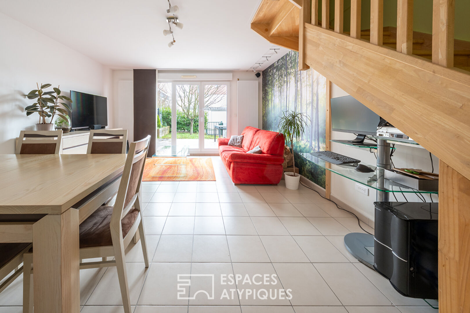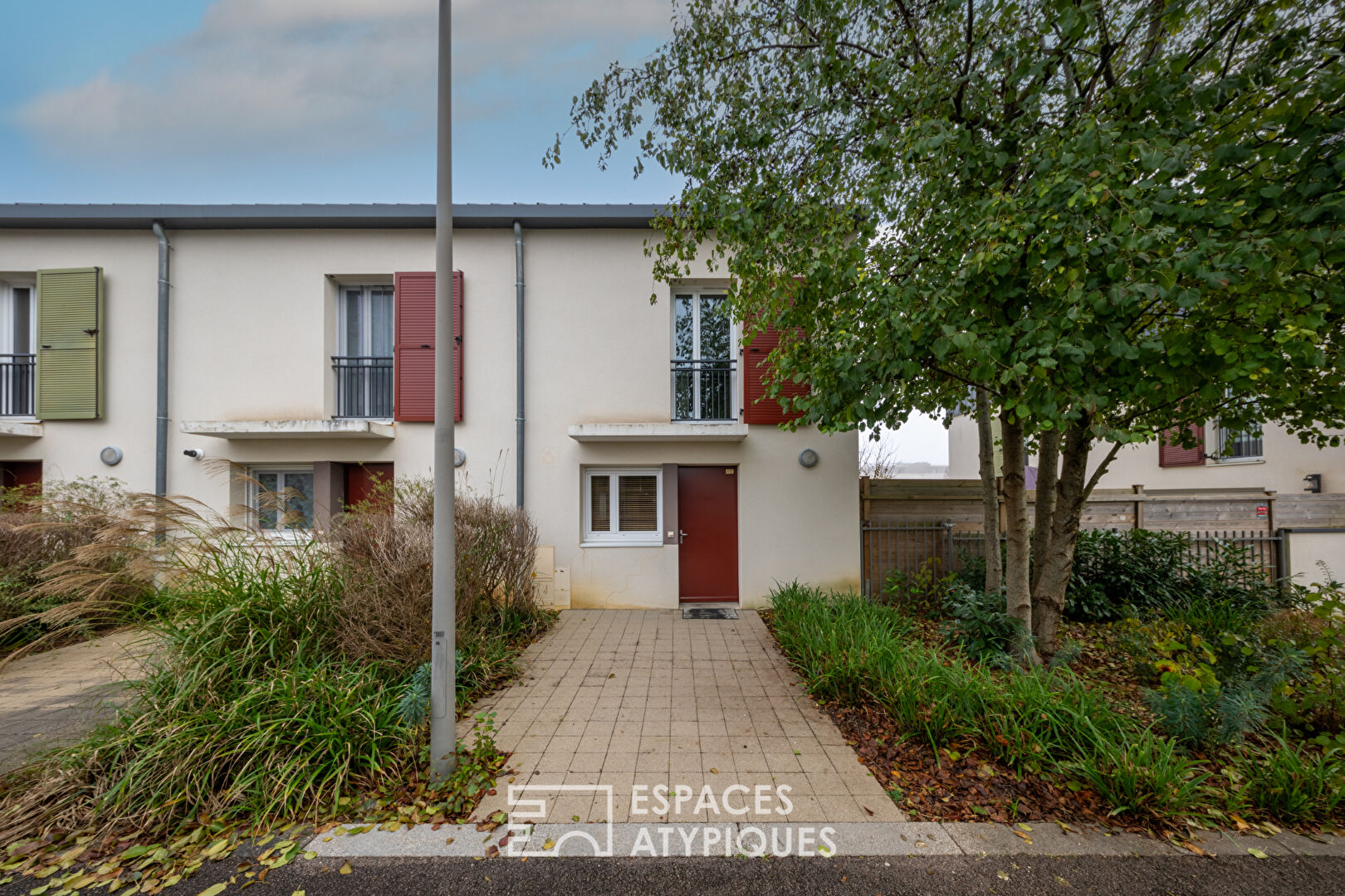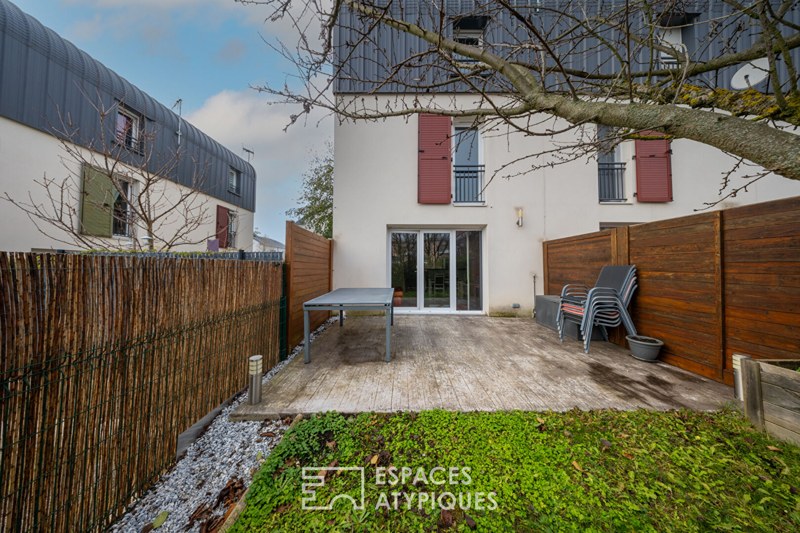 Idéalement située dans un quartier calme, à quelques minutes du CHU et de la faculté de Dijon, cette maison mitoyenne de 2009 offre un cadre de vie confortable et fonctionnel. Élevée sur trois niveaux, elle dispose d'un jardin privatif d'environ 55 m², d'une terrasse, d'un parking extérieur privatif et d'un garage. Classée DPE A/A, elle garantit une excellente performance énergétique. L'entrée s'ouvre sur une pièce de vie traversante où la lumière naturelle domine, sublimée par une large baie vitrée donnant sur la terrasse. Le séjour de 25 m² constitue un espace convivial, idéal pour les moments en famille. La cuisine aménagée et équipée, moderne et fonctionnelle, complète ce niveau ainsi qu'un espace cellier et chaufferie. Au premier étage, deux chambres offrent un espace nuit confortable, desservies par une salle de bains. Le dernier étage accueille une troisième chambre, une salle d'eau, créant un niveau intime parfaitement adapté à un espace parentale ou bureau. La grande terrasse, prolongée par le petit jardin clos, forme un véritable prolongement du séjour. Cet espace extérieur intimiste permet de profiter d'un environnement verdoyant tout en conservant une grande facilité d'entretien. La maison se situe à proximité immédiate des commerces, établissements scolaires, transports, ainsi que des pôles hospitaliers et universitaires dijonnais. Ce triplex aux volumes harmonieux, à la luminosité exceptionnelle et à l'excellente performance énergétique séduira les amateurs d'espaces alliant confort moderne et sérénité. Un bien rare à Saint-Apollinaire. DPE : Classe énergie A 66 kWhEP/m².an Classe climat A 2 kg CO/m².an Montant moyen estimé des dépenses annuelles d'énergie entre 570 et 780 euros pour un usage standard, établi à partir des prix moyens des énergies indexés sur l'année 2021. Les informations sur les risques auxquels ce bien est exposé sont disponibles sur le site Géorisques pour les zones concernées Aurélien POMARES Agent commercial EI RSAC 498989730 DIJON - 06.63.83.11.20 Aurélien POMARES (EI) Agent Commercial - Numéro RSAC : 498989730 - DIJON.