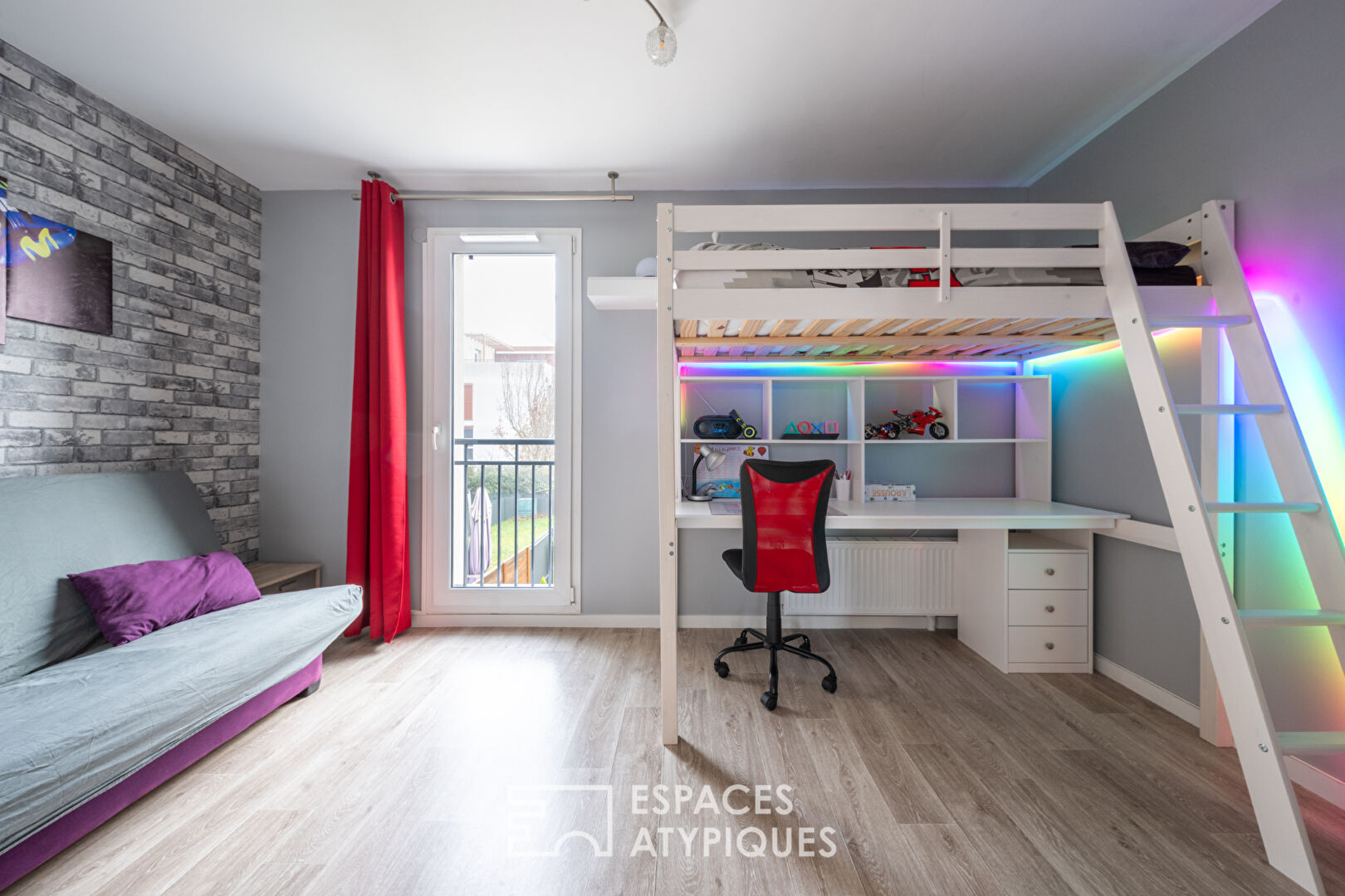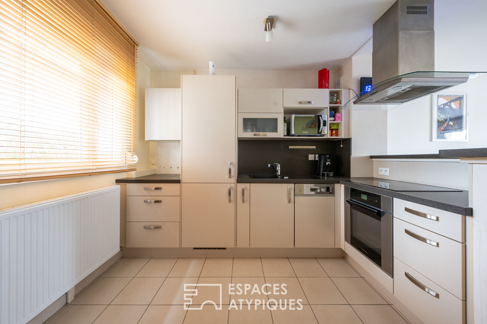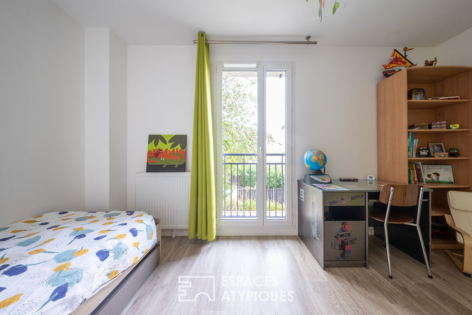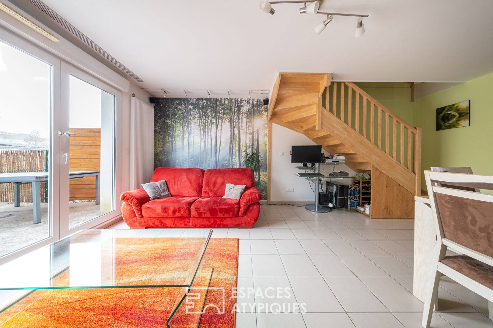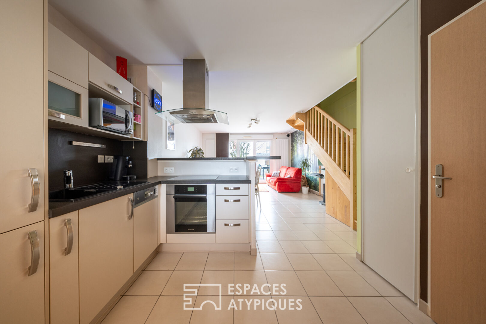 Idéalement située dans un quartier calme, à quelques minutes du CHU et de la faculté de Dijon, cette maison mitoyenne de 2009 offre un cadre de vie confortable et fonctionnel. Élevée sur trois niveaux, elle dispose d'un jardin privatif d'environ 55 m², d'une terrasse, d'un parking extérieur privatif et d'un garage. Classée DPE A/A, elle garantit une excellente performance énergétique. L'entrée s'ouvre sur une pièce de vie traversante où la lumière naturelle domine, sublimée par une large baie vitrée donnant sur la terrasse. Le séjour de 25 m² constitue un espace convivial, idéal pour les moments en famille. La cuisine aménagée et équipée, moderne et fonctionnelle, complète ce niveau ainsi qu'un espace cellier et chaufferie. Au premier étage, deux chambres offrent un espace nuit confortable, desservies par une salle de bains. Le dernier étage accueille une troisième chambre, une salle d'eau, créant un niveau intime parfaitement adapté à un espace parentale ou bureau. La grande terrasse, prolongée par le petit jardin clos, forme un véritable prolongement du séjour. Cet espace extérieur intimiste permet de profiter d'un environnement verdoyant tout en conservant une grande facilité d'entretien. La maison se situe à proximité immédiate des commerces, établissements scolaires, transports, ainsi que des pôles hospitaliers et universitaires dijonnais. Ce triplex aux volumes harmonieux, à la luminosité exceptionnelle et à l'excellente performance énergétique séduira les amateurs d'espaces alliant confort moderne et sérénité. Un bien rare à Saint-Apollinaire. DPE : Classe énergie A 66 kWhEP/m².an Classe climat A 2 kg CO/m².an Montant moyen estimé des dépenses annuelles d'énergie entre 570 et 780 euros pour un usage standard, établi à partir des prix moyens des énergies indexés sur l'année 2021. Les informations sur les risques auxquels ce bien est exposé sont disponibles sur le site Géorisques pour les zones concernées Aurélien POMARES Agent commercial EI RSAC 498989730 DIJON - 06.63.83.11.20 Aurélien POMARES (EI) Agent Commercial - Numéro RSAC : 498989730 - DIJON.