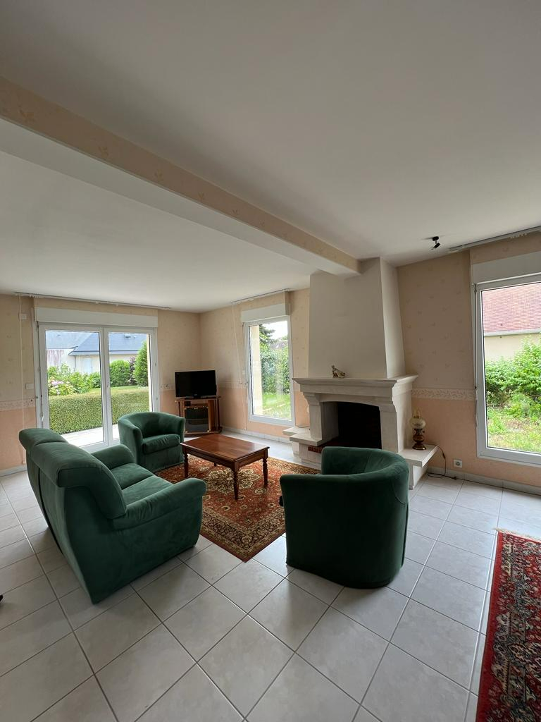 Caen Nord, Villons Les Buissons, pavillon meublé sur 2 niveaux, composé d'une entrée sur pièce à vivre, séjour salon, cuisine aménagée et équipée, arrière cuisine, une chambre, une salle d'eau et un wc. A l'étage, une mezzanine, 3 chambres, un dressing, une salle d'eau et un wc. Un double garage, sous-sol sans accès voiture, pvc et volets roulants, chauffage électrique, jardin clos et planté avec terrasse exposée Sud. Disponible le 10 novembre 2025.