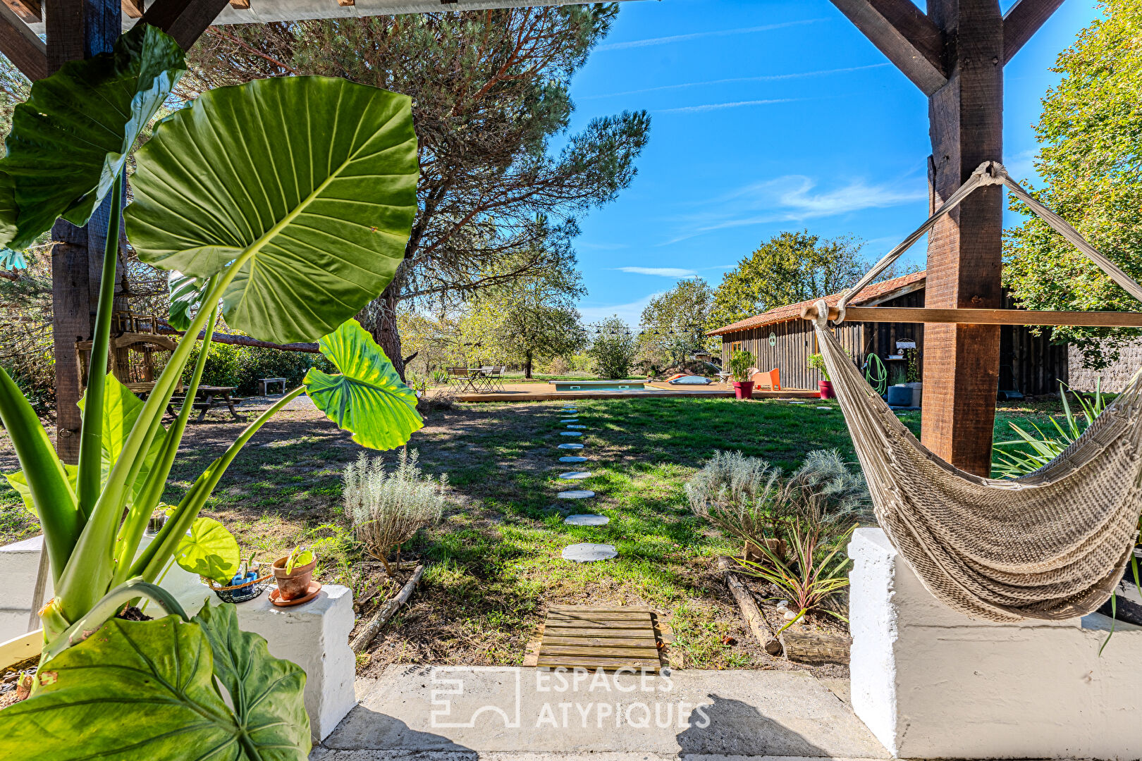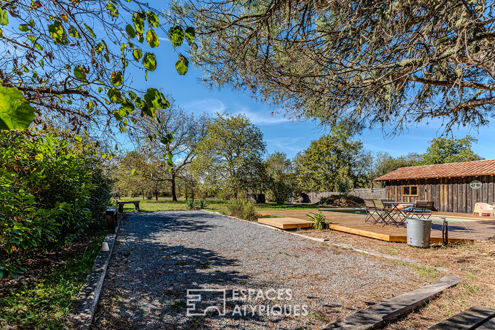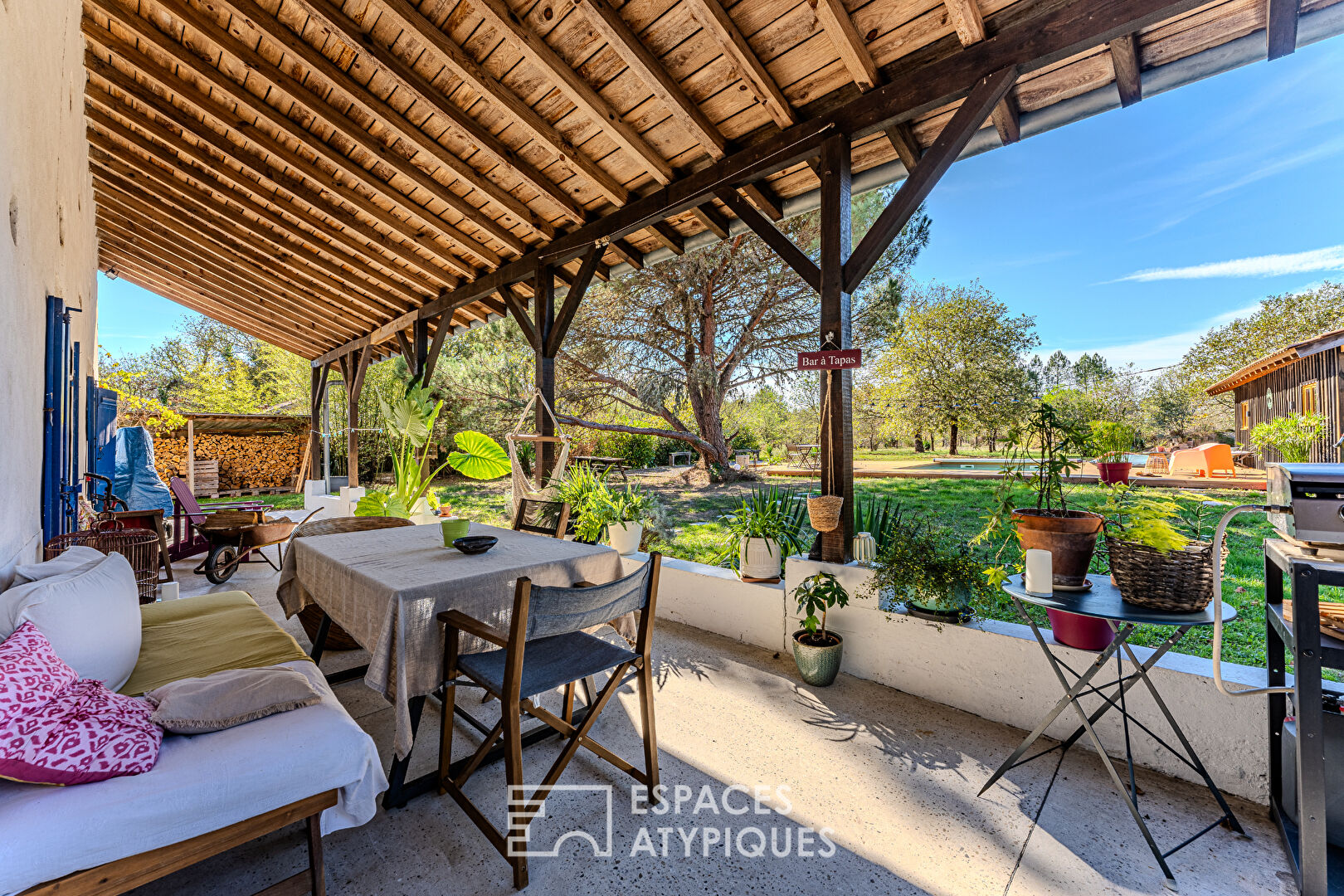 Au coeur du village paisible de Pissos, dans un environnement naturel préservé typique des Landes, cette ancienne maison de 245 m² a été entièrement rénovée dans un esprit chaleureux et authentique. Implantée sur un vaste terrain arboré de 4 000 m², elle propose des prestations soignées et des espaces de vie généreux, pensés pour le confort et la convivialité. La piscine, la grande terrasse couverte et les volumes intérieurs harmonieux en font un lieu de vie idéal pour une résidence principale ou secondaire. La maison se déploie sur deux niveaux. Le rez-de-chaussée accueille une pièce de vie de plus de 60 m² baignée de lumière, où le salon et la salle à manger se fondent dans une atmosphère douce, portée par les poutres sablées apparentes et le charme d'un poêle à bois. La cuisine ouverte s'intègre parfaitement à cet ensemble convivial. Une vaste suite parentale de plus de 30 m² complète ce niveau, offrant confort et intimité. A l'étage, un salon bureau de 63 m² et un dortoir de 30 m² laissent place à une organisation familiale ou créative, selon les envies. Une chambre supplémentaire de 18 m² bénéficie d'une belle luminosité naturelle. Chaque espace a été rénové avec soin, dans un style sobre et naturel, mettant en valeur les matériaux existants. A l'extérieur, une grande terrasse couverte prolonge la maison et invite à vivre au rythme des saisons. Le jardin arboré, soigneusement entretenu, offre des coins d'ombre et de détente, et accueille une dépendance de 50 m², idéale pour un atelier ou un espace invités. Une piscine vient parfaire ce cadre de vie, ainsi qu'un terrain de pétanque pour les soirées estivales. Le quartier est calme, à proximité des commodités du village : écoles, commerces de proximité et nature accessible à pied. Ce bien atypique séduit par son alliance réussie entre cachet de l'ancien et confort contemporain. Rare sur le marché, il s'adresse à celles et ceux en quête d'espace, de tranquillité et d'authenticité. CLASSE ÉNERGIE : E / CLASSE CLIMAT : A Montant moyen estimé des dépenses annuelles d'énergie pour un usage standard, établi à partir des prix de l'énergie de l'année 2021 : entre 5300 euros et 7250 euros. Contact : Arnaud Schwizguebel tél : 06.84.25.71.00 RSAC : 941 363 046 Mont-de-Marsan ARNAUD SCHWIZGUEBEL (EI) Agent Commercial - Numéro RSAC : 941363046 - Mont-de-Marsan.