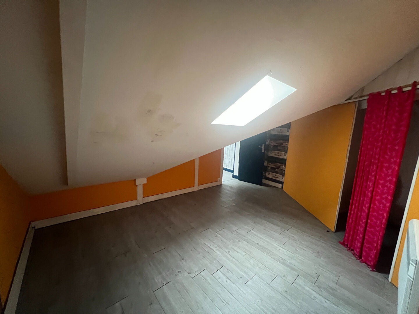 Maison ancienne en centre ville comprenant entrée séjour, cuisine équipée, salle d'eau avec wc,à l'étage 2 chambres mansardées,wc,cave,cour . A SAISIR !!!