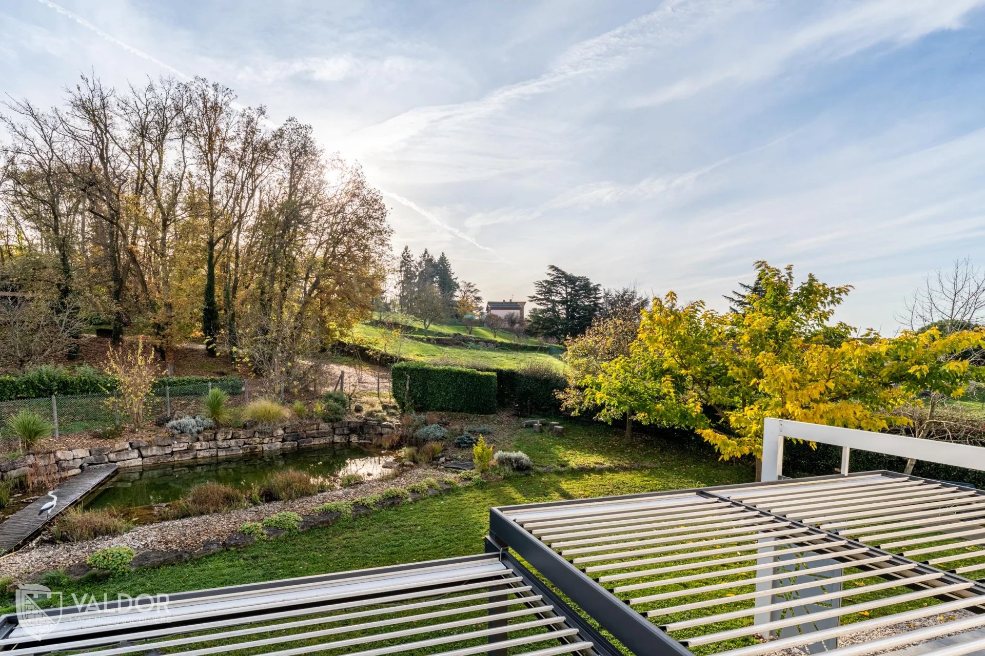 L'espace loisir extérieur, affranchi de tous vis-à-vis, est composé d'un jardin paysager et agrémenté d'une piscine naturelle ou bassin de baignade écologique, à contempler depuis les terrasses sud-est ombragées par 2 pergolas bioclimatiques, dans un environnement aussi calme que luxuriant.