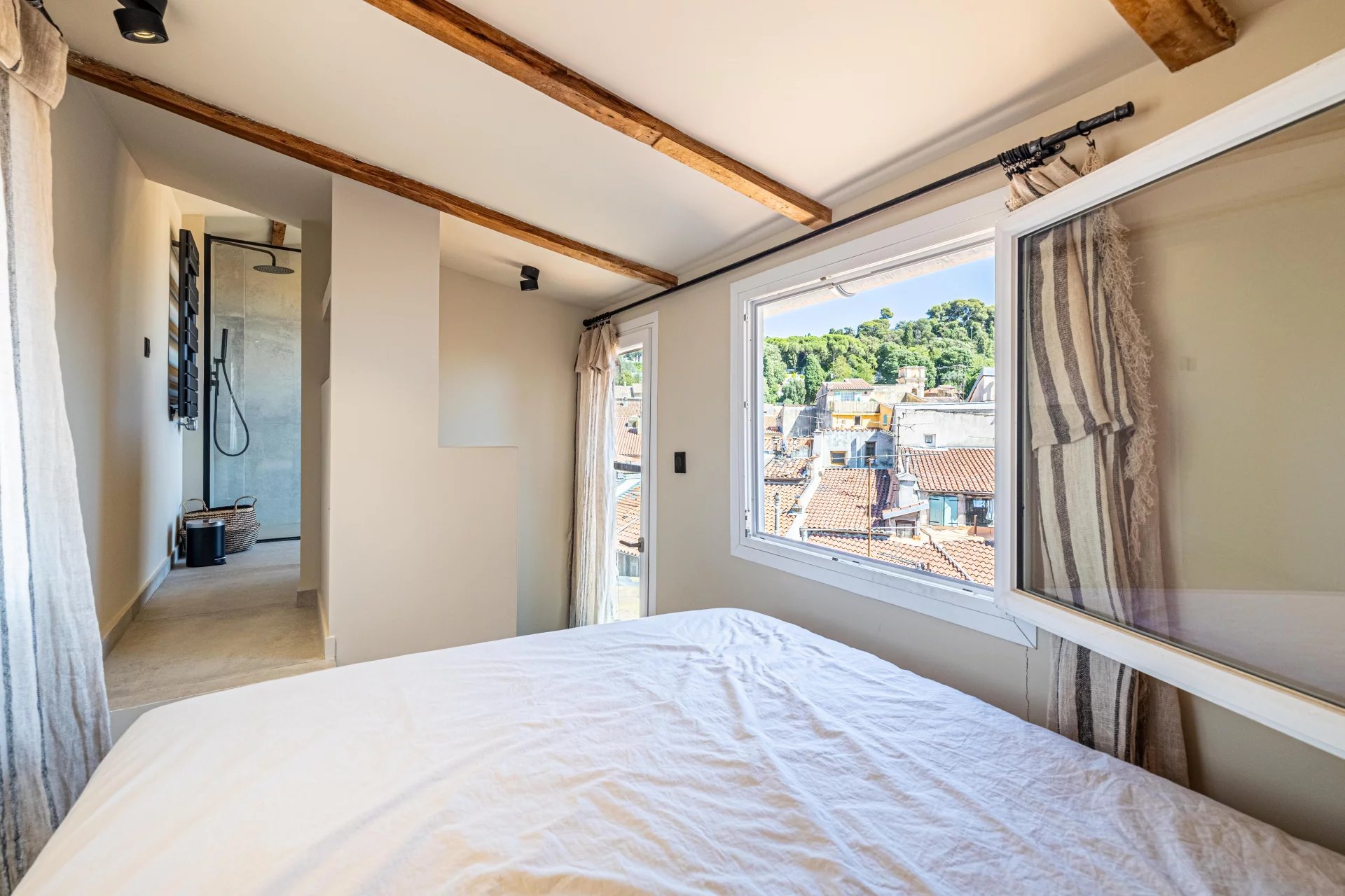 // Nizza - Vieux Nice - Rue du Collet // Nel cuore storico della Vieux Nice, venite a scoprire questo magnifico trilocale duplex, completamente ristrutturato nel 2022 con materiali di qualità e gusto, che unisce il fascino del vecchio mondo ai comfort moderni. Situato al 6° e ultimo piano (senza ascensore) di un edificio ben tenuto, questo luminoso appartamento offre una vista ininterrotta sui tetti, sul mare e sulla collina dello Château, in un ambiente unico e autentico. Disposizione : Primo piano: Ampio soggiorno/sala da pranzo con cucina a vista completamente attrezzata. Un ufficio ideale per il telelavoro o la lettura Una camera da letto con bagno privato con doccia WC separato Secondo piano : Una seconda camera da letto con bagno privato con doccia Un'ulteriore doccia separata Questa rara proprietà, calda e funzionale, è un'opportunità ideale come residenza principale, pied-à-terre o investimento locativo. Una posizione ricercata, a breve distanza da negozi, ristoranti, spiagge e collegamenti di trasporto. Vi innamorerete sicuramente! Proprietà soggetta a comproprietà: XX lotti principali Costi di gestione annuali: euro Tassa di proprietà: 1.135 euro Spese a carico del venditore Per quanto a nostra conoscenza, non ci sono procedimenti legali in corso. Il rapporto ERRIAL sui rischi a cui è esposto questo immobile è disponibile cliccando sul link: https://errial.georisques.gouv.fr