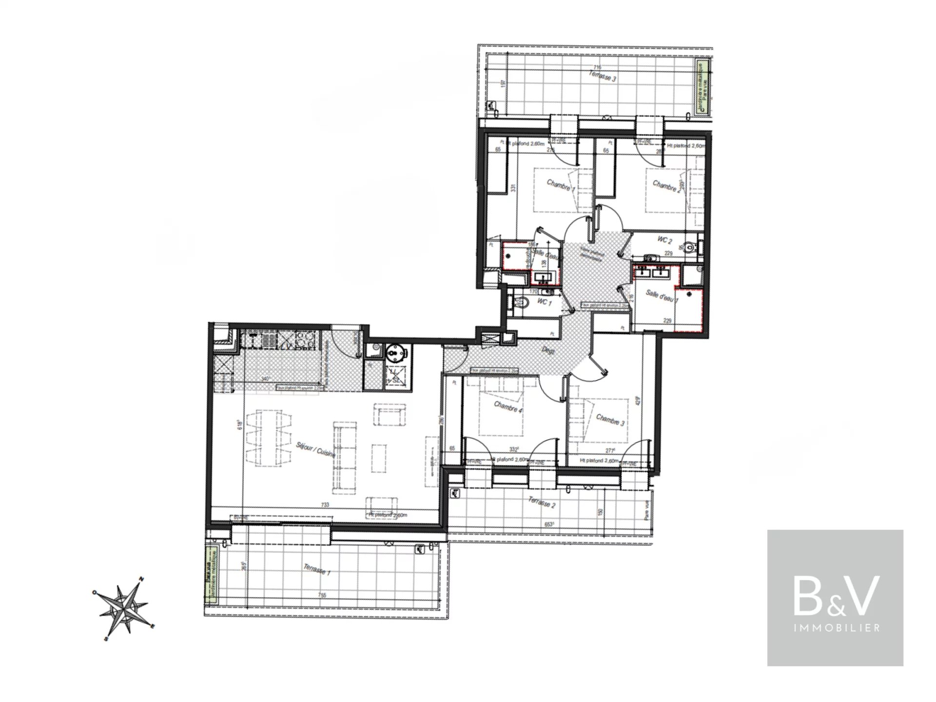 Situato in posizione ideale nel cuore di Anglet, in una delle zone più ricercate della Costa Basca, questo splendido appartamento di 5 locali e 110 m² gode di una posizione privilegiata. A pochi passi da scuole, negozi e mezzi di trasporto, è possibile raggiungere in pochi minuti il BAB e le spiagge di Anglet, godendo di un ambiente centrale e pratico. Situato al 4°ᵉ e ultimo piano di una residenza di lusso sicura e dotata di ascensore, l'appartamento gode di un'esposizione a sud e di magnifiche terrazze che ampliano gli spazi abitativi. Il soggiorno di 43 m² con cucina a vista, inondato di luce grazie alle grandi vetrate in alluminio, si apre su una prima terrazza di 17 m², ideale per approfittare del clima privilegiato della regione. La zona notte, disposta intorno a due ulteriori terrazze di 15 m² e 11 m², comprende quattro camere da letto con armadi a muro, tra cui una suite padronale con bagno privato con doccia. Un secondo bagno con doccia e due WC separati garantiscono un comfort ottimale. Le dotazioni sono degne della posizione: aria condizionata, termostato collegato, ventilazione a flusso singolo, tapparelle elettriche, infissi in alluminio con doppi vetri... tutto ciò garantisce benessere, comfort termico e tranquillità acustica. Infine, due garage al piano interrato completano questa proprietà rara nel settore. Prezzo: 840.000 euro ECD: A
