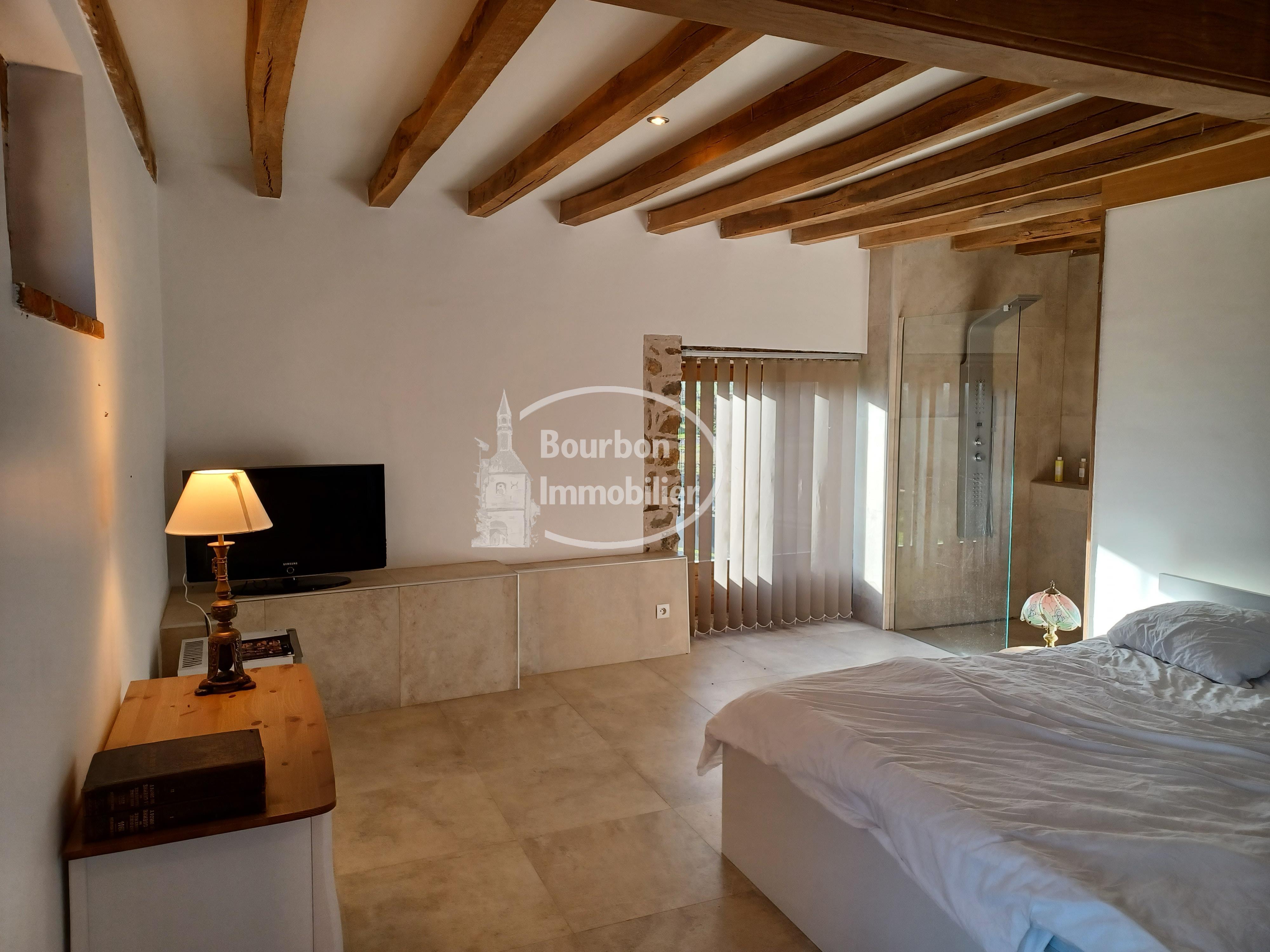 L'agence BOURBON LANCY IMMOBILIER (zéro six quatre vingt sept trente quatre cinquante sept soixante douze) vous propose à CHALMOUX (10 minutes de BOURBON-LANCY 71140) exceptionnelle demeure rural alliant caractère et modernité. Espace de vie avec mezzanine, 2 chambres, 1 chambre avec salle de douche/wc, 1 salle de bain/wc. Dortoir sous combles. Chauffage au sol. Terrasse couverte. 1,5 Ha de terrain attenant. Calme et belle vue. 310000 € net vendeur+17000 € de frais d'agence = 327000 € FAI