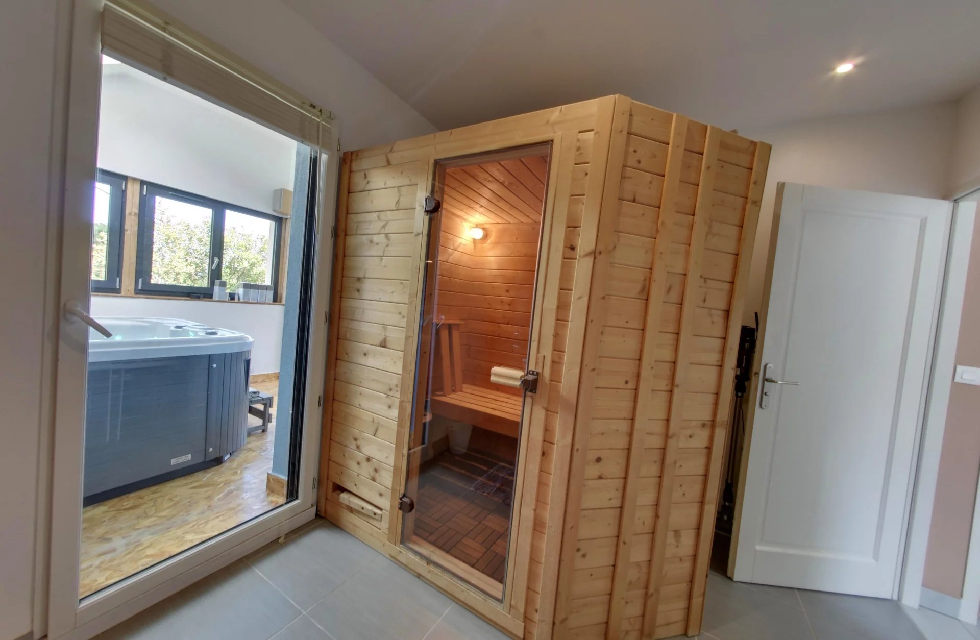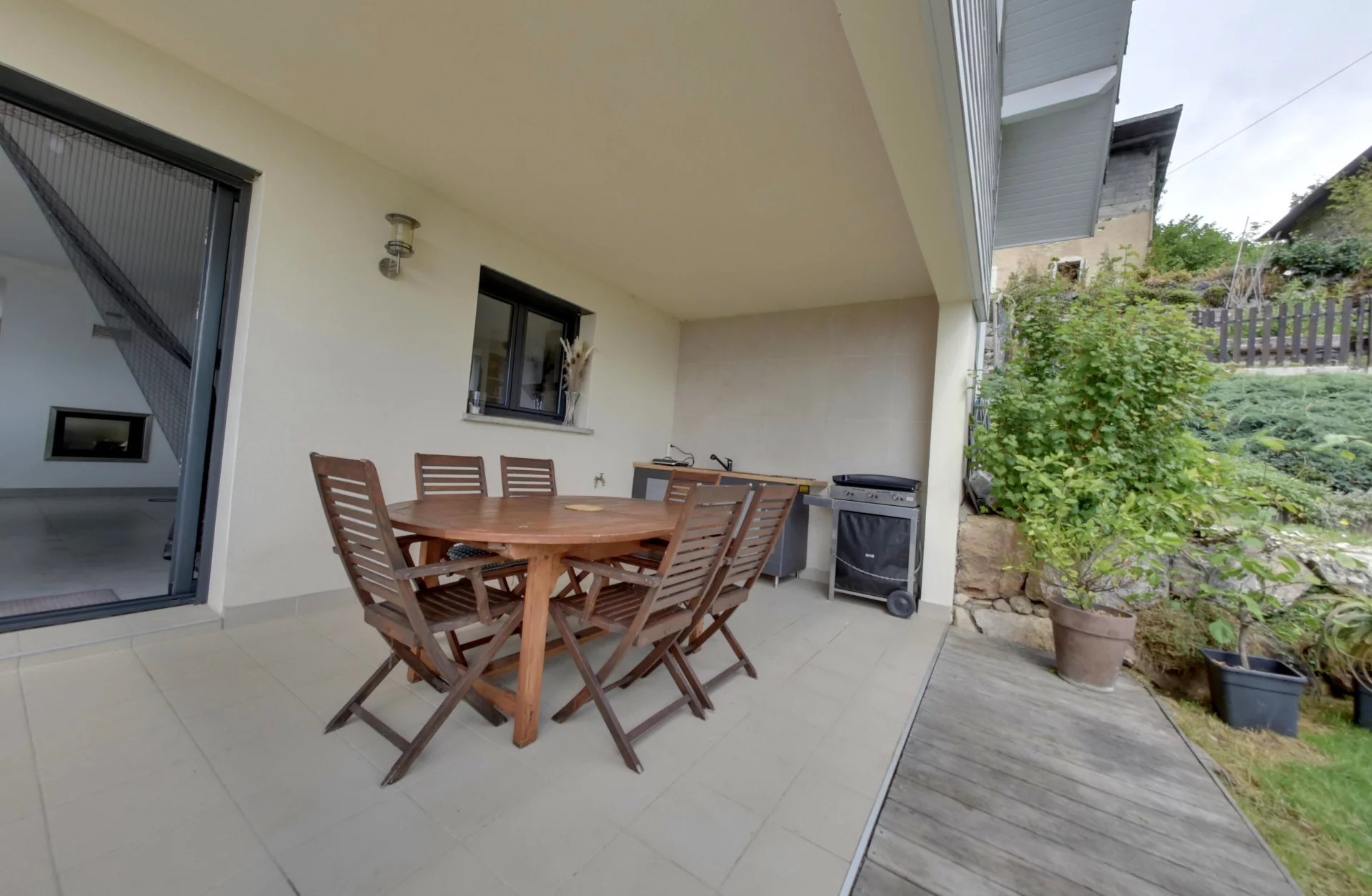 Villa tout confort sur 1600m terrain aménagé en terrasse au calme avec une vue exceptionnelle plein sud, idéal pour une famille accueillant un proche avec son appartement indépendant au rez-de-chaussée donnant sur un jardin, la maison principale, est composée d'un sejour avec cuisine et d'un salon cosy, l'espace de vie donne sur une terrasse couverte équipée avec cuisine d'été, à l'étage 3 chambres (dont une parentale avec douche) profitez du sauna toute l'année et de son jaccuzzi haut gamme sur la terrasse du dernier étage, idéal pour le télétravail (2 connexions fibre) en hivers ne quittez pas les talons grâce au grand garage + possibilité 3 places stationnement sans gène, écologique et économique sa conception en 2012 visé le confort et la qualité de vie, grâce à une excellente isolation thermique, françoise 06 50 68 68 95