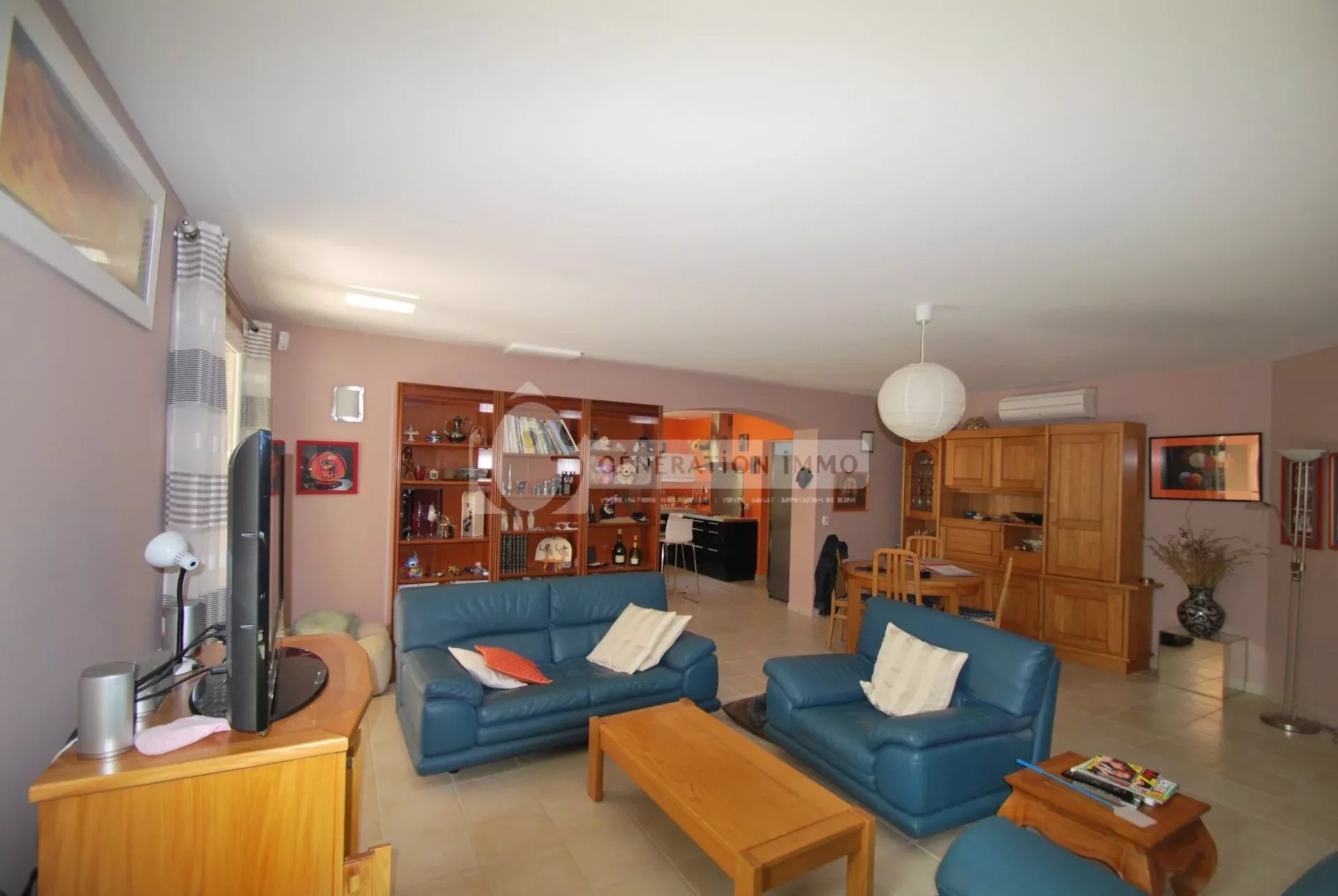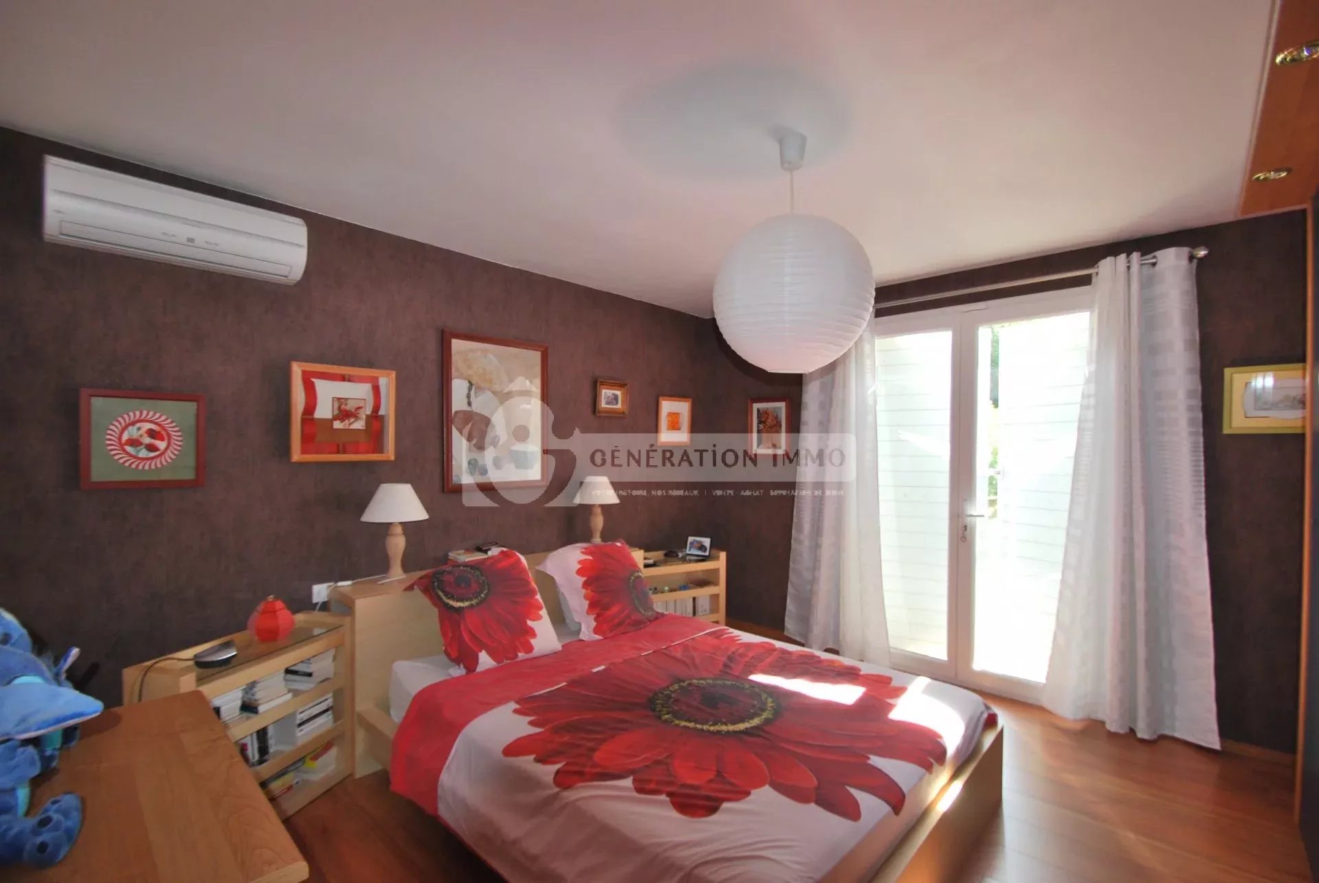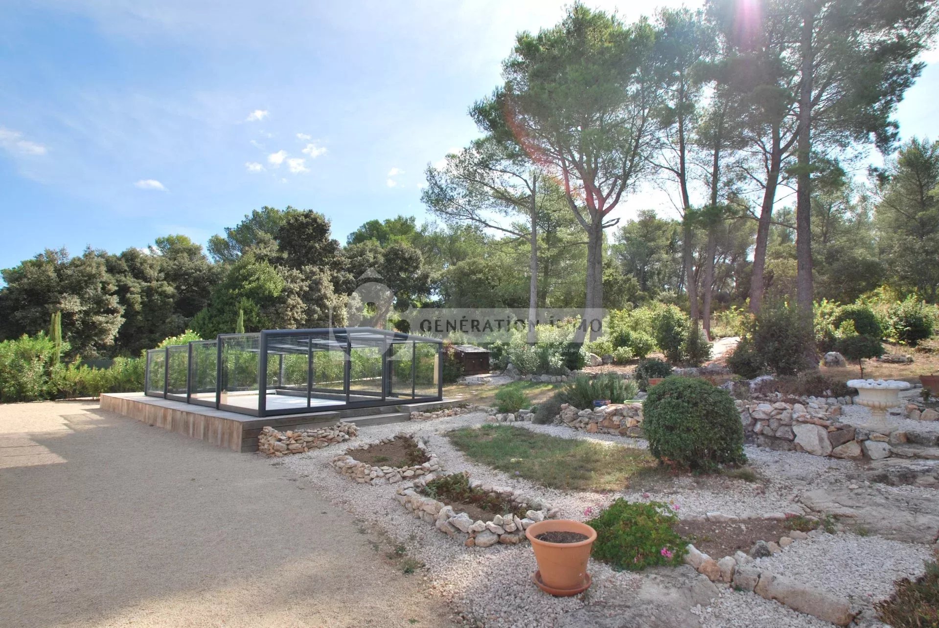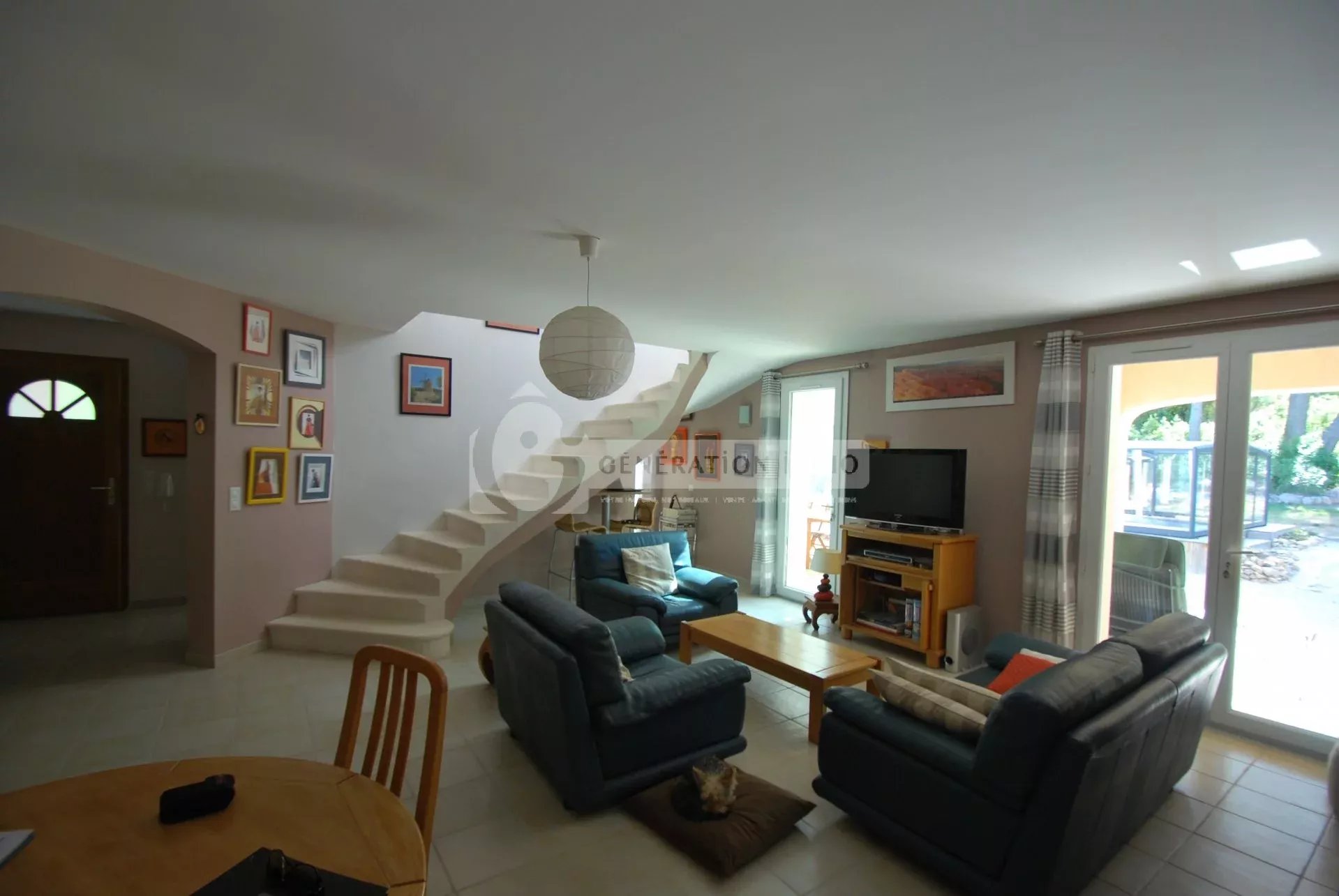 Au coeur du village, dans un environnement exceptionnel, maison de 151 m² habitables plus véranda de 20 m² et double garage de 38m2 sur une parcelle paysagée de 2173 m². L'habitation se compose au rez de chaussée d'un grand séjour orienté Sud de 35m², une cuisine ouverte et aménagée de 18 m², donnant sur une belle terrasse, de 2 chambres, dont une suite parentale. A l'étage, un grand bureau, une chambre et une salle d'eau. Vous pourrez apprécier la piscine couverte et le magnifique jardin planté de pins et de plantes méditerranéennes. Beaux volumes, à visiter rapidement !