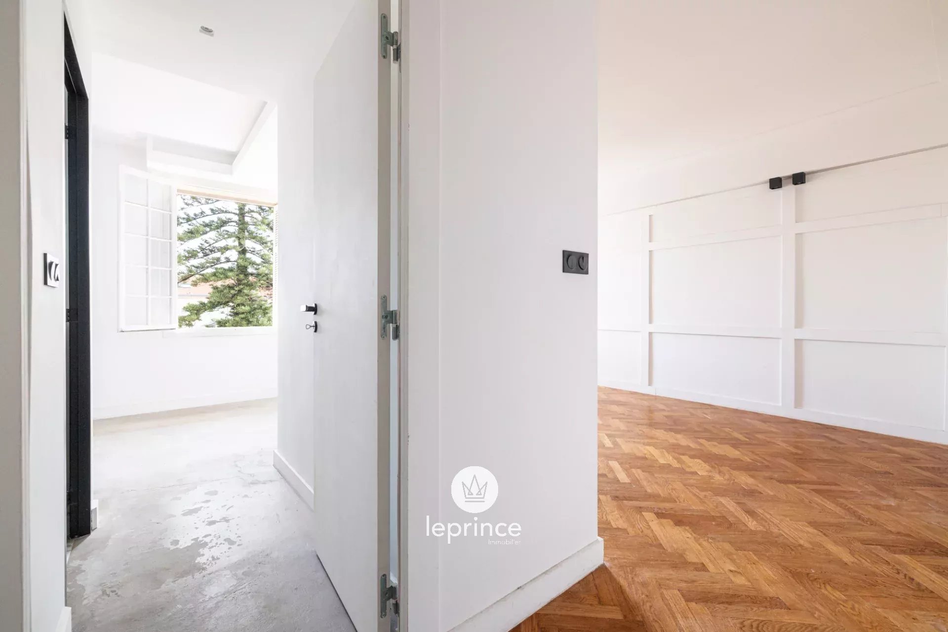 Entrée, Vaste séjour lumineux exposé plein sud, sans vis-à-vis, avec belle hauteur sous plafond et parquet à bâtons rompus.