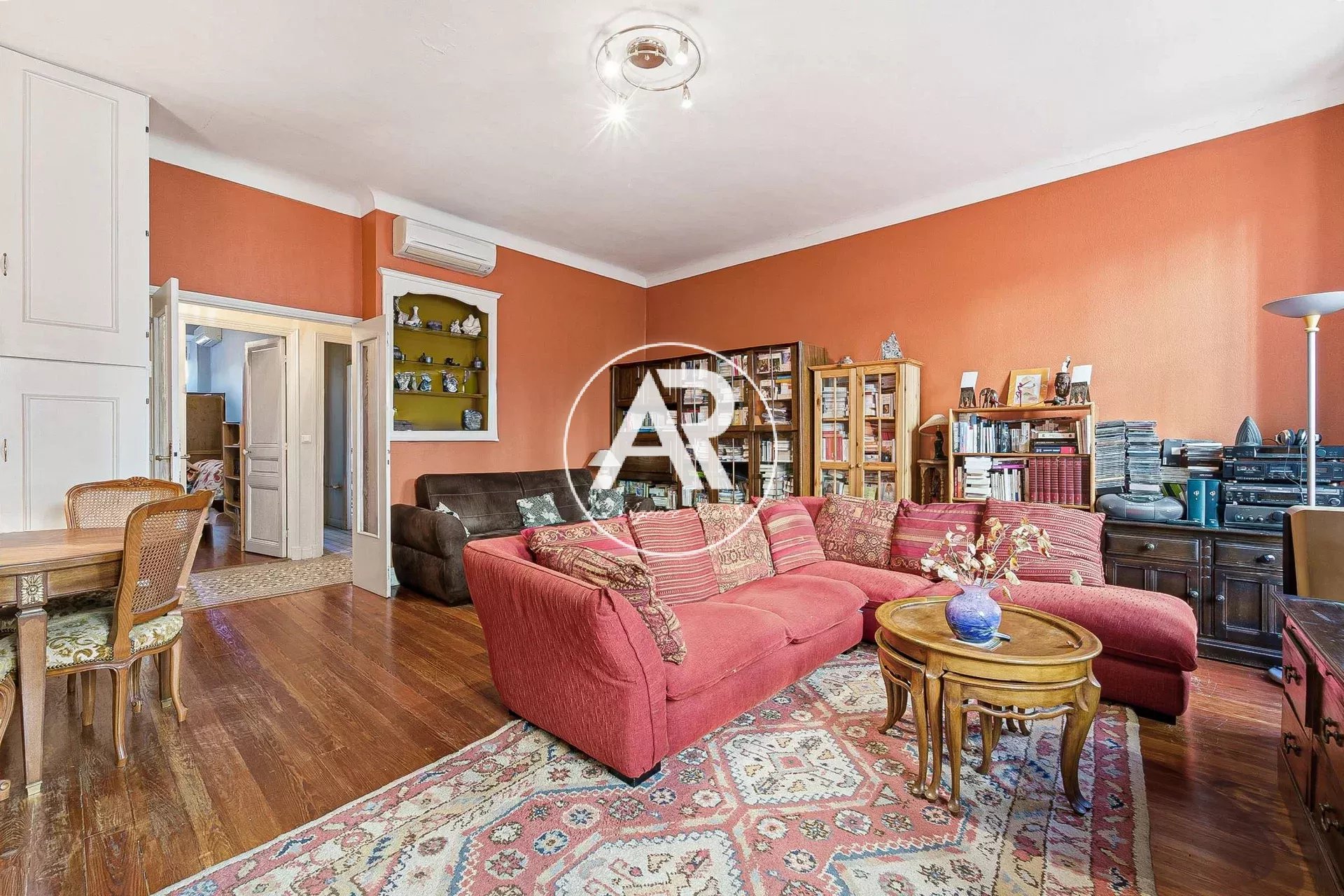 Nice Carré d’Or – posizione eccezionale a pochi metri dalla Promenade des Anglais, a 200 m dal mare, vicino a negozi, ristoranti e tram. Ampio bilocale traversante di 64 m² in un elegante edificio del 1911. Ingresso con armadi, soggiorno luminoso di 30 m² esposto a ovest, camera tranquilla, bagno con doccia, WC separato con finestra e cucina indipendente con bow window. Ampia cantina compresa. Possibilità di trasformazione in trilocale. Doppi vetri, riscaldamento/clima individuale, spese ridotte, nessun lavoro previsto. Perfetto come prima o seconda casa, investimento locativo misto o studio professionale.