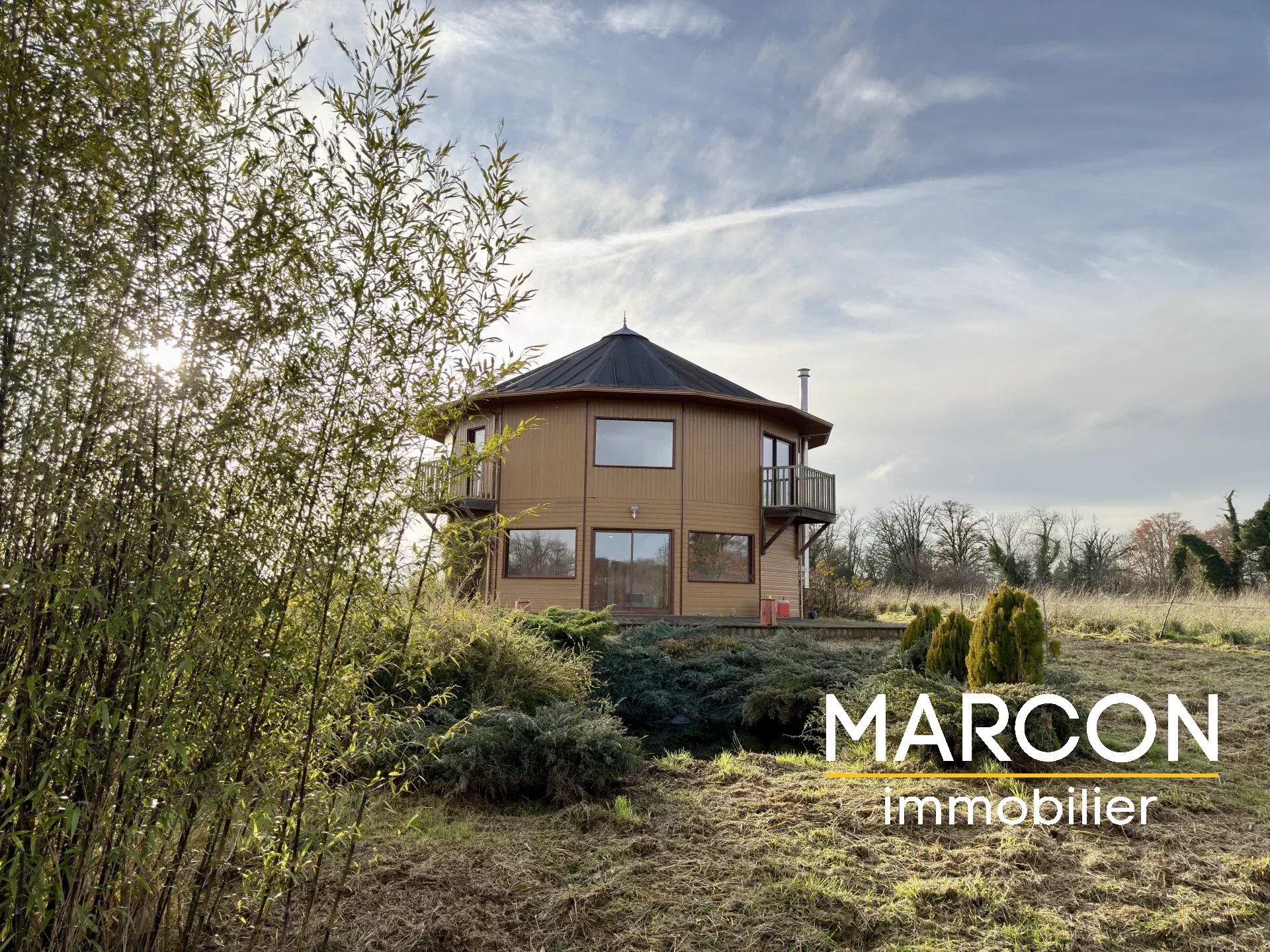 REF 89222. A 10 min de Gouzon, Maison atypique en ossature bois, construite en 2015, implantée sur un terrain attenant de 9,2 hectares dans un environnement très calme et sans vis-à-vis.