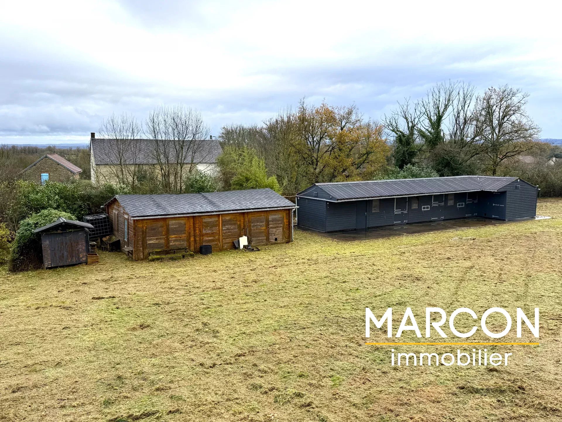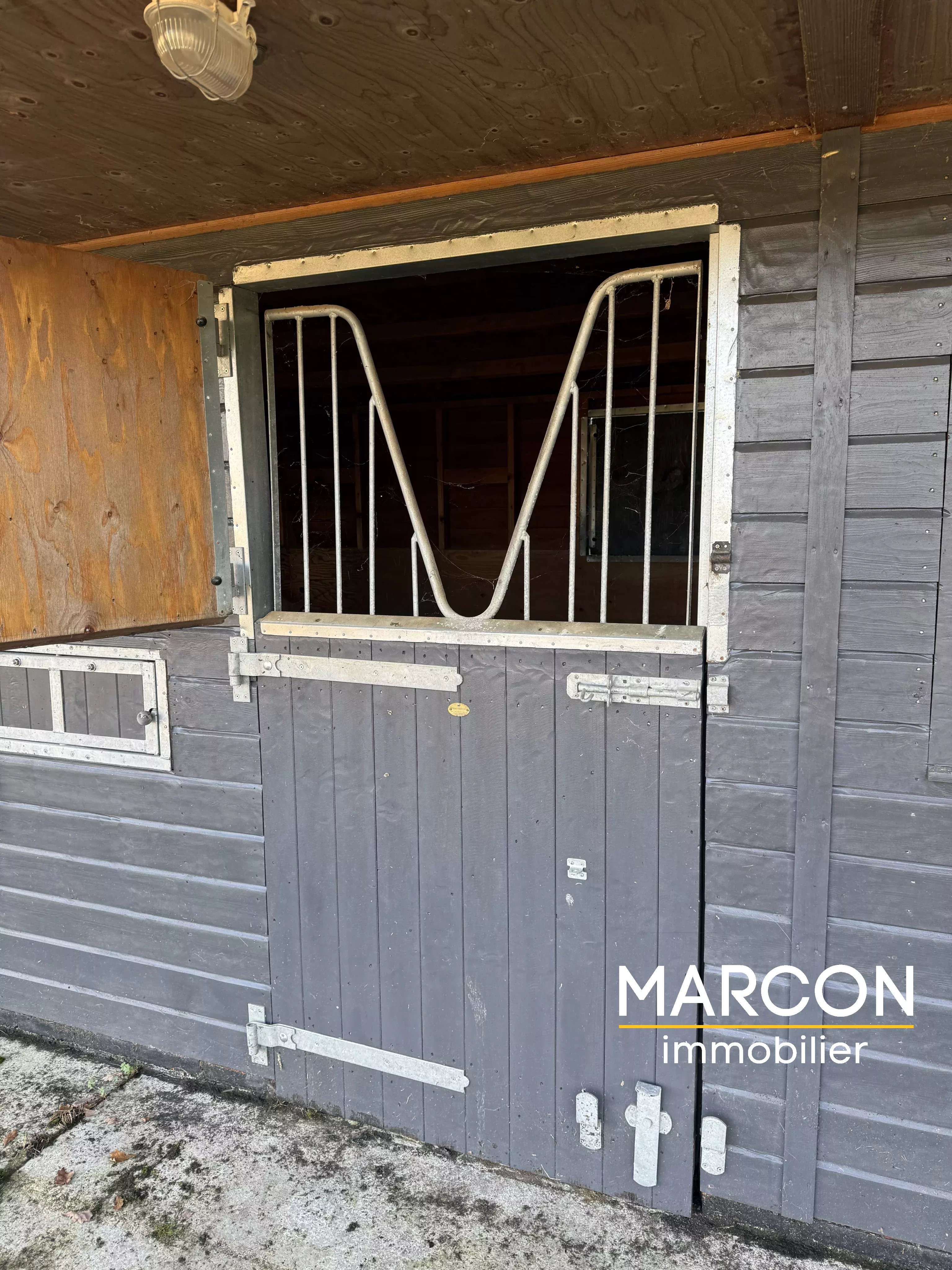 Une grange indépendante de 120 m², ainsi que plusieurs dépendances en bois utilisées notamment en box (3 de 12 m² chacun) pour chevaux, complètent l’ensemble. Un petit étang se trouve également sur la propriété.
