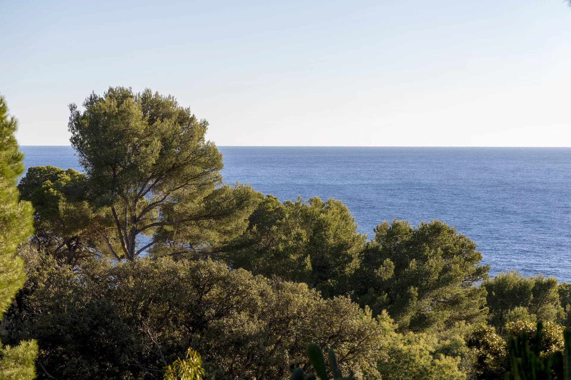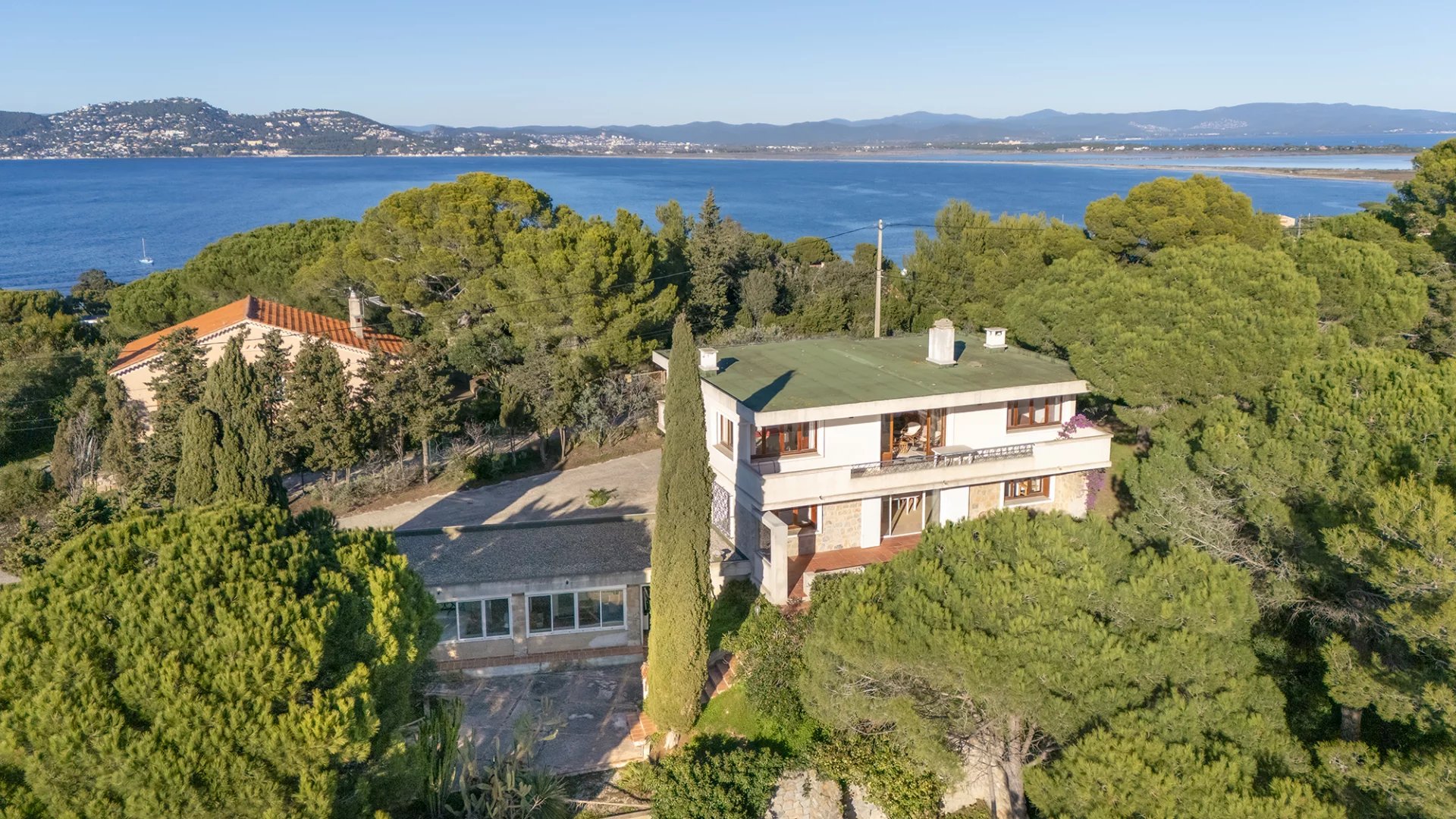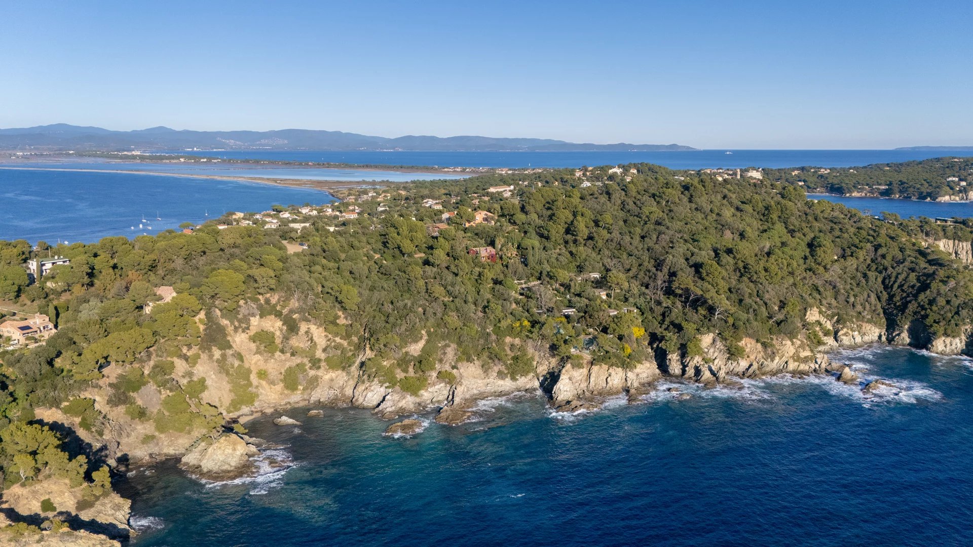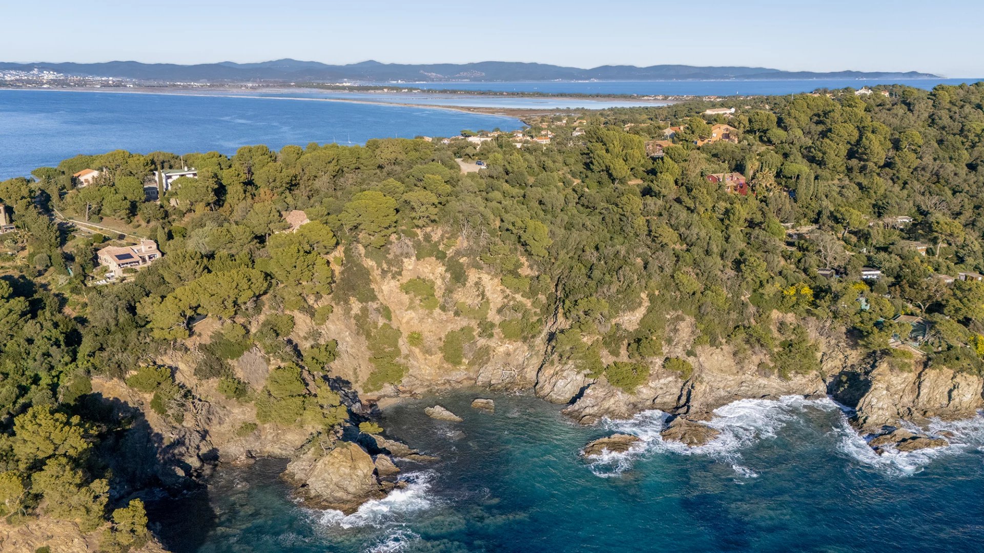 La propriété est édifiée sur une merveilleuse parcelle de 5.868 m2 en deuxième ligne mer sur la façade Sud de la presqu’île et dans le secteur le plus sauvage.