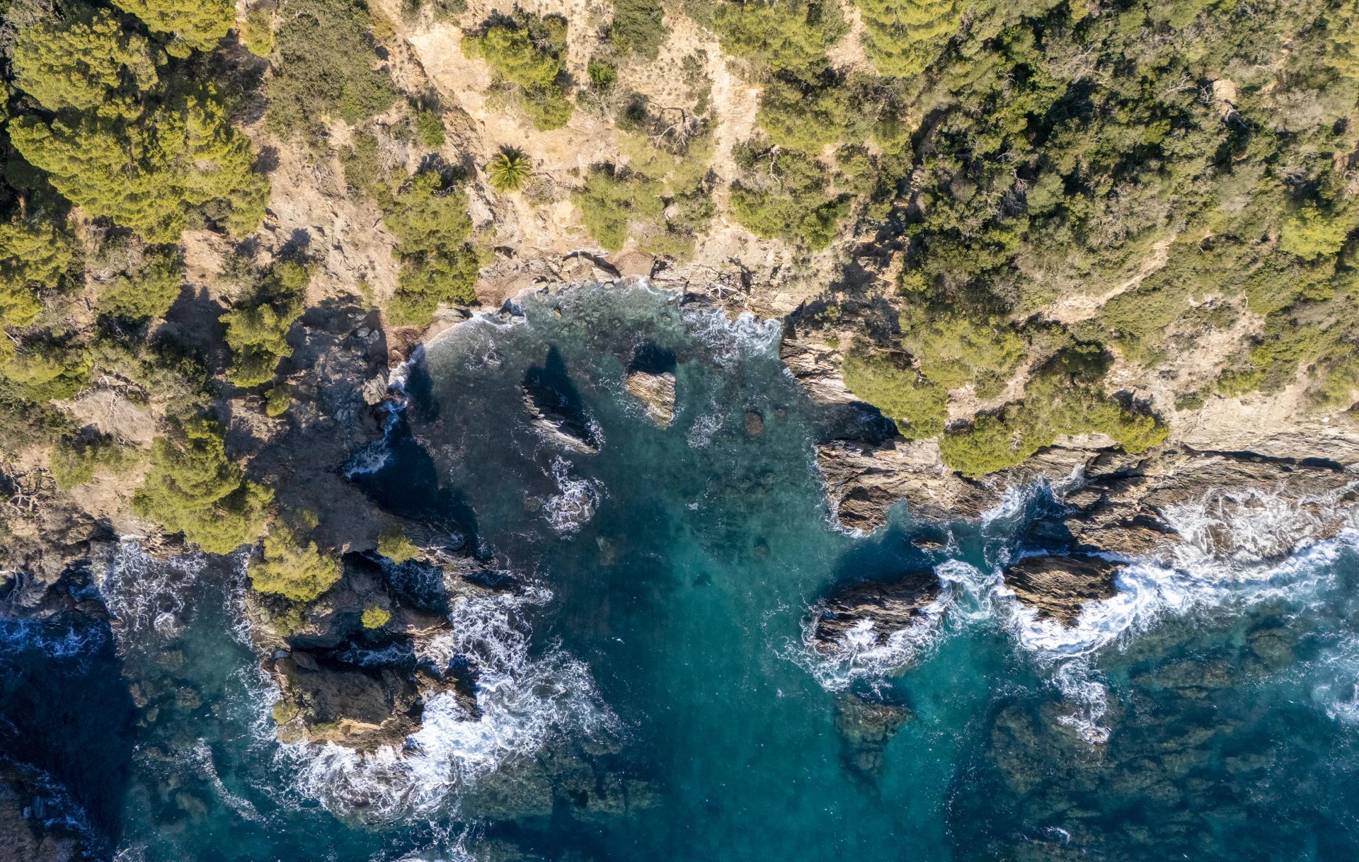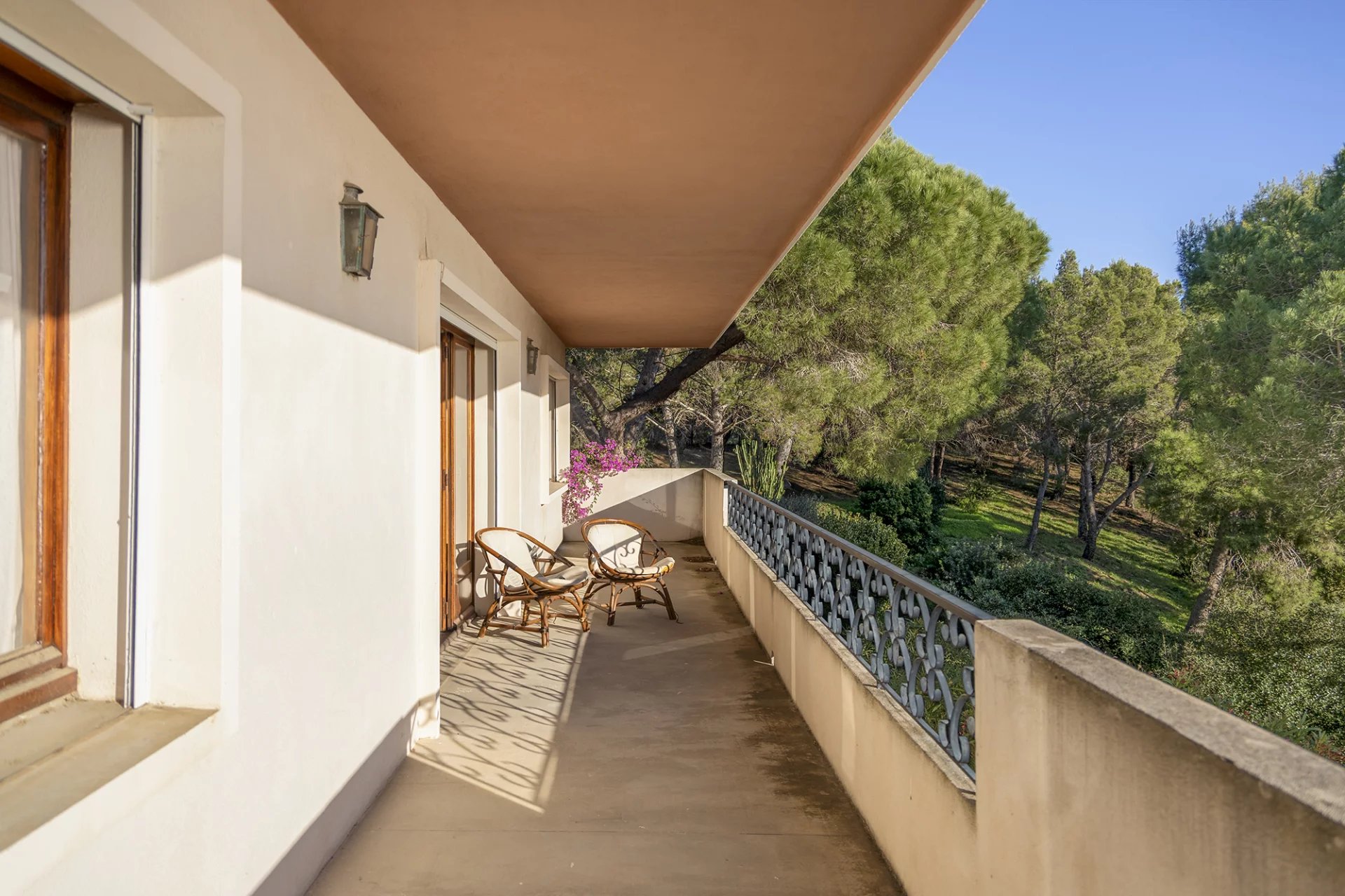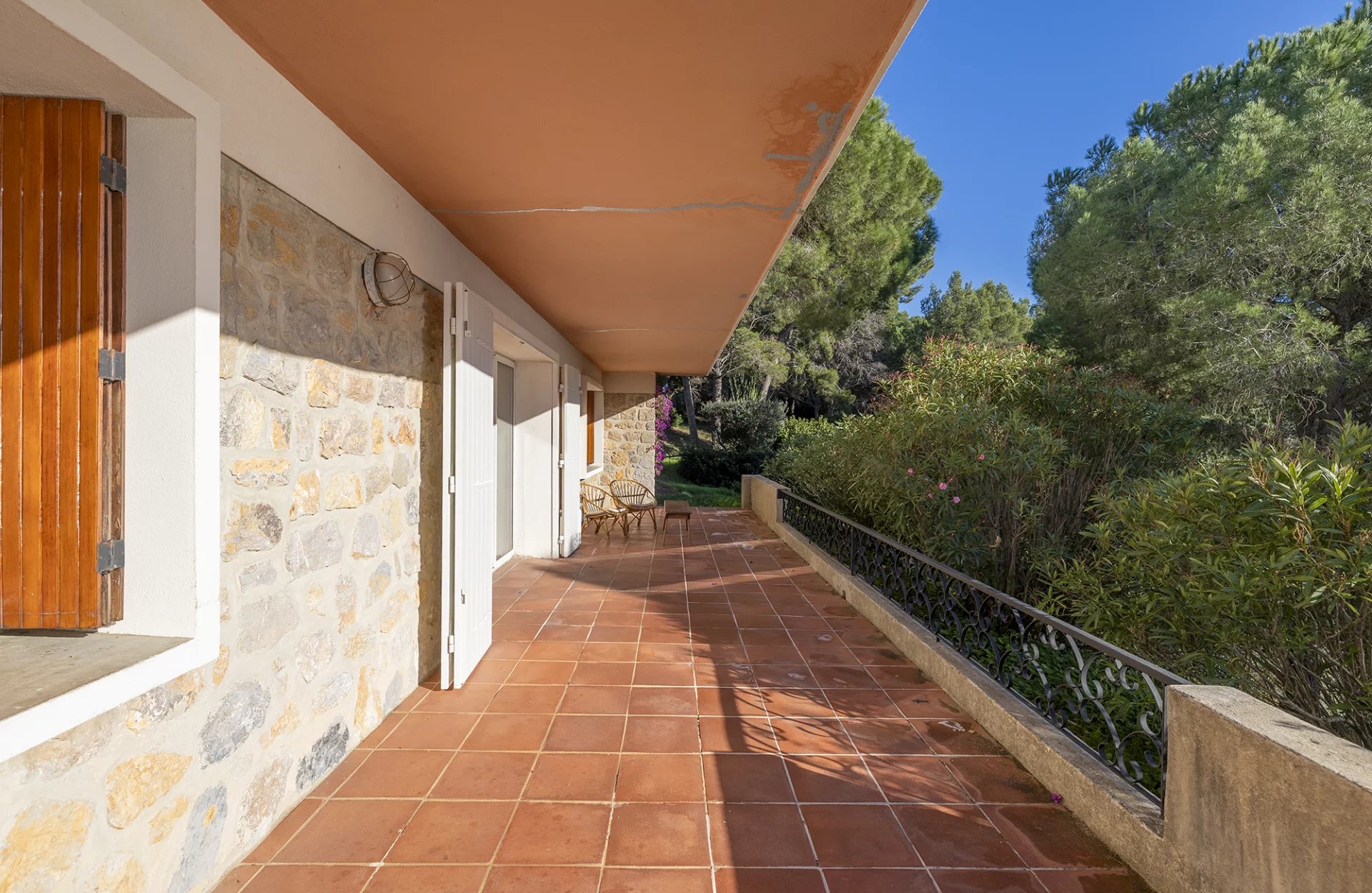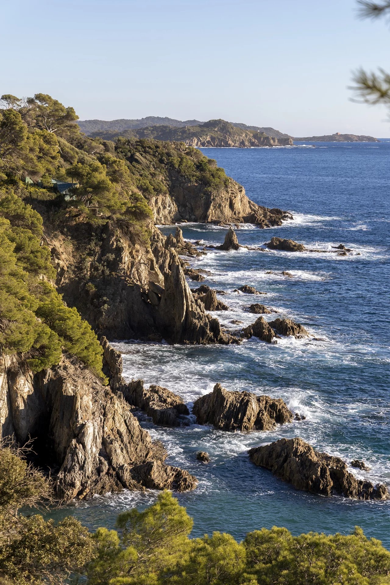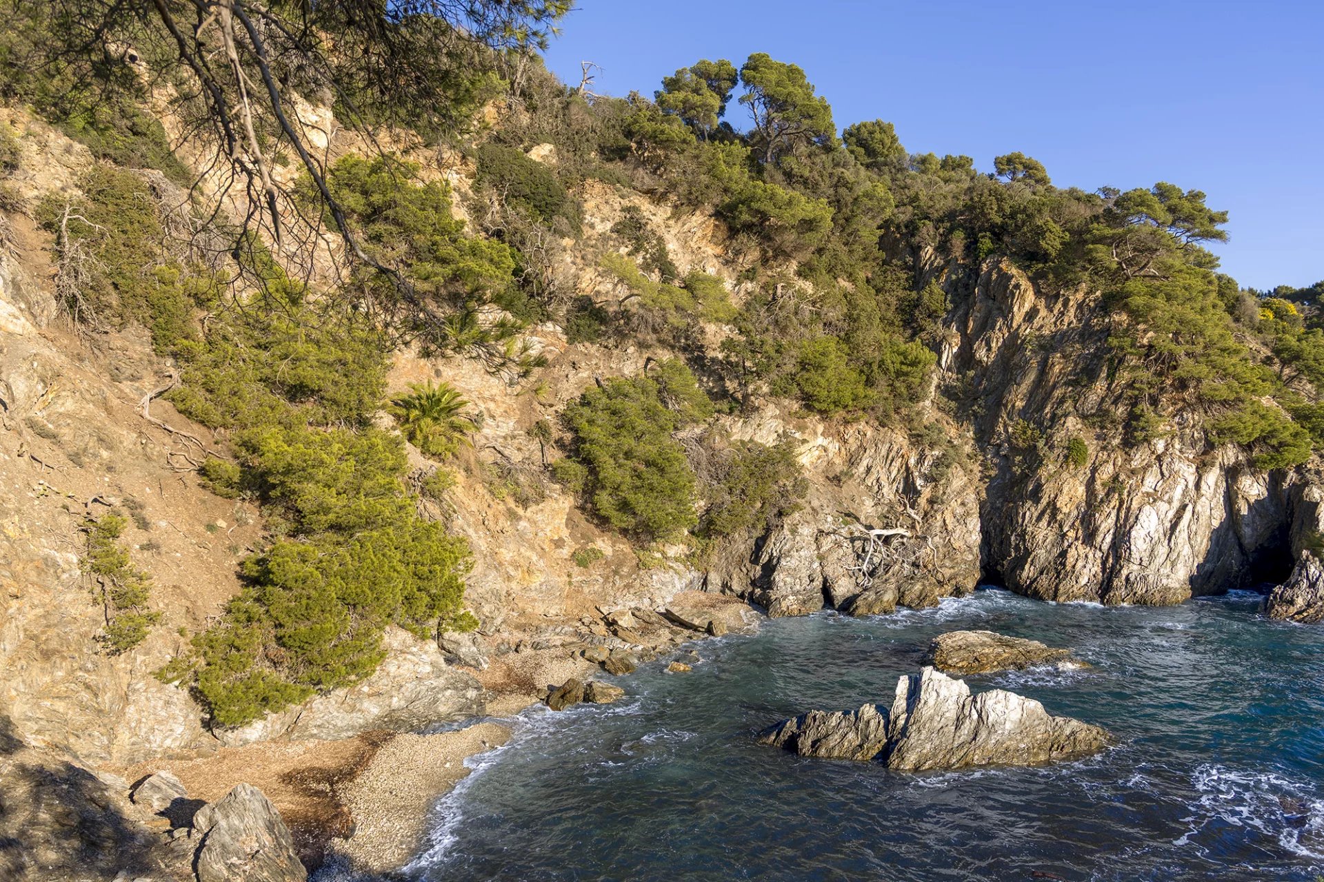 La propriété est édifiée sur une merveilleuse parcelle de 5.868 m2 en deuxième ligne mer sur la façade Sud de la presqu’île et dans le secteur le plus sauvage.