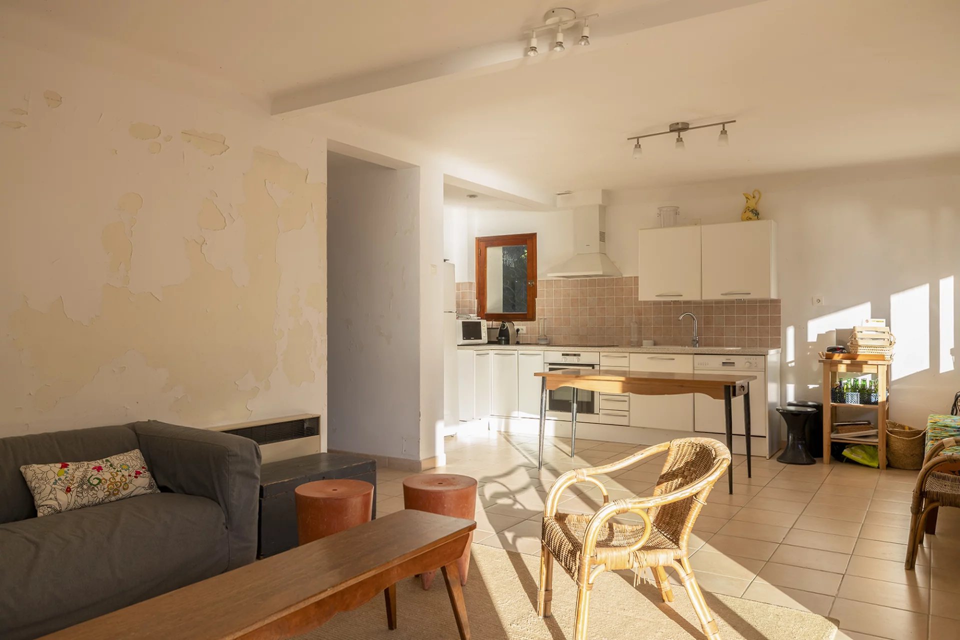 La maison principale se complète d’une dépendance de plain-pieds d’environ 50 m2 avec trois chambres et une salle de bains.