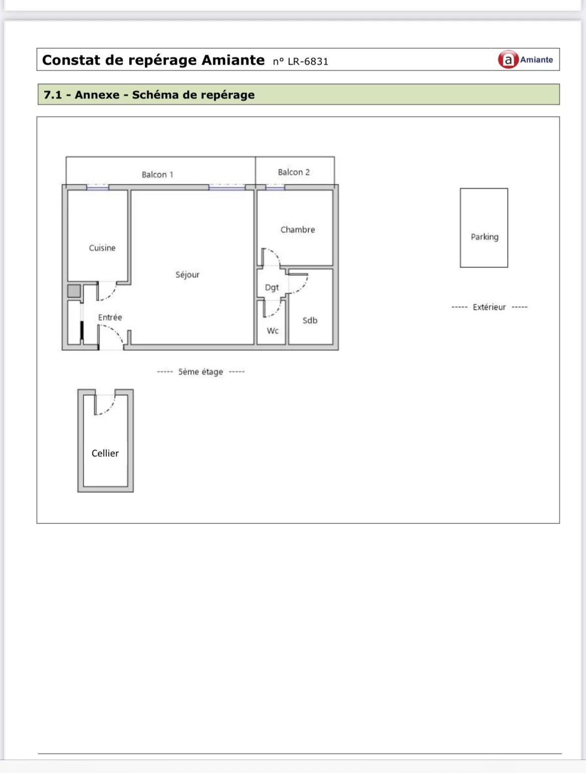 Construction de 1974, de type 2 pour 45m, au 5°/10 étages avec ascenseur, 2 loggias, cellier aménagé de 3m sur palier juste en face, parking aérien privatif,