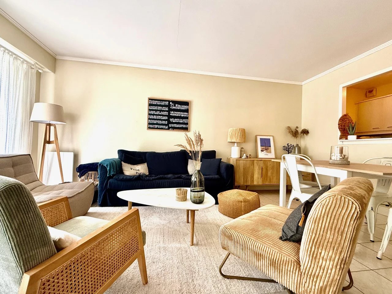 DANS UNE AVENUE CALME ET RESIDENTIELLE, A DEUX PAS DES COMMERCES ET 500 M DE LA PLAGE, BEL APPARTEMENT TRAVERSANT DE 70 M2 EN REZ-DE-JARDIN D'UN IMMEUBLE SECURISE DES ANNEES 2000. ENTREE AVEC PLACARDS, VASTE SEJOUR OUVRANT SUR TERRASSE D'ENVIRON 12 M2 ORIENTEE SUD, CUISINE OUVERTE, DEUX BELLES CHAMBRES, SALLE DE BAINS, WC. STATIONNEMENT COUVERT EN SOUS-SOL ET PARKING EXTERIEUR. BIEN SOUMIS A COPROPRIETE - PAS DE PROCEDURE EN COURS - CHARGES 1576€/AN.