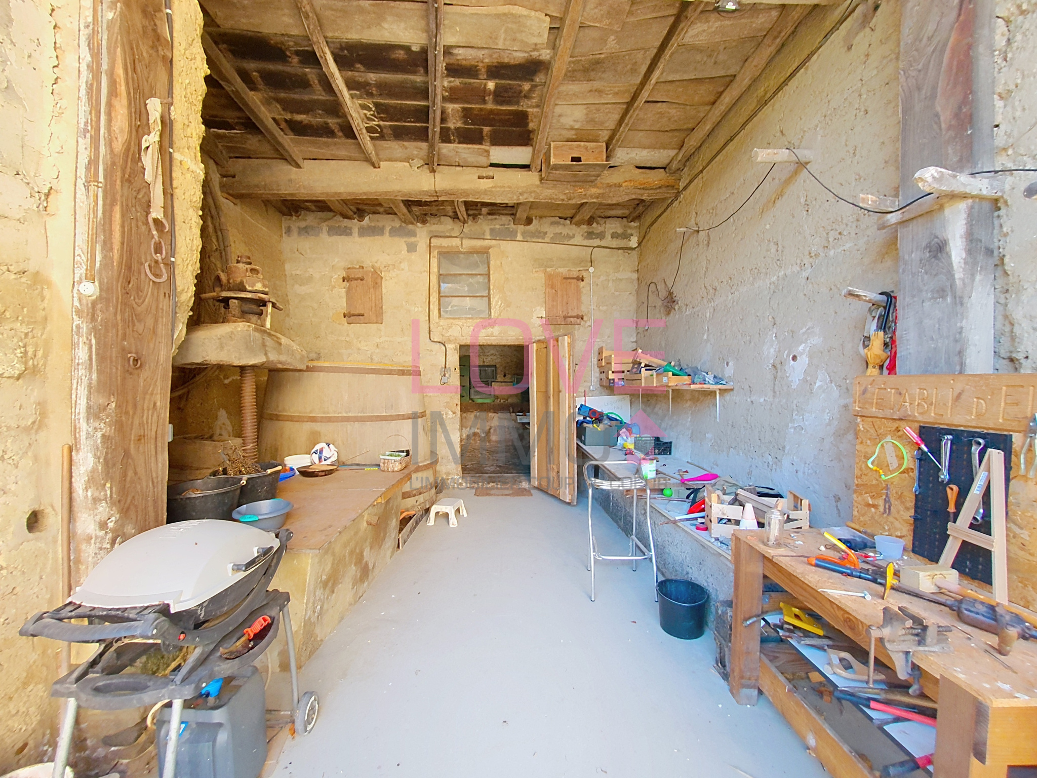 Un pressoir sous auvent de 27 m2 + pièce arrière de 18 m2 (idéal pour vin, stockage, cave d'exception...)