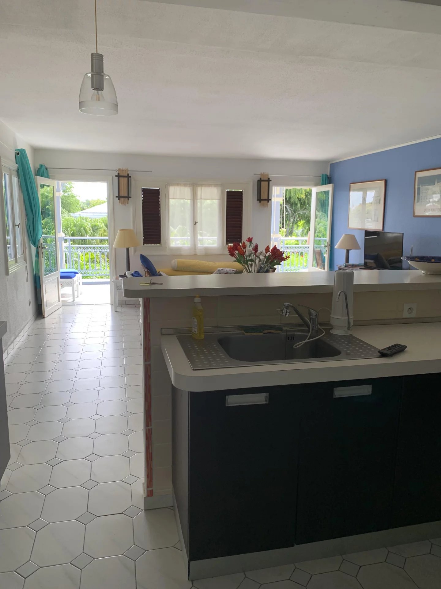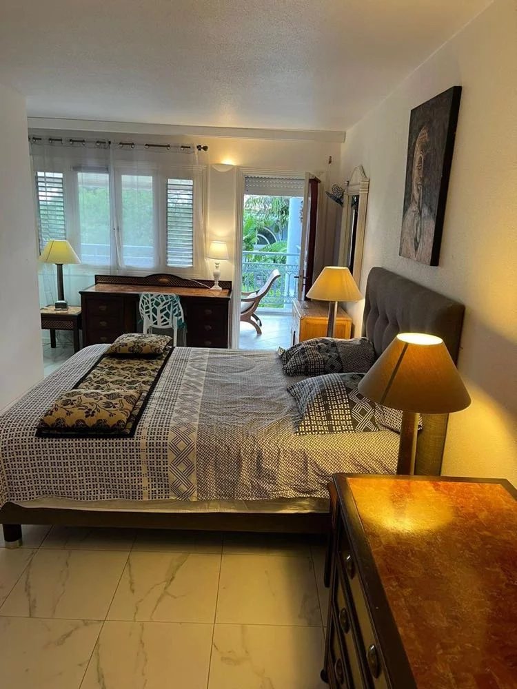 Bel appartement T3 à vendre à la Plantation Ste-Marthe à St-François, quartier très prisé, dans une résidence sécurisée, avec une belle et grande piscine avec transats, court de tennis et salle de fitness, et un centre médical à proximité.