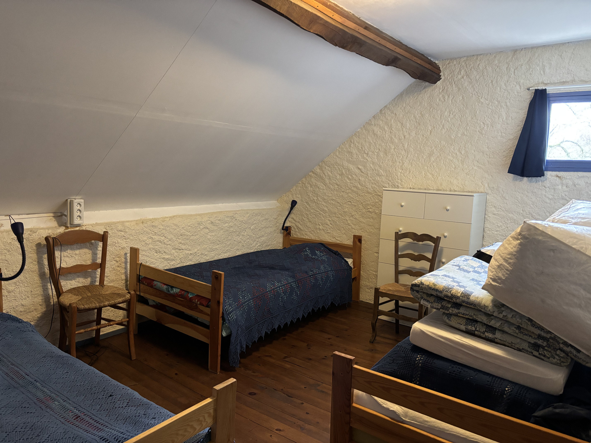 À l'étage, le palier dessert des toilettes avec lavabo, deux chambres confortables ainsi qu'une pièce d'environ 5 m2 actuellement utilisée comme chambre.