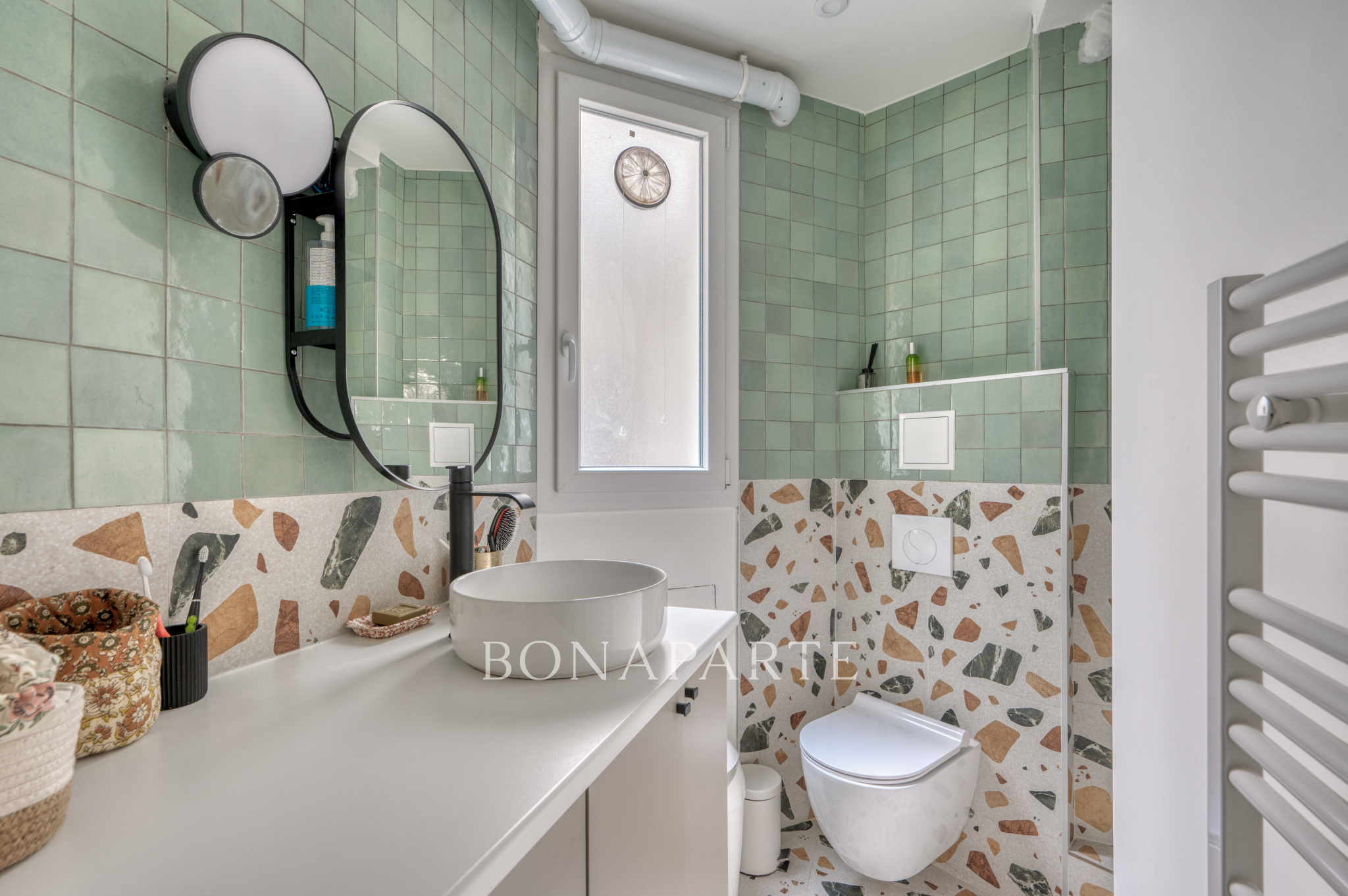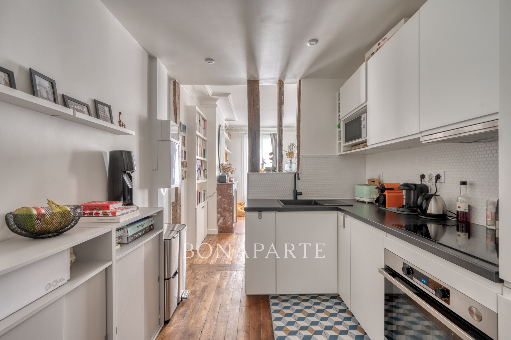 Exclusivement sur cours, traversant et entièrement rénové par un architecte il y a 3 ans, il se compose d'une entrée, d'un séjour spacieux, d'une cuisine entièrement aménagée et équipée, semi-ouverte, de deux chambres, d'une salle d'eau, de WC séparés ainsi que de nombreux rangements.